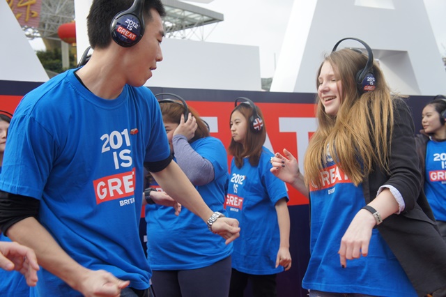 共有20多名中英国际学院学生参加了“GREAT英国”上海站的推广活动,参与无声音乐派对Silent Disco环节的表演。同学们随着耳机内传出的英式摇滚音乐舞动,尽情体验这一目前英国最流行的舞蹈形式,虽然这在中国还很少见。
