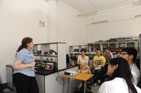 教学楼专门开辟了四个教室,作为各个科系的特色展示区。展示内容涵盖了中英国际学院工商管理、会展管理、电子电气工程、机械工程等各重点专业学科,以及学术英语等特色教学项目。每间教室都有多名外籍专业教师坐镇,在学生大使的帮助下,他们与来访的学生和家长进行了一对一的深入交流。工程学院更是把实验室“搬”进了展示区,老师们希望SBC能够对传统意义上的“教室”重新进行定义,使学生拥有全新的、高效的、国际化的学习体验。
