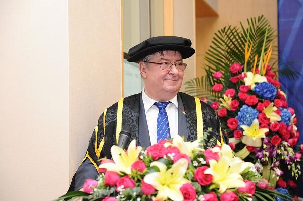 利物浦约翰摩尔大学的毕业典礼于7月20日日上午10时在中英国际学院大礼堂举行。典礼由利物浦约翰摩尔大学副校长Edward Harcourt博士主持。同时出席典礼的还有利物浦约翰摩尔大学工程、技术与海事运营学院主任Ian Jenkinson教授以及机械工程高级讲师Russell English博士。