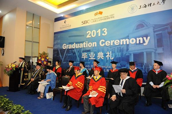 上海理工大学中英国际学院于7月20日与27日分别举行了两场英国大学毕业典礼,庆祝2013届中英国际学院(SBC)/上海理工大学学生在上海、以全英文授课方式完成学业后,被授予相应英国大学学士学位。