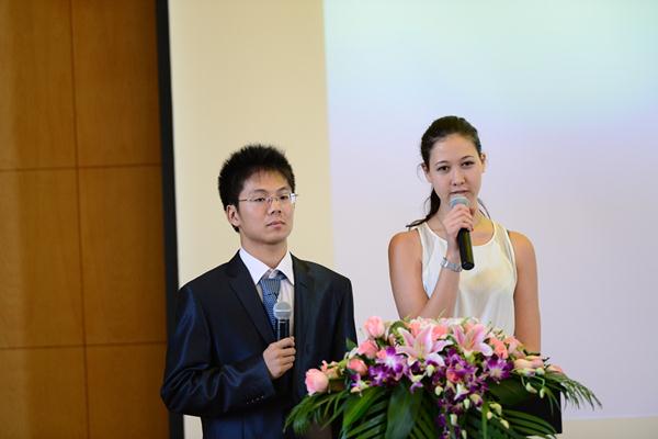 Cindy Prouchandy(法国)和罗霄亮两名同学作为学生代表在欢迎仪式上发言,与大家分享了各自对在SBC开始崭新的大学生活的期望和计划。来自法国的国际生Cindy在发言中,讲道:“SBC给我们提供了一个走向世界的机会。她全新的办学理念以及中英教学资源的整合,将给同学们带来无尽的学习机会”