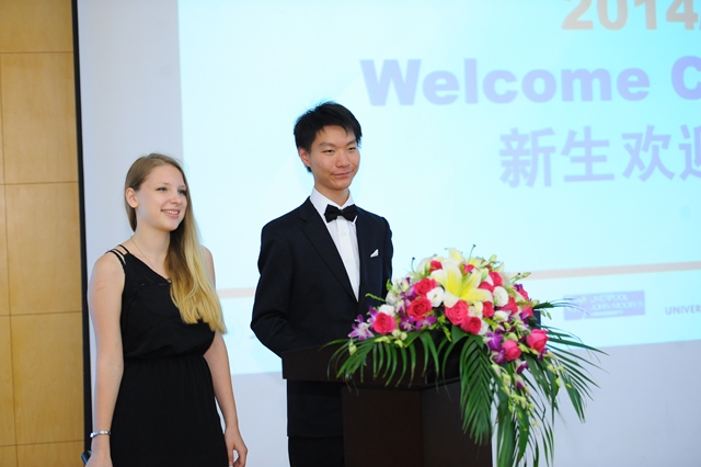 在中英国际学院在校生代表罗浩铭(大三,商科)和毕夫容(大四,工科)发言后,, Bruno Gargerle(德国)和徐文倩两名同学作为新生代表在欢迎仪式上发言,与大家分享了各自对在SBC开始崭新的大学生活的期望和计划。他们在各自发言中,都讲道:“中英国际学院国际化的办学理念给我们提供了一个走向世界的机会。在这里,我们可以锻炼自己的社交能力,提高跨文化意识,获得个人全面发展。”