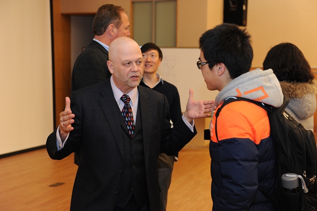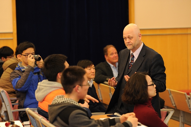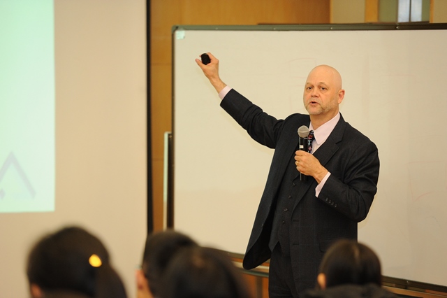 3月4日晚,在教学楼报告厅举行的客座讲座迎来了纽约大学斯特恩商学院高级管理人员工商管理硕士(EMBA)课程及公共关系/企业沟通课程的客座教授赫里奥•弗雷德•加西亚(Prof. Helio Fred Garcia)。加西亚教授还是瑞士联邦理工学院安全研究中心核心成员。他还经常受邀于美国宾夕法尼亚大学沃顿商学院、美国海军陆战队参谋学院和军官学校、美国布鲁金斯学会、清华大学等机构,进行授课、演讲。此次讲座在报告厅举行,约100名学生到场听讲。