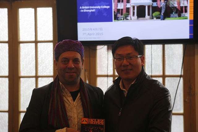 2015年4月7日中午,曾获美国格莱美音乐奖的Klezmatics乐队一行来到中英国际学院进行访问交流,学院领导刘彬书记和相关老师、学生艺术团成员一并出席。