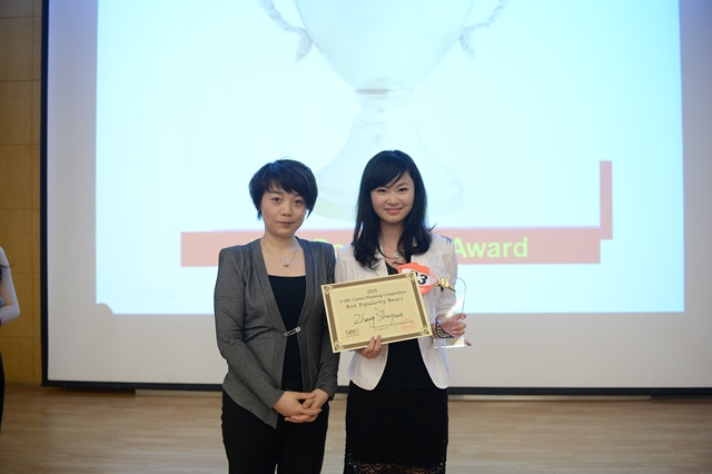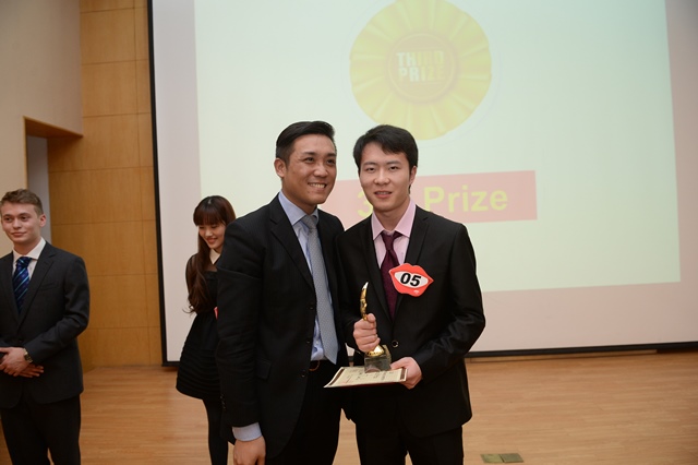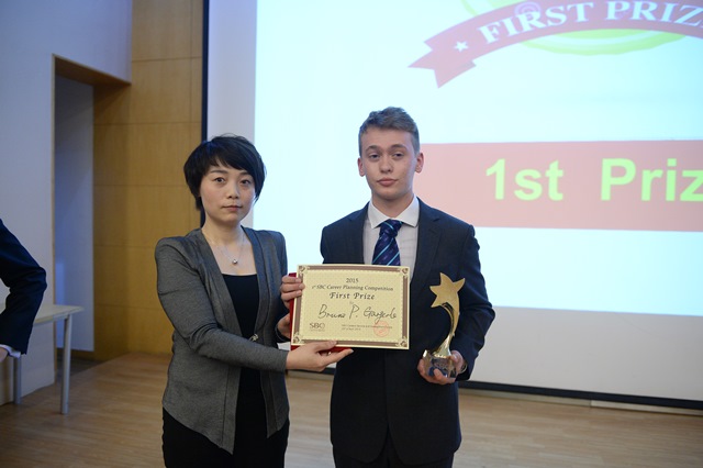 最终大二国际生Bruno 以89分的高分摘得职业规划大赛冠军桂冠;来自大一会展专业的袁小禾以86.2的高分获得亚军;来自大二电子信息科学与技术专业的王天立同学获得三等奖;来自大一商务管理专业的张书韵通过现场观众投票荣获最佳人气奖。一等奖奖品是由FESCO Adecco提供,冠军拥有机会竞逐‘中国区CEO一个月’的任期;二等奖是由慕尼黑展览(上海)有限公司提供的管理培训生实习岗位;三等奖获得者将与职场高管共进午餐,获得职场精英的一对一的指点。