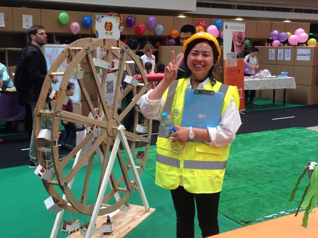 在中庭,第三组同学花了很长时间搭建整个“纸板城市”,联系赞助商并在活动早期讨论规划一个与之前活动完全不同的主题。第四组同学负责管理中庭其它活动中大量的志愿者,与他们一起保障参与活动的孩子们的安全,同时也负责联系赞助商。
