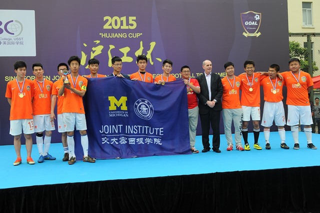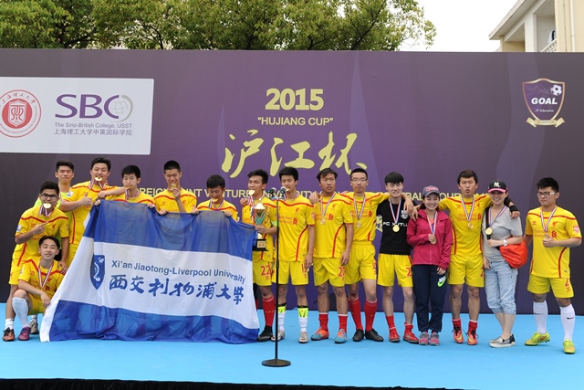 在决赛中,经过40分钟的决战,双方球队以0:0收尾,最后通过点球大战,西交利物浦大学球员两次破门,摘得本次“沪江杯”中外合作大学(学院)足球赛冠军,上海交大密西根学院获得亚军。在争夺三四名的比赛中,中英国际学院的陈恩普同学于上半场12分钟攻入1球,帮助中英国际学院以1:0的比分获得季军头衔。