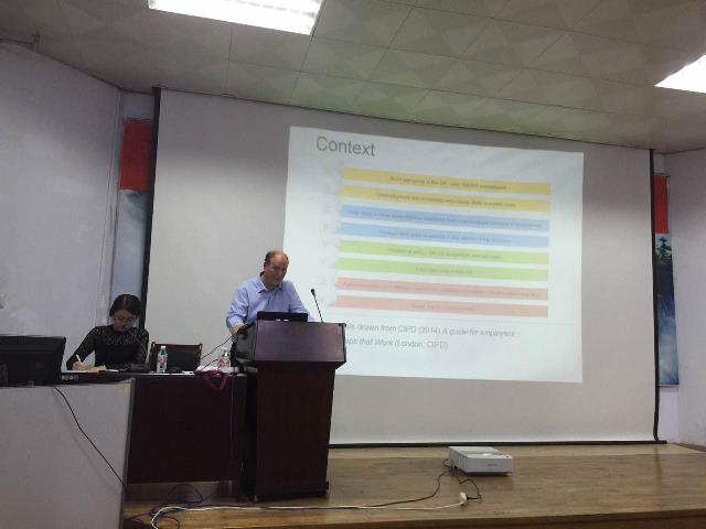 Gordon做为培训的主讲之一,为大家介绍了英国实行学徒制的情况。这其中包括学徒制在英国的发展,雇主和企业是如何在实行学徒制中受益的。他还以英国著名的巴克莱银行为案例,具体解析了公司企业是如何实行学徒制的。另外,他以物流行业为例,介绍了在特定行业内应该怎么实行学徒制。