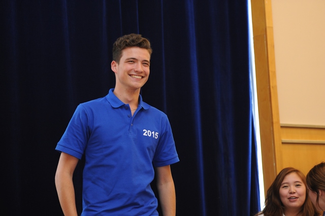 新生欢迎仪式最后公布了“我要上头条”微信活动的结果。此次活动旨在鼓励新同学们将注册报到时的精彩瞬间,以照片的形式记录下来,并发送至学院招办微信账号。来自杭州师范大学附属中学、目前在SBC就读电子电气工程专业的大一新生钱屹伟,在其微信上赢得了140个点赞数,成功摘得“头条人物”的称号。