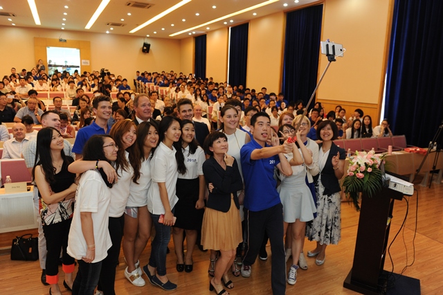 应邀出席此次新生欢迎仪式的嘉宾有英国文化协会华东区主任、英国总领事馆文化教育处文化教育领事马旭宁(Matthew Knowles)和上海英国商会执行总监Phil Roebuck。马旭宁领事在讲话中提到,中英国际学院拥有多元化的校园环境,同时拥有来自中国及全世界众多不同国家和地区的学生。因此,结合各自不同的文化背景,我们可以共同探讨这一代年轻人关心的话题,共同解决需要解决的问题。