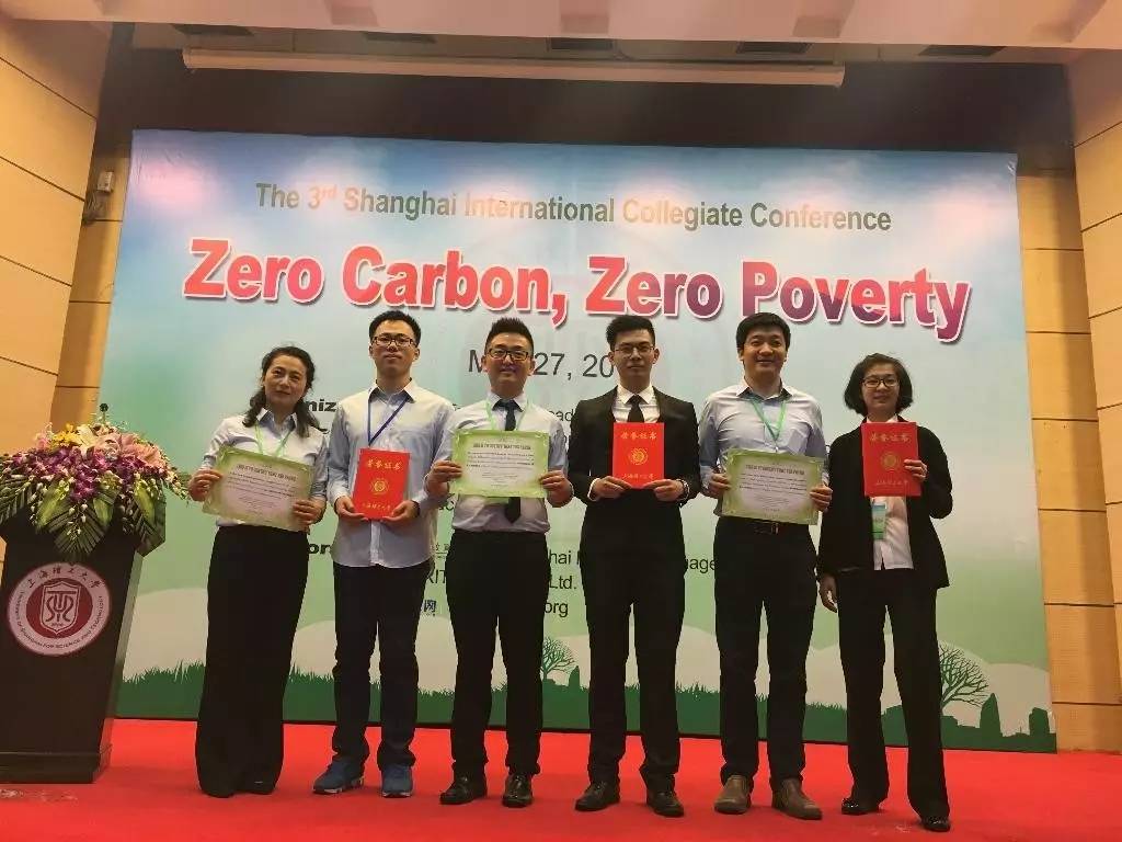 5名优秀学生代表和我校环建学院李亮副教授在主会场上做了精彩的主旨发言,他们分别从共享汽车、全球环境、城市化、绿化、太阳能集中器和生物能六个领域分享了自己的研究成果。下午研讨会在10个分会场进行,共计90余名大学生和国际学生宣读论文,来自我校中英国际、管理学院、材料工程学院、光电学院、版艺学院和光电学院的10名优秀学生宣读论文,并担任分会场主持人。同时有26份论文进行了海报展示。下午五点,研讨会在“优秀论文”的颁奖仪式中落下帷幕,共计17篇论文获奖,复旦大学、同济大学、华中科技大学、电子科技大学、上海财经大学、上海理工大学等高校学生获“优秀论文”奖。其中我校中英国际学院吉涵骁、管理学院柏烜宇和出版印刷与艺术学院金轶凡等同学在外语学院毕志伟、张乐、黄凤秋老师的指导下获此殊荣。上海高校大学英语教学指导委员会副主任委员王志军教授在闭幕辞中勉励在场的大学生们把英语语言技能和学术研究精神结合起来,建设一个更强大的国家和一个更美好的世界。