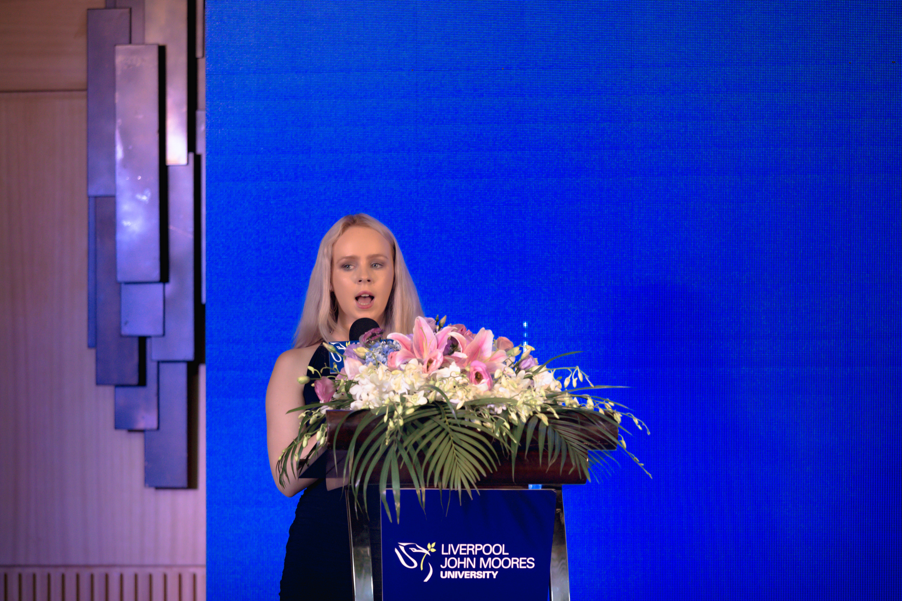 LJMU在校法律专业一年级学生Hannah Goldthorp,代表二十位在上海暑期实习的学生发言,并表示他们十分感谢LJMU的全额资助,帮助他们实现了梦想,提供了可能会改变人生的重要机会。在上海的工作学习经历对他们的人生规划职业规划产生了重大的深远的影响。