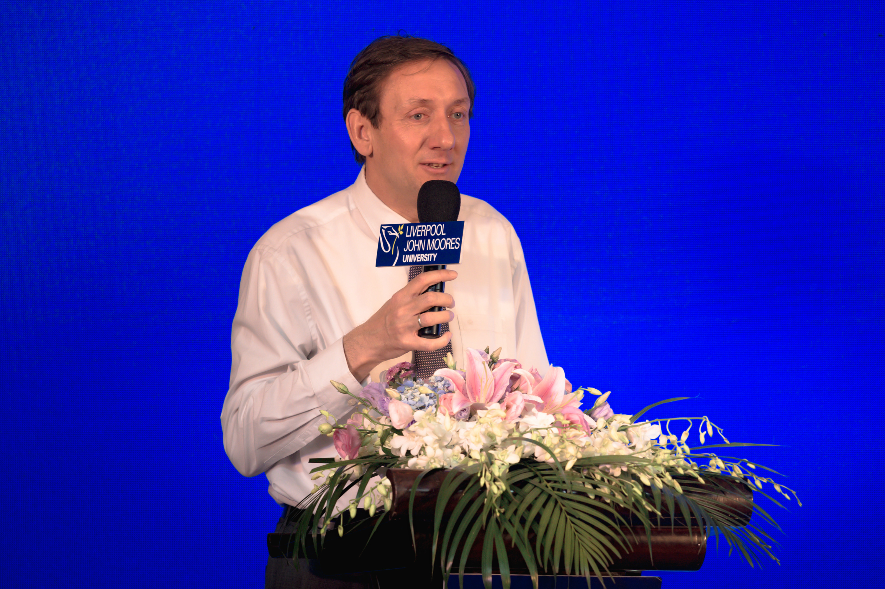 LJMU对外事务副校长Edward Harcourt博士致欢迎辞,他表示LJMU的国际发展战略里中国是最重要的一个区域,学校欢迎中国学生去LJMU深造,同时也会全力支持鼓励LJMU的学生去中国实习,学习,体验中国。利物浦约翰摩尔大学与上海理工大学以及上海理工大学中英国际学院(SBC)的合作是非常值得肯定和认可。我们的合作已走过十年了,同时我们也是国际高等教育的领头人之一。今天在座的校友们,你们已经从独特的国际化教育和跨文化经验中受益,我期待着你们能在你们所选择的领域有所发展并且取得成功。