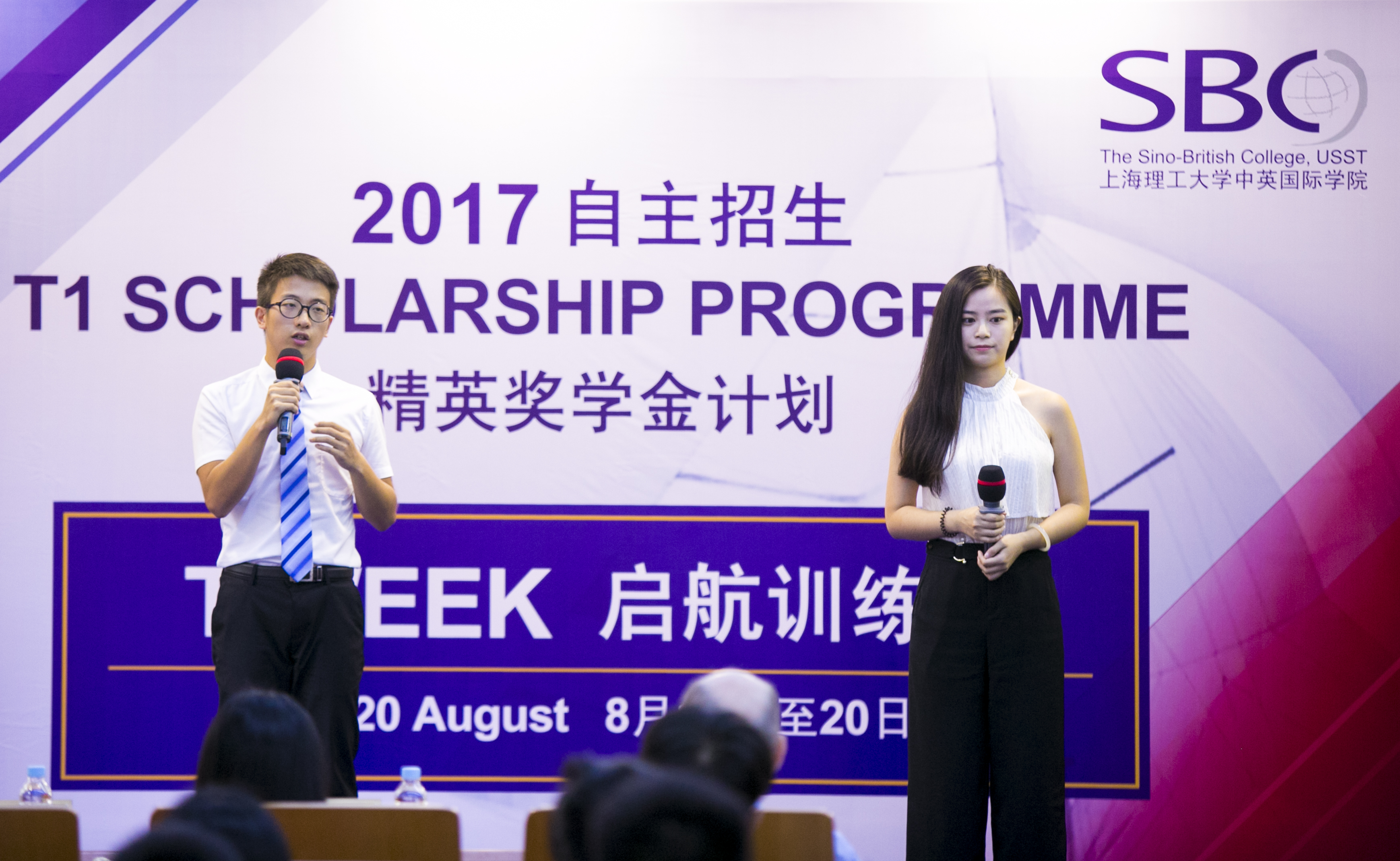 8月13日,上海理工大学中英国际学院(SBC)隆重举行第三届自主招生T1精英计划启航训练营欢迎仪式,40余名2017级T1精英计划的新生与家人、朋友共同见证了这一重要时刻,从新的起点扬帆起航。