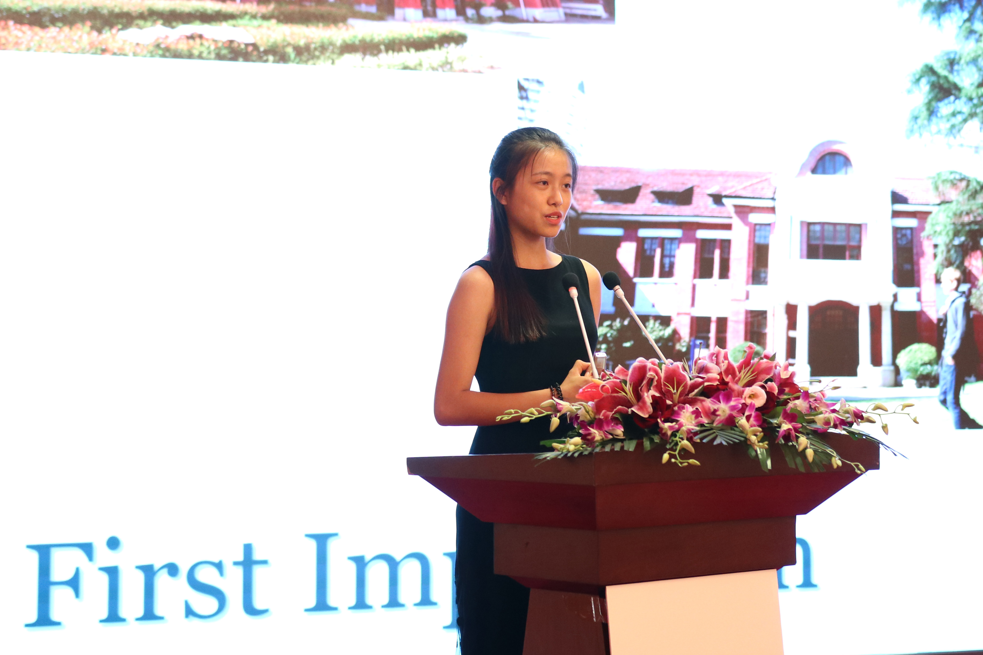 来自哈萨克斯坦的Arailym Assylbekova回顾了自己作为一名国际学生在中英国际学院的三年学习生活,并结合自己的亲身经历阐述了对学院文化同理这一办学理念的理解,她说,“在中国读书,对于国际学生来说是无疑是一次体验异国文化的绝佳机会。来到上海,不仅因为她是中国最时髦、最摩登的一座城市,更因为在这里可以收获独一无二的经历,城市夜景、历史文化以及东西方文化交融的活力等。”