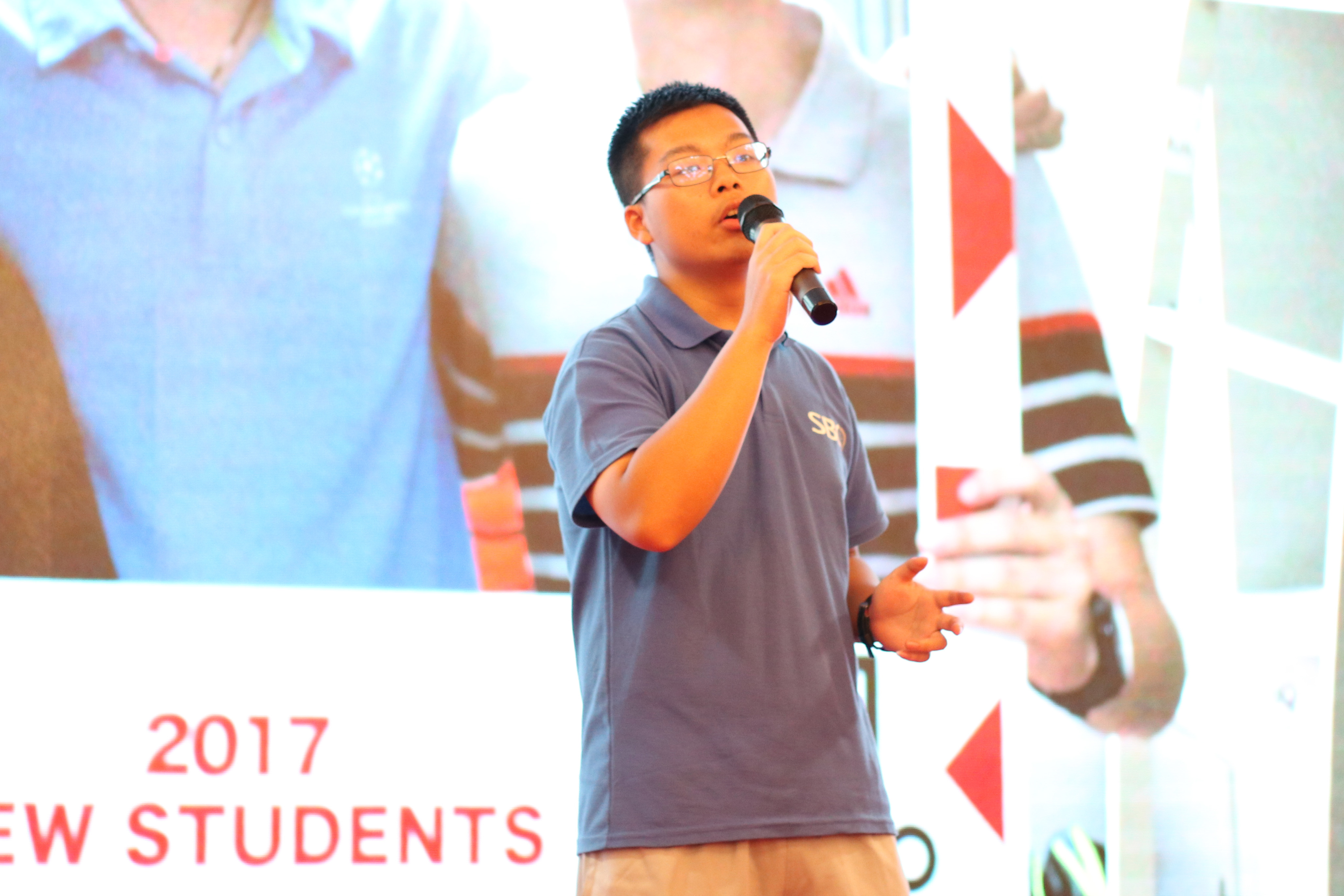 2016级电子信息科学与技术专业,现担任中英国际学院学生会主席的史智健同学、2015级工商管理专业的余昊源同学和国际生代表2015级工商管理专业的Arailym Assylbekova同学,分别作为优秀学长代表依次用英文发表演讲。