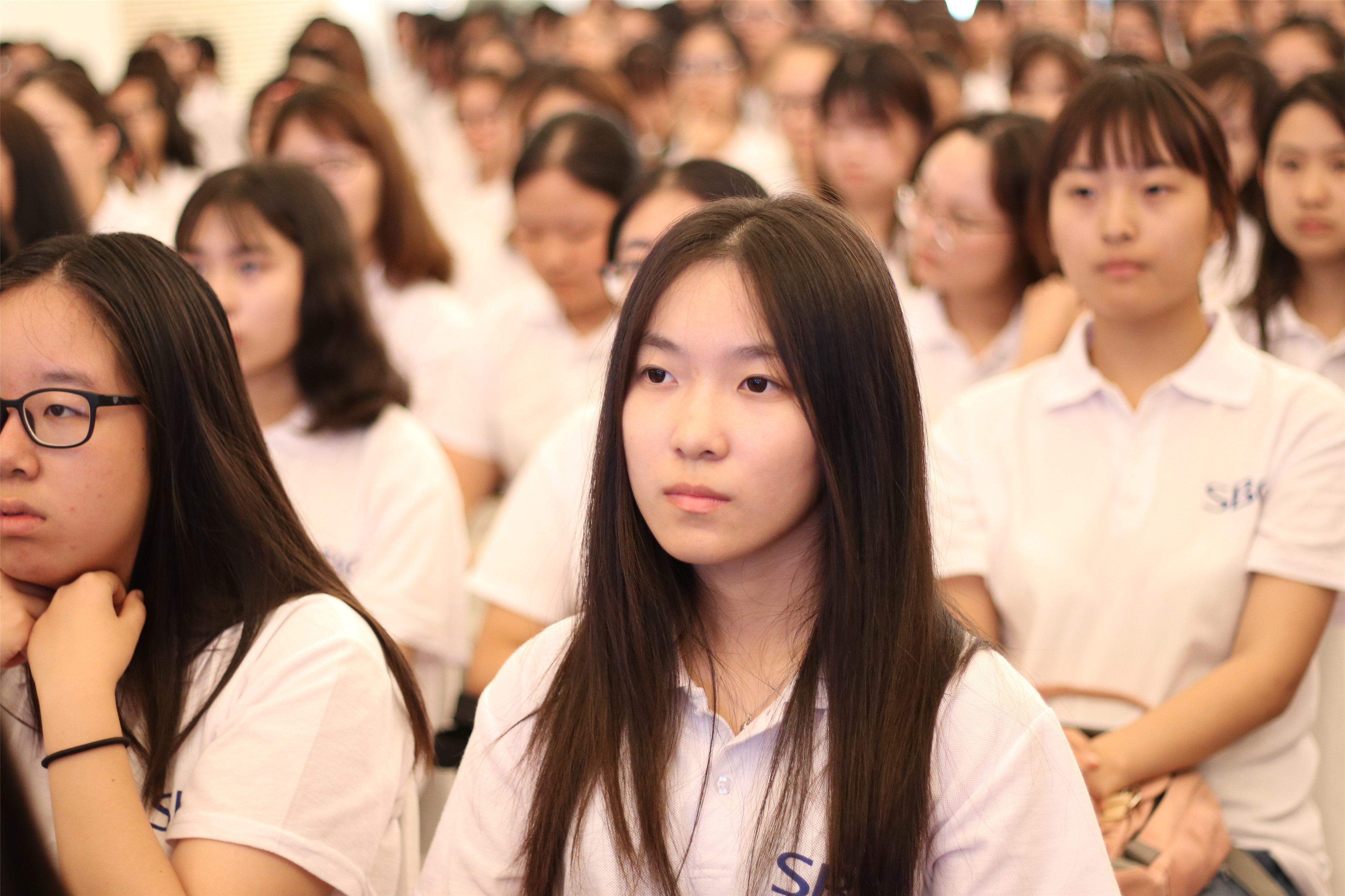 在接下来的开学典礼环节中,学院嘉奖了在新生责任领导力训练营中表现突出的优秀学员们。在这八天紧张而充满挑战的训练中,学到的是自律、坚持和责任。在一次次的任务与实践中,同学们从最初的陌生与尴尬到最后的团结与合作,更是拉近了彼此的距离,收获了珍贵的友谊。随后,T1精英计划奖学金获得者谢怡玮作为2017级本科新生代表发言,她表示,“ 训练营的经历不仅磨炼了意志,更多的是学会了担当与责任,对接下来的学习和生活更是充满了期待。”