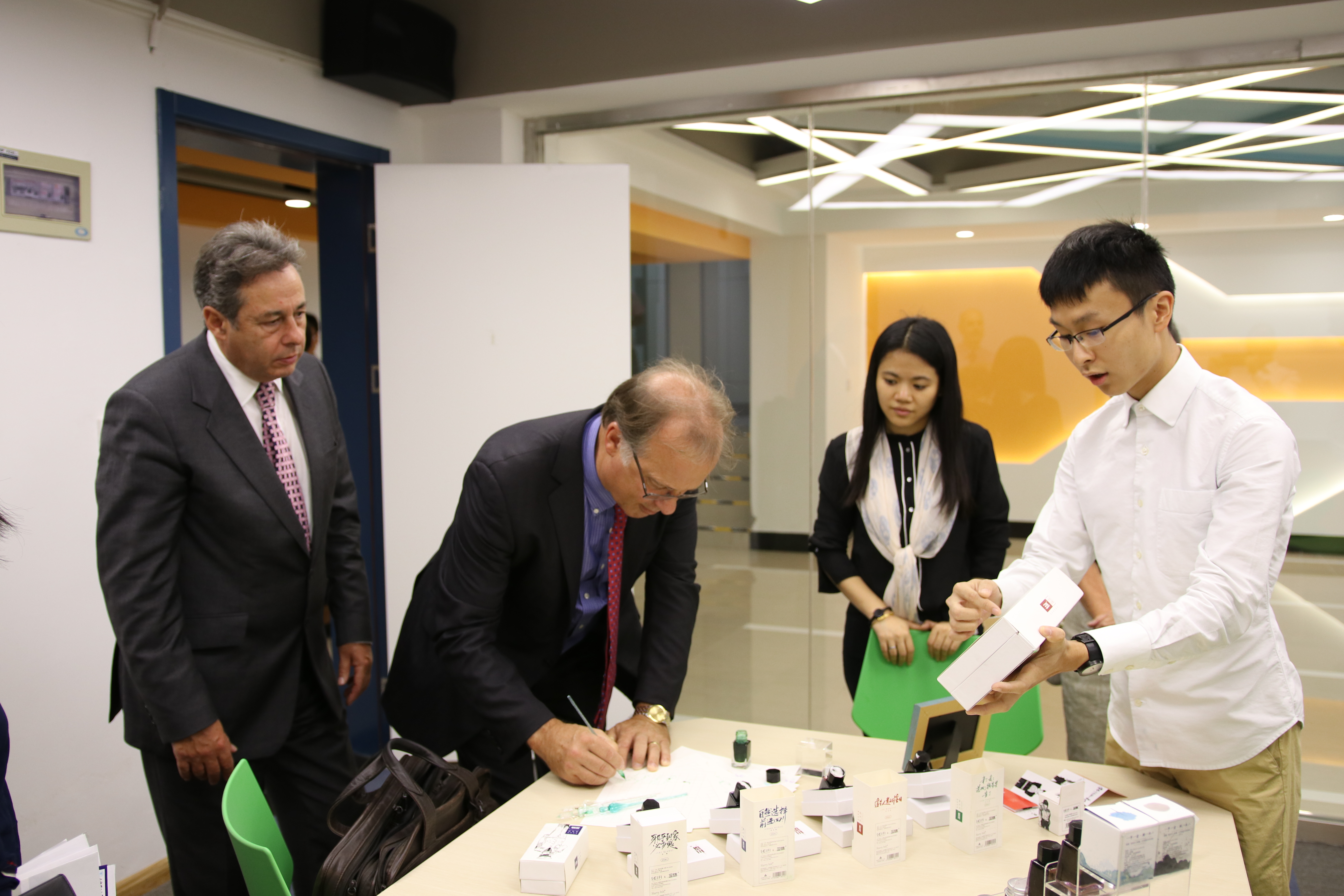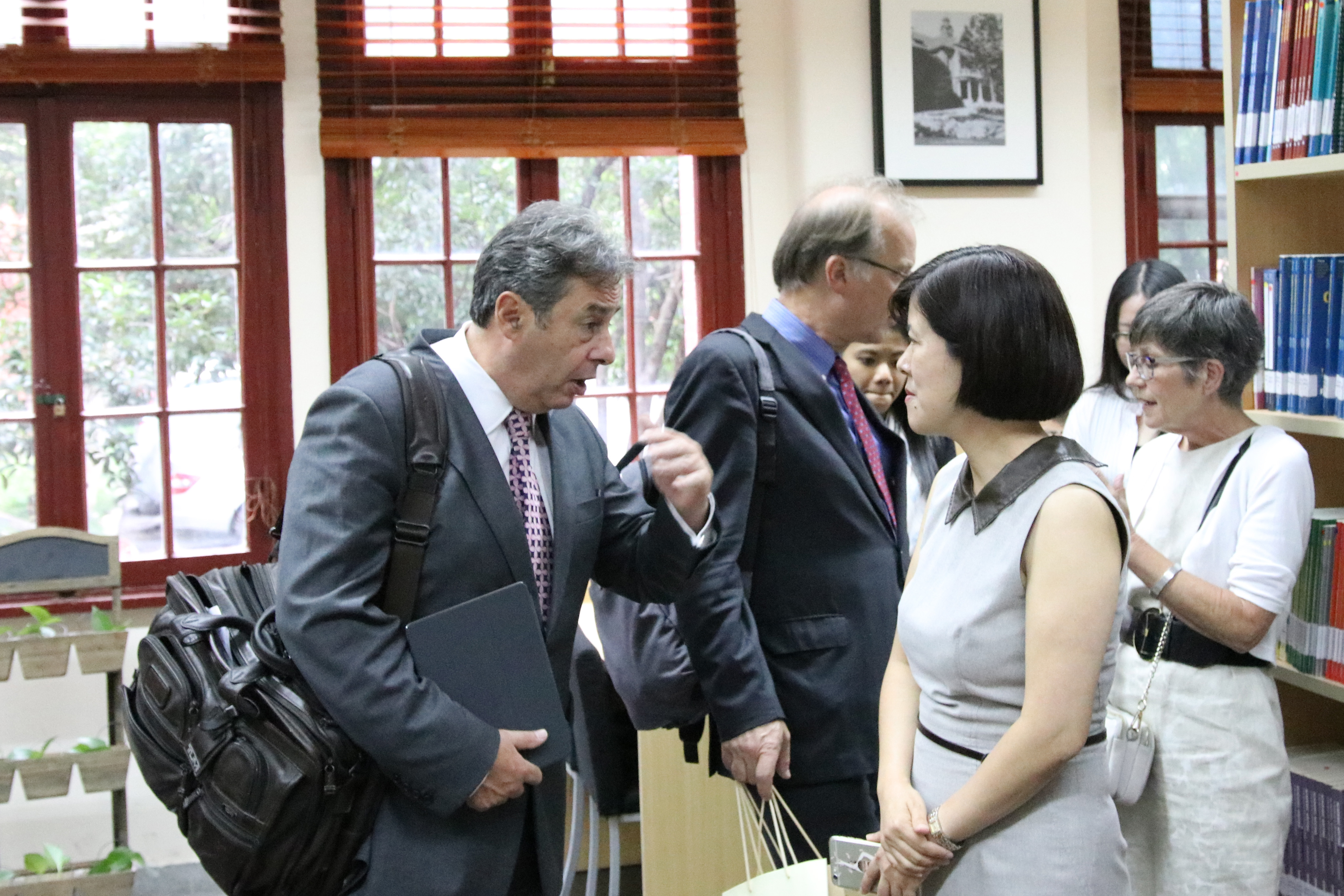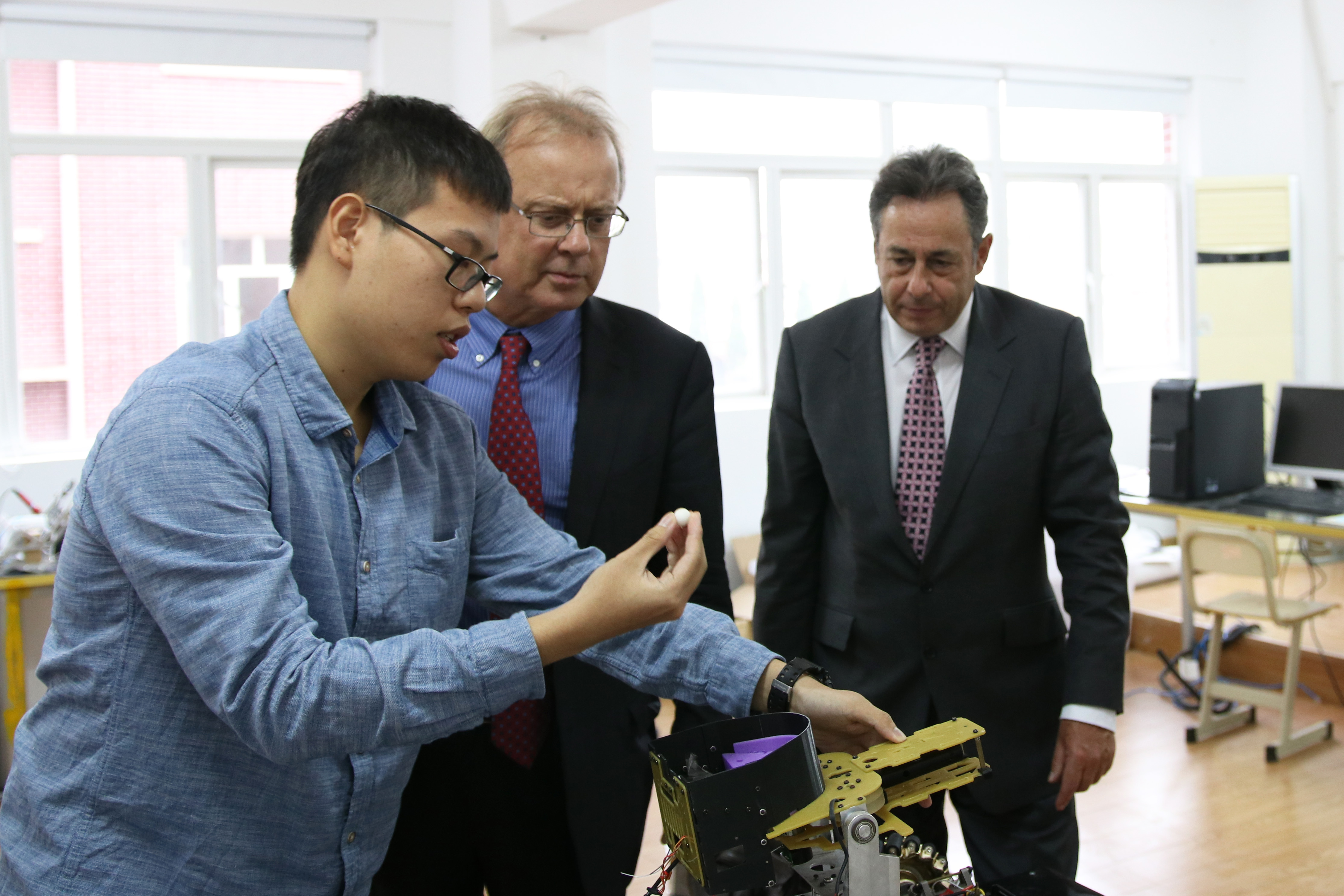 上海理工大学中英国际学院执行院长John Wilson教授向到访嘉宾介绍了中英国际学院的最新发展情况,并就学院《2025发展愿景》中所提出的各项发展目标及规划做了简要说明。座谈结束后,英国考文垂大学代表团在中英国际学院常务副院长刘芹教授,上海理工大学复兴路校区联合党总支书记刘彬博士的陪同下,先后参观了校园建筑、教学区域、教职工办公区域以及学生创业创新项目实验基地等。