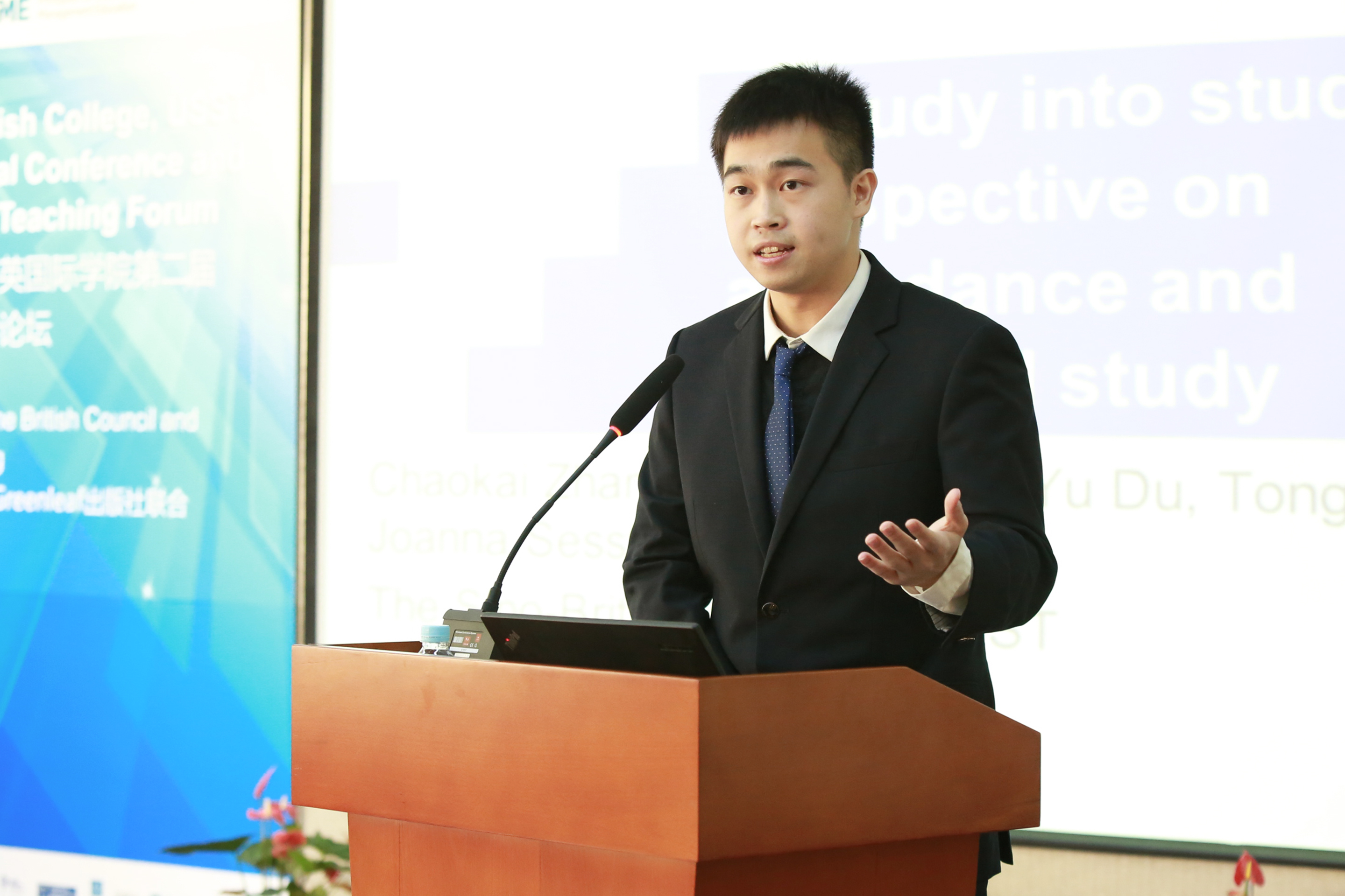 作为中英国际学院第二次举办的大型学术会议,本次大会得到了学院学术团队及各年级、各专业同学的热情参与和支持。来自工程与计算学院的大四学生庞廷杰和张超凯带来了一场从学生角度看待个人学习和出勤率的主题演讲,指导老师是来自工程与计算学院的讲师Joanna Sessford博士。他们通过学生问卷调查、采访等不同的研究方法探讨与分析了影响学生出勤率的主要因素,并提出了提高学生学习体验的相关对策与建议。