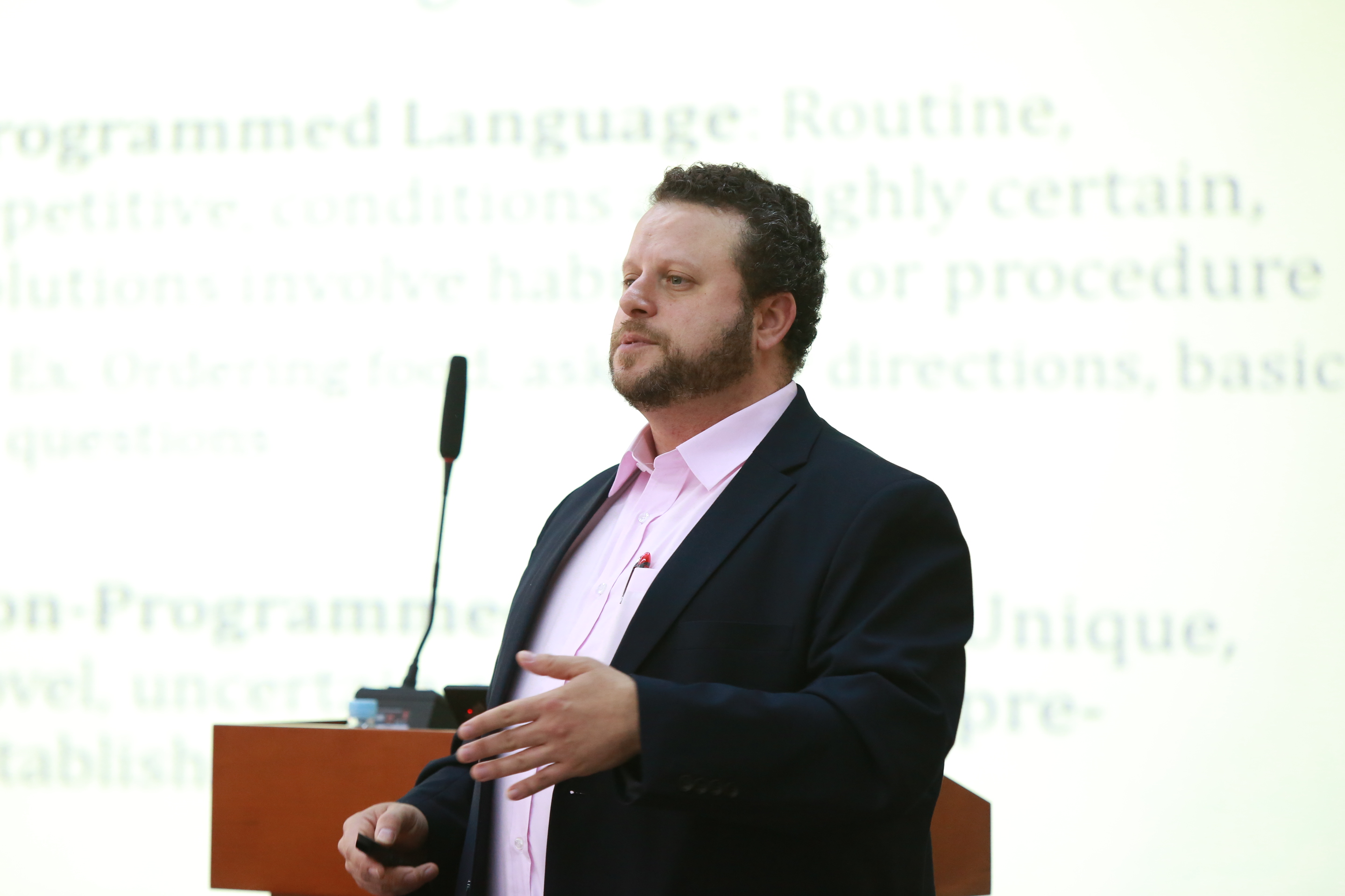 Kevin Kerrigan教授带来了一场名为“将真实的世界带入课堂”的主旨发言。他分析了目前在学科专业领域的学生培养上,普及临床学习所遇到的障碍以及对未来的发展展望。