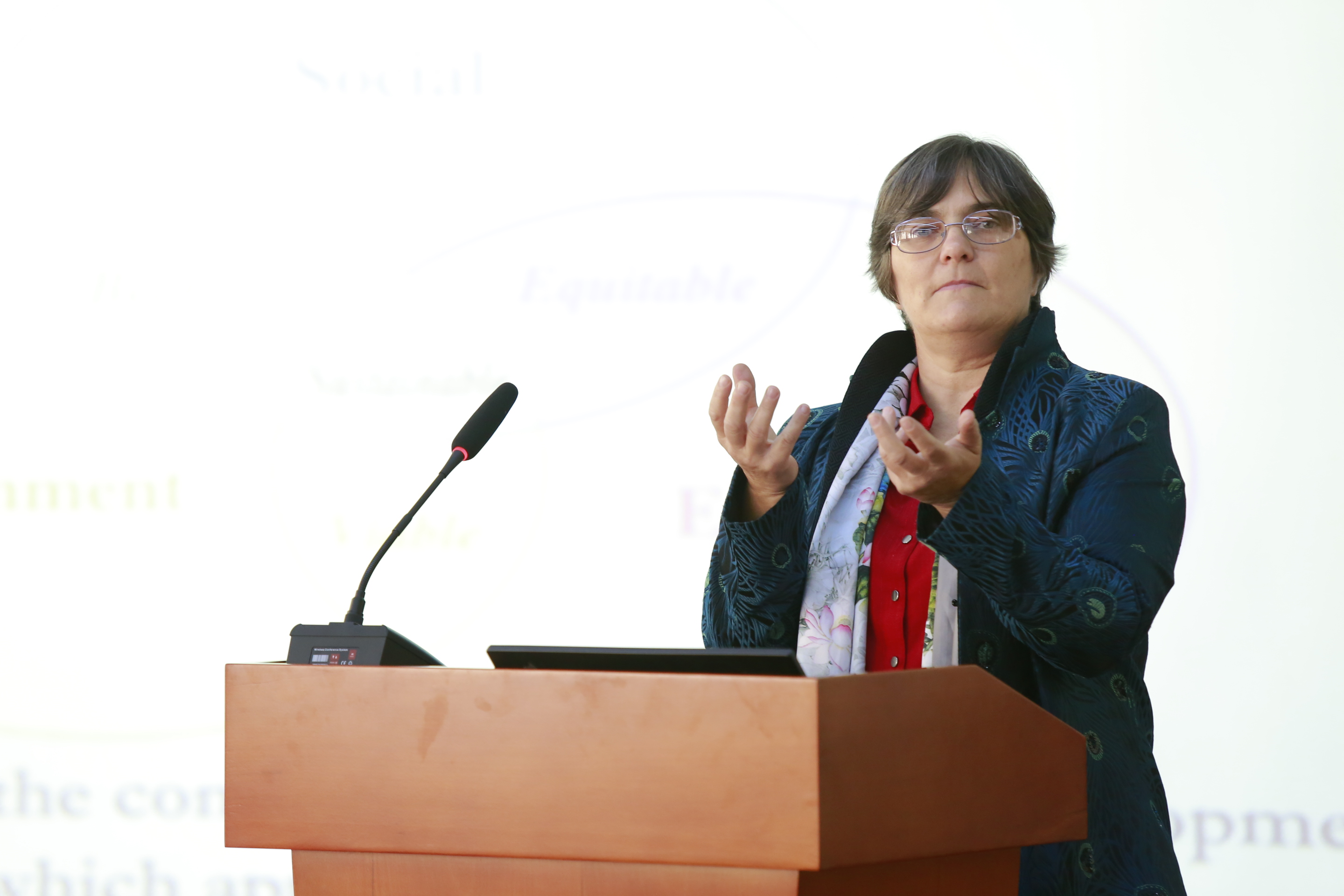 Marie Harder教授的演讲主题是怎样使共同的价值观有形化,她介绍了在教育领域下的可持续发展相关理论并分别探讨了可持续发展与教育和价值观之间的不同联系。