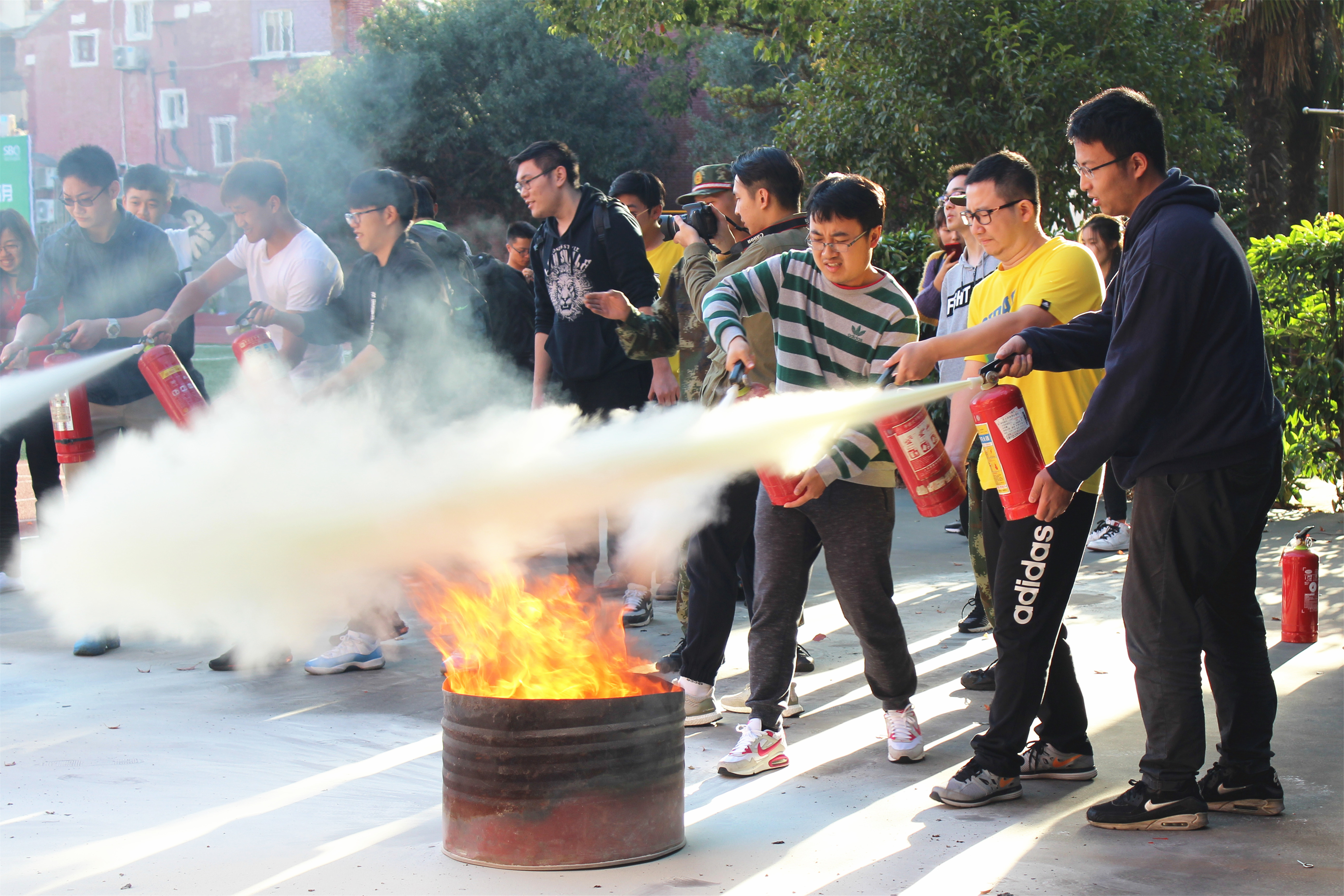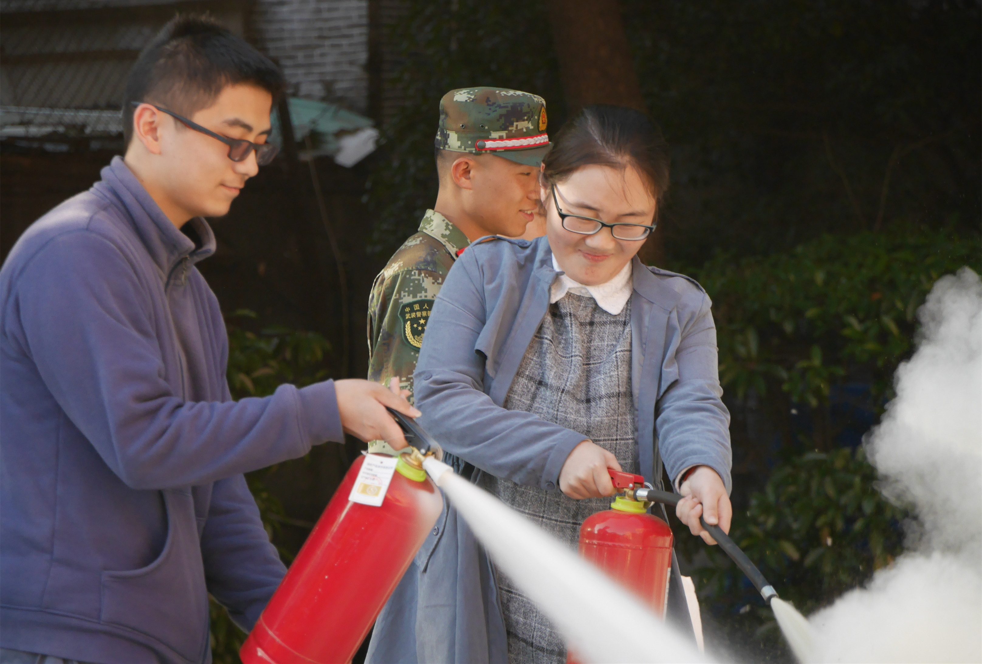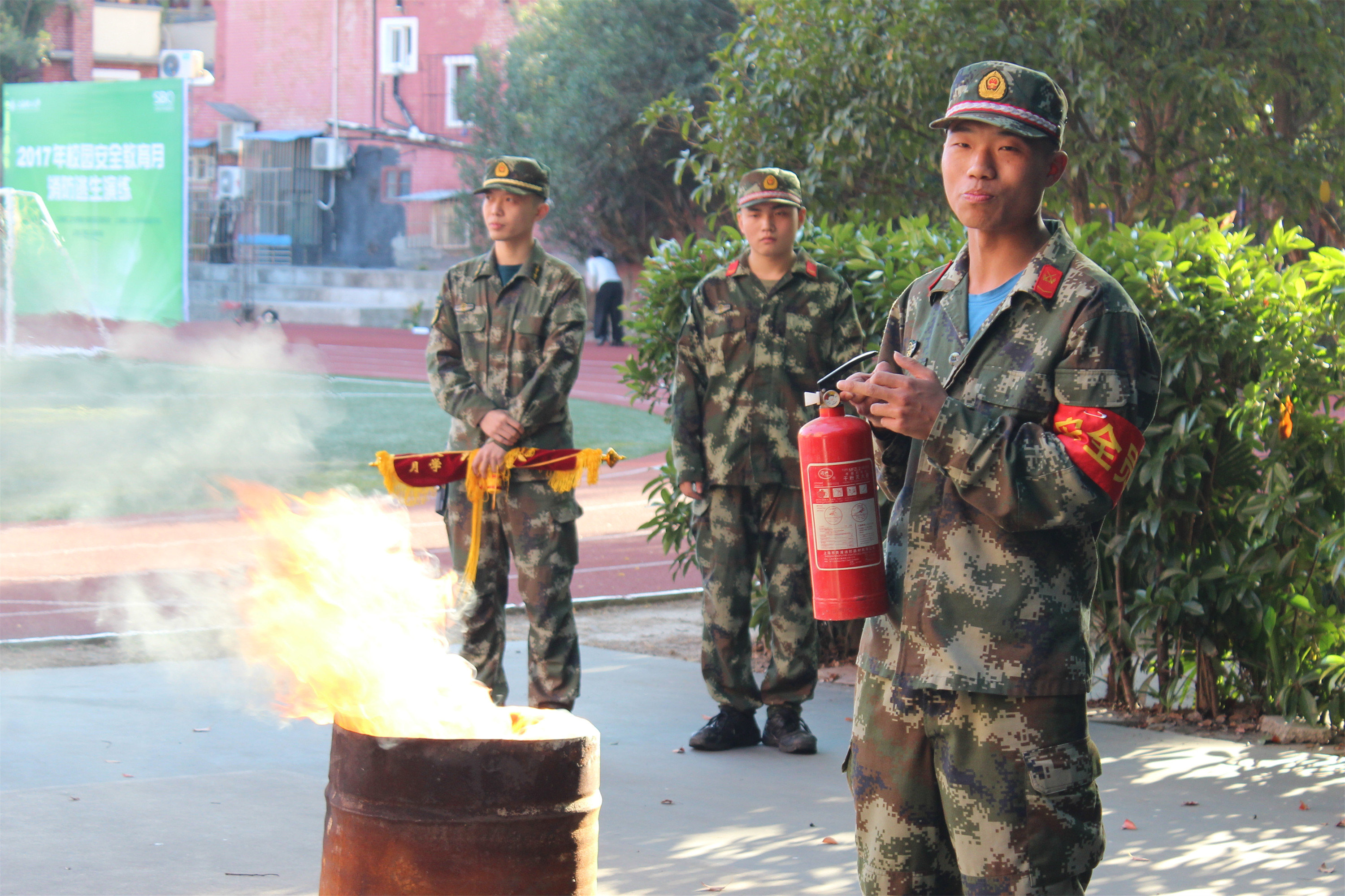 演练结束后,消防官兵为参加演练师生讲解了火灾逃生、日常防火常识等。随后,消防官兵现场展示消防水枪快速灭火、如何使用灭火器灭火等方法,确保一旦发生火情,能够在第一时间正确使用灭火器材扑救初期火灾。