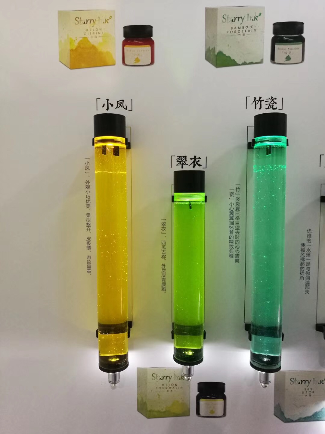 在这个互联网迅速发展的时代,在这个快要忘却笔墨书信的时代,星墨用它独特的方式重新点燃了钢笔发烧友以及手写爱好者的心。余昊源和6名团队成员,运用所掌握的化学知识,开始手工配制墨水。基数百款国内外墨水配方的研究和改良,它由RO级纯水、助剂和多种水溶性染料组成,能在书写时产生独特的金属光泽(sheen)和色彩渐变(shade),如同星空一样璀璨而瑰丽,带给观者强烈的视觉美感。