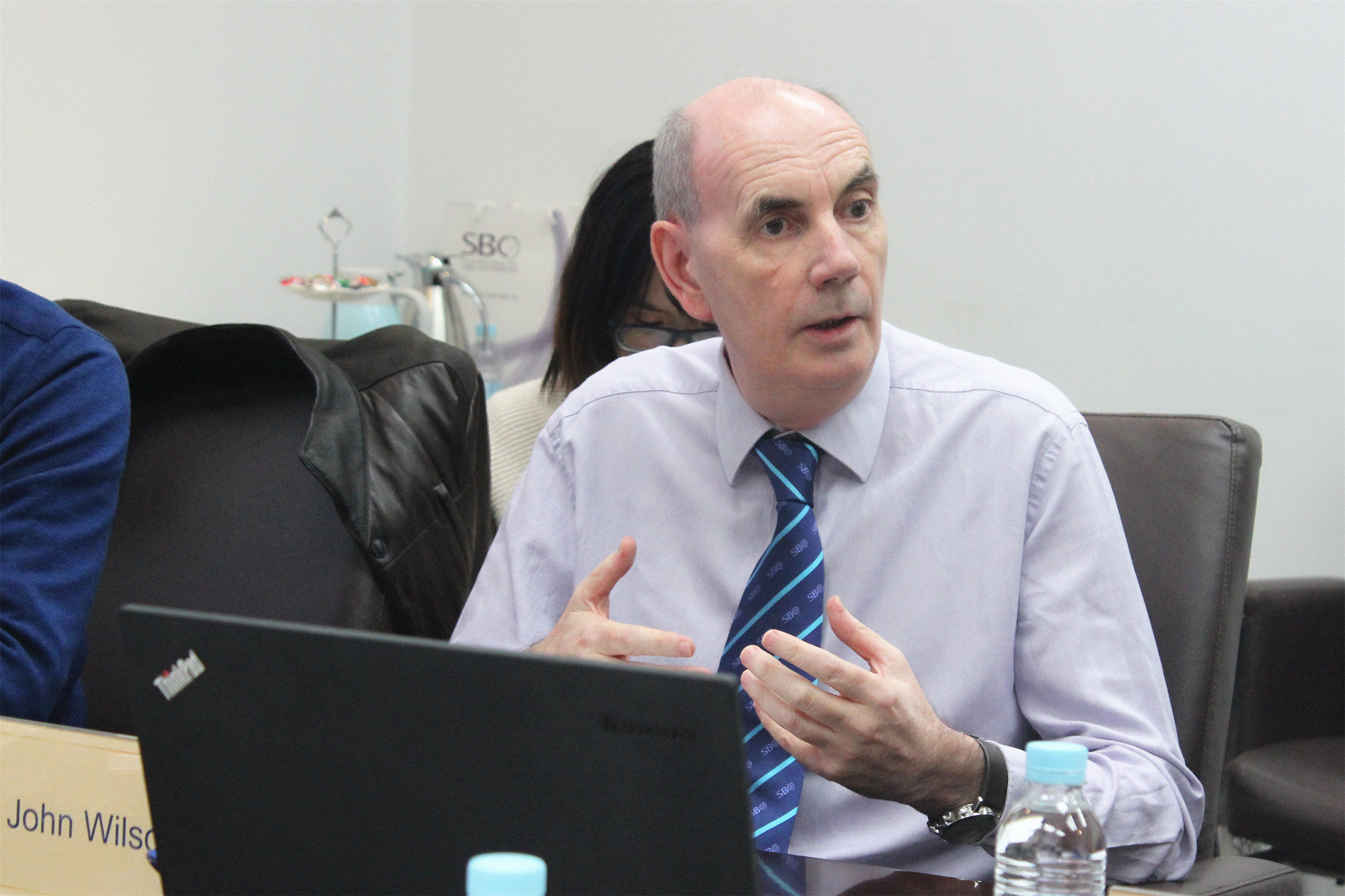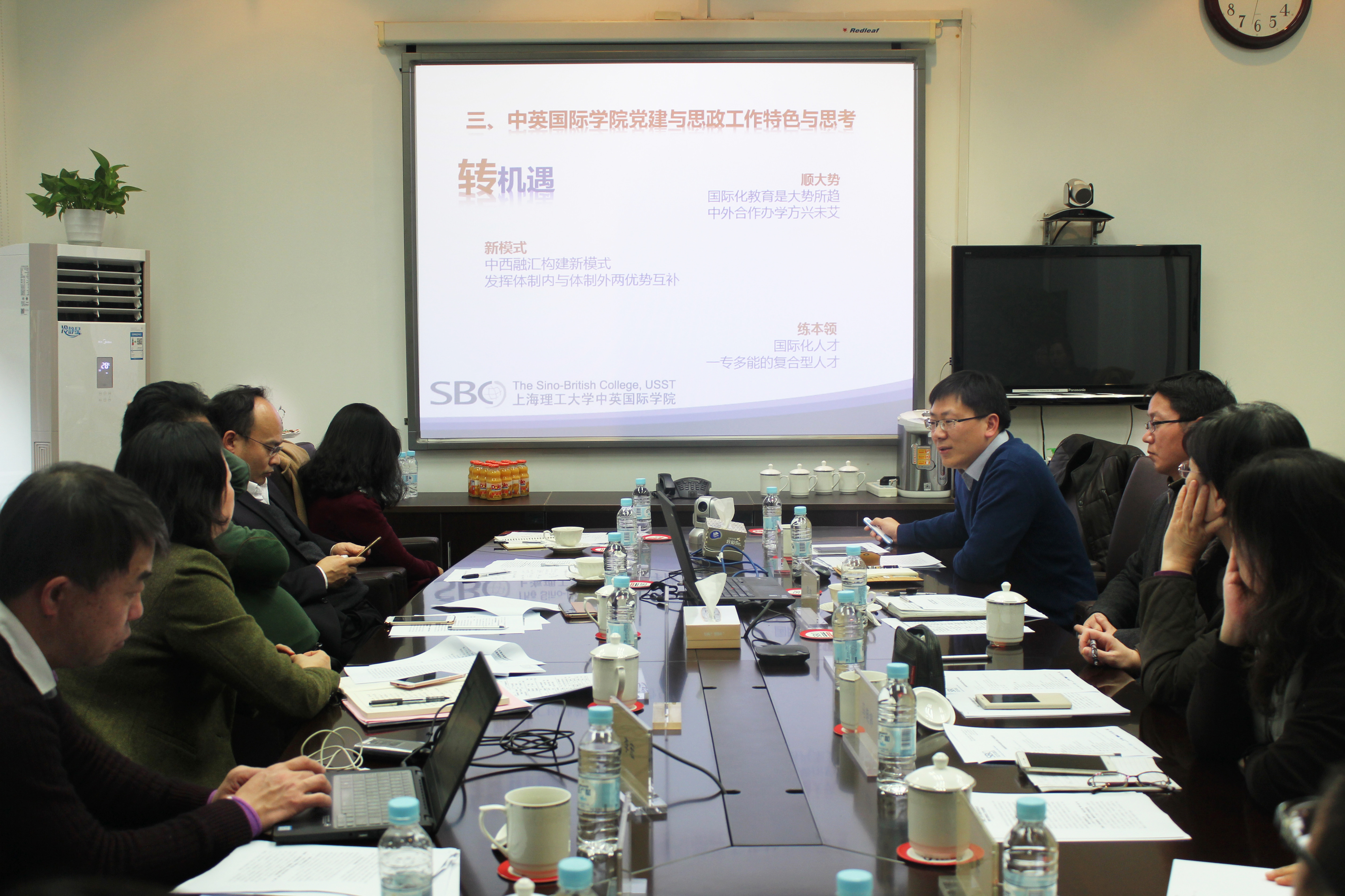 会谈上, John Wilson教授首先代表中英国际学院,对市教委领导和专家代表团的来访表示热烈欢迎。刘彬书记就学院党建思想政治工作做简要汇报,刘芹教授就学院基本情况和学生发展成就等做简要介绍。随后,双方就学院党建与思想政治工作方法,教师教学管理制度以及国内外学生管理方法等问题进行了广泛深入的探讨和交流。