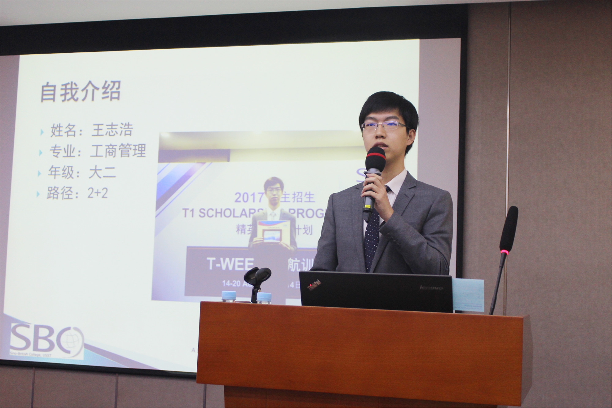 随后,由来自2016级工商管理专业的王志浩同学和胡子薇同学分别从中英国际学院的国际化育人理念和学术氛围,以及丰富的校园文化活动和社会实践两个方面,分享了他们在读的学习体验和成长经历,并鼓励在座的家长们选择中英国际学院,选择未来发展的无限可能。