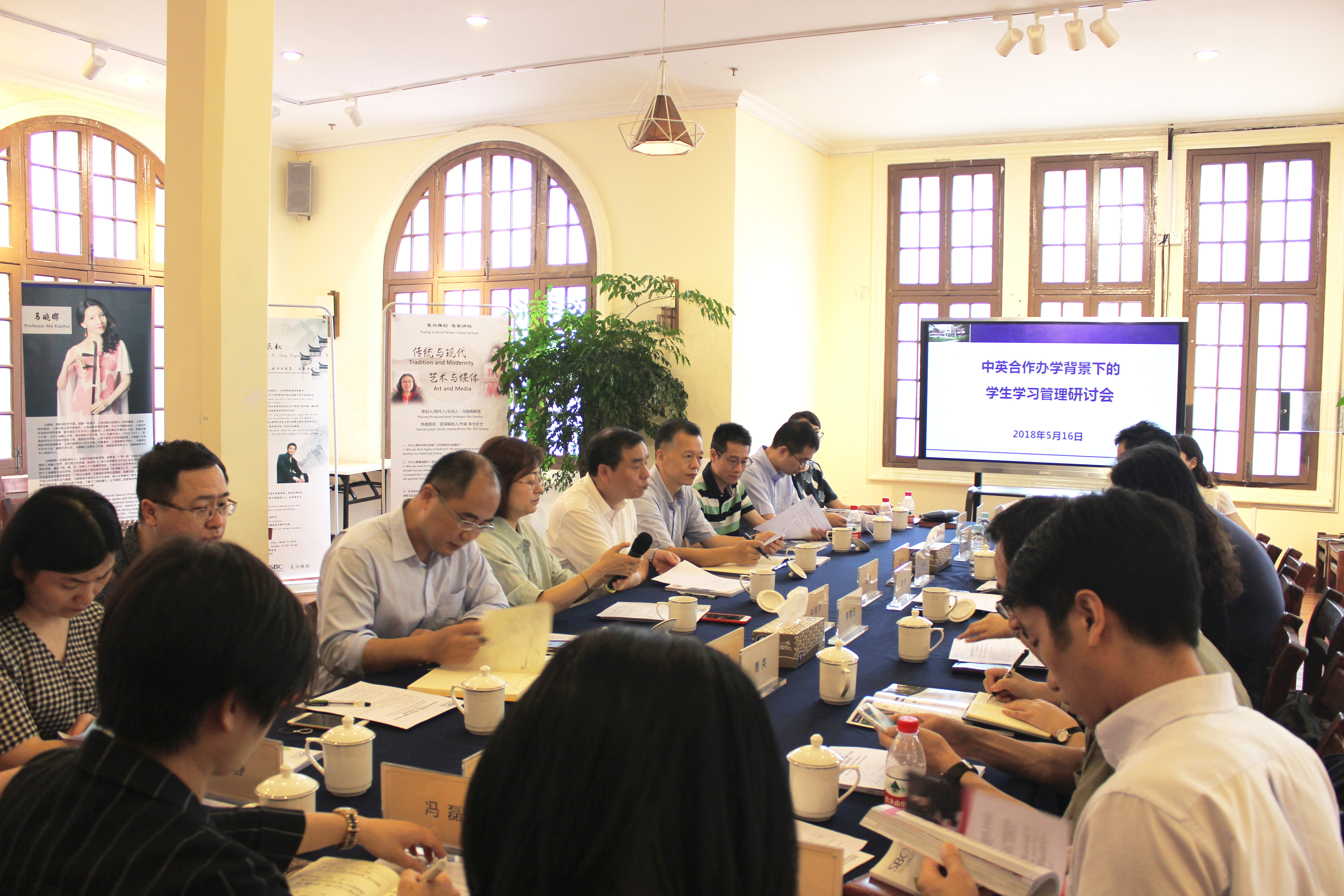 会上,中英国际学院党总支书记李妍从发展沿革、办学定位、管理架构、办学特色、学生规模、学术团队和行政团队等七个方面介绍学院概况,同时就“中英合作办学模式下如何保障人才培养质量”问题提出新的思考。中英国际学院学生管理部副主管从学院日常学风管理和团学学风建设两个角度介绍学院学生学习管理模式,内容涵盖英国高等教育模式、中英师生所面临的挑战、如何利用第二课堂培养学生的学习能力等,重点介绍中英国际学院如何通过课堂考勤、宿区建设、学前培训等管理办法实现全过程、全天候、全方位的管理,以保障学风建设的严谨性、宿区学风的先进性、学生学习的积极性。