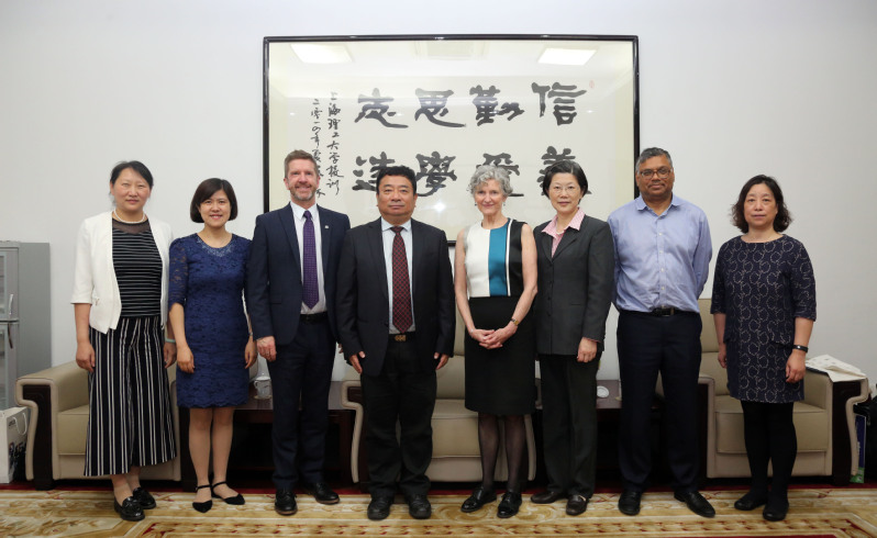 近日,英国曼彻斯特城市大学副校长Jennifer Watling教授、对外关系总监Mike Gibbons先生及工程学院国际交流负责人Keith Miller先生一行来访上海理工大学。我校党委书记吴松会见英方一行,副校长田蔚风陪同会见,国际交流处、中英国际学院、出版学院负责人参加会谈。