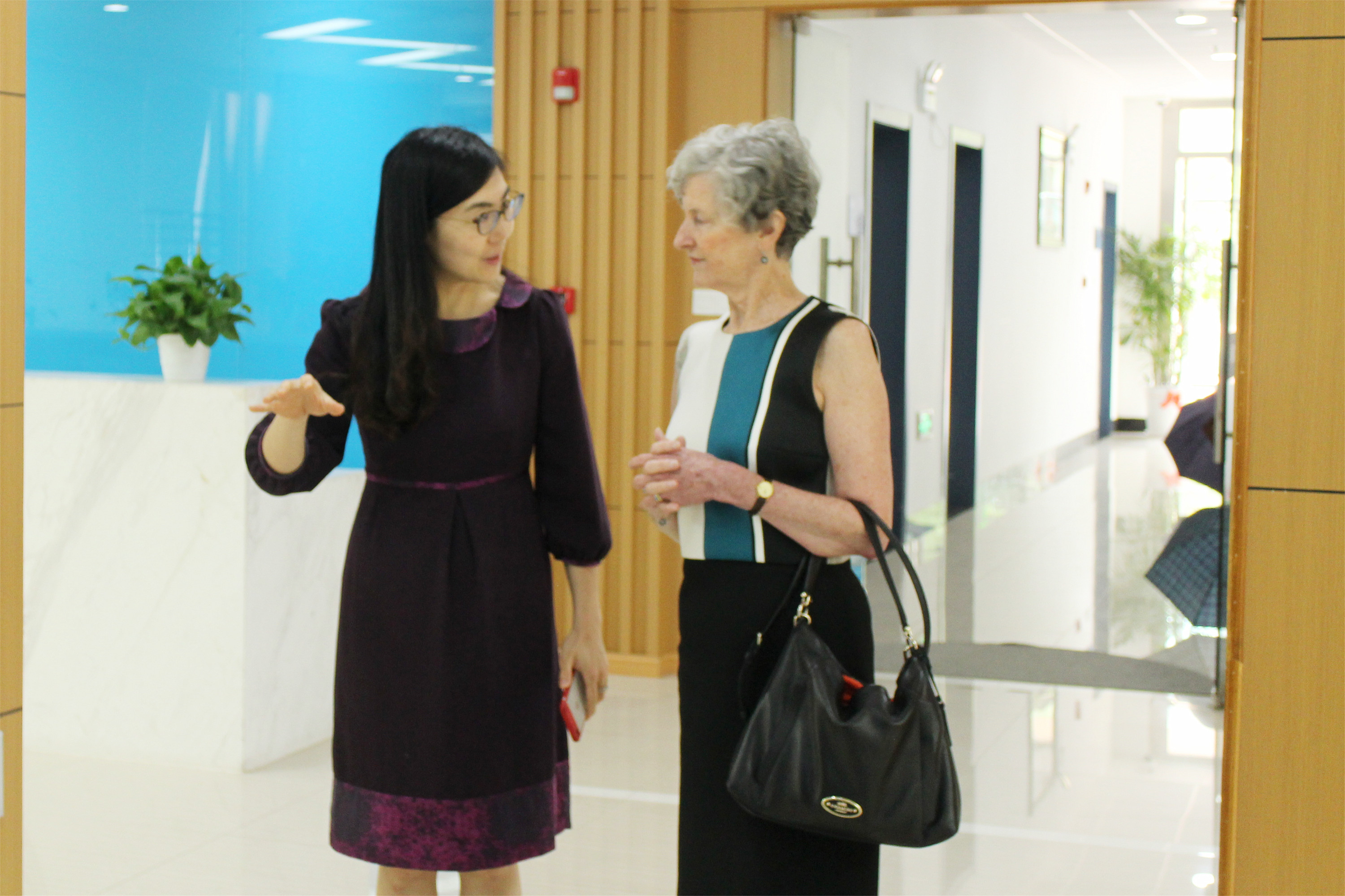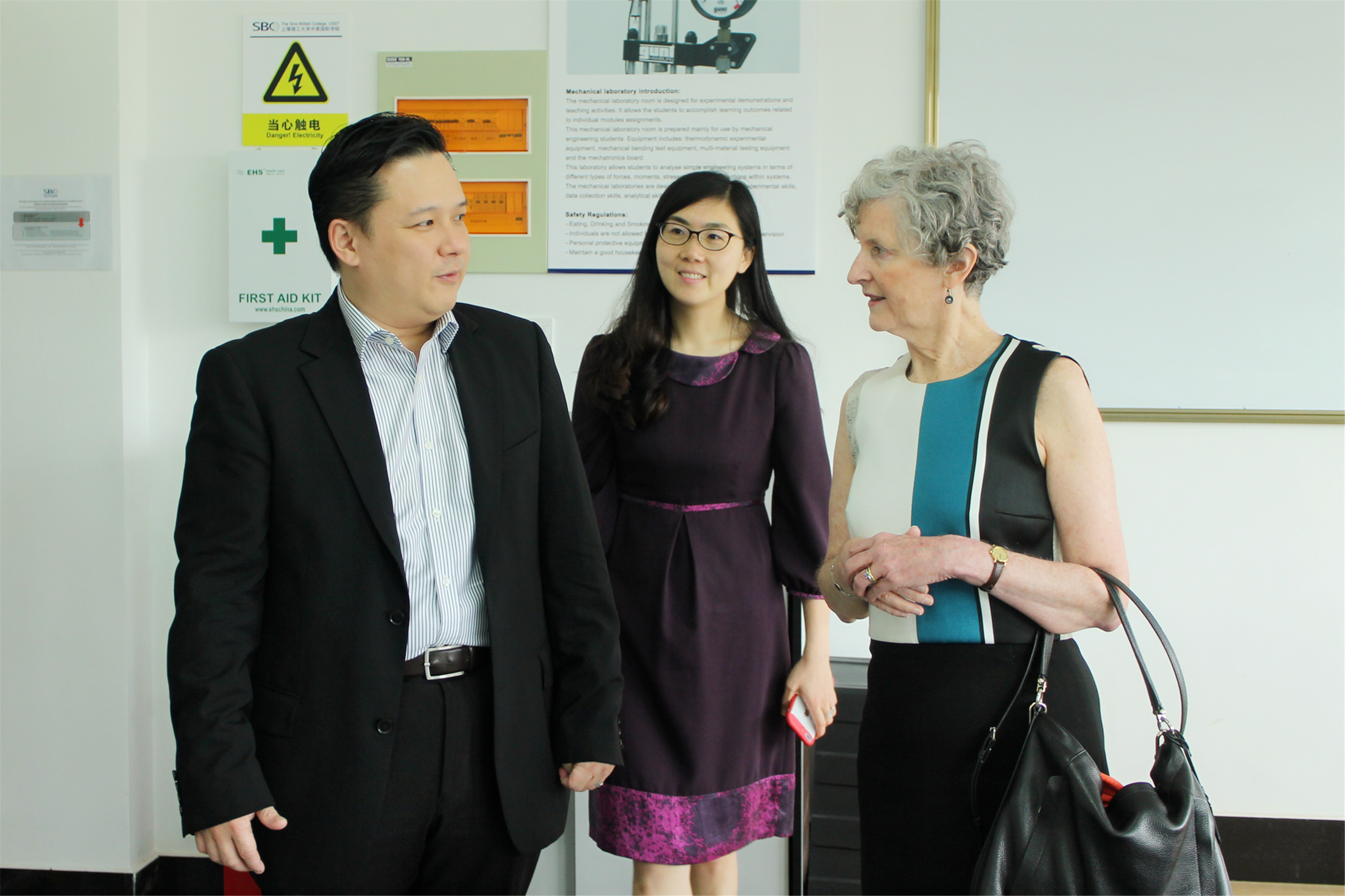 上海理工大学中英国际学院常务副院长兼代行执行院长刘芹教授热情接待了来访客人,并代表学院向英国曼彻斯特城市大学代表团的到访表示热烈欢迎。随后,Jennifer Watling教授在中英国际学院行政副院长徐琳的陪同下,先后参观了校园建筑、教学区域以及教职工办公区域等。