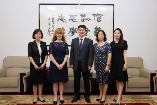 6月13日上午,英国北方大学联盟董事会(NCUK)主席 Joanne Purves及英国索尔福德大学中国项目经理Daisy Chen一行来访,上海理工大学校长丁晓东亲切会见外宾,国际交流处、中英国际学院负责人参加会见。