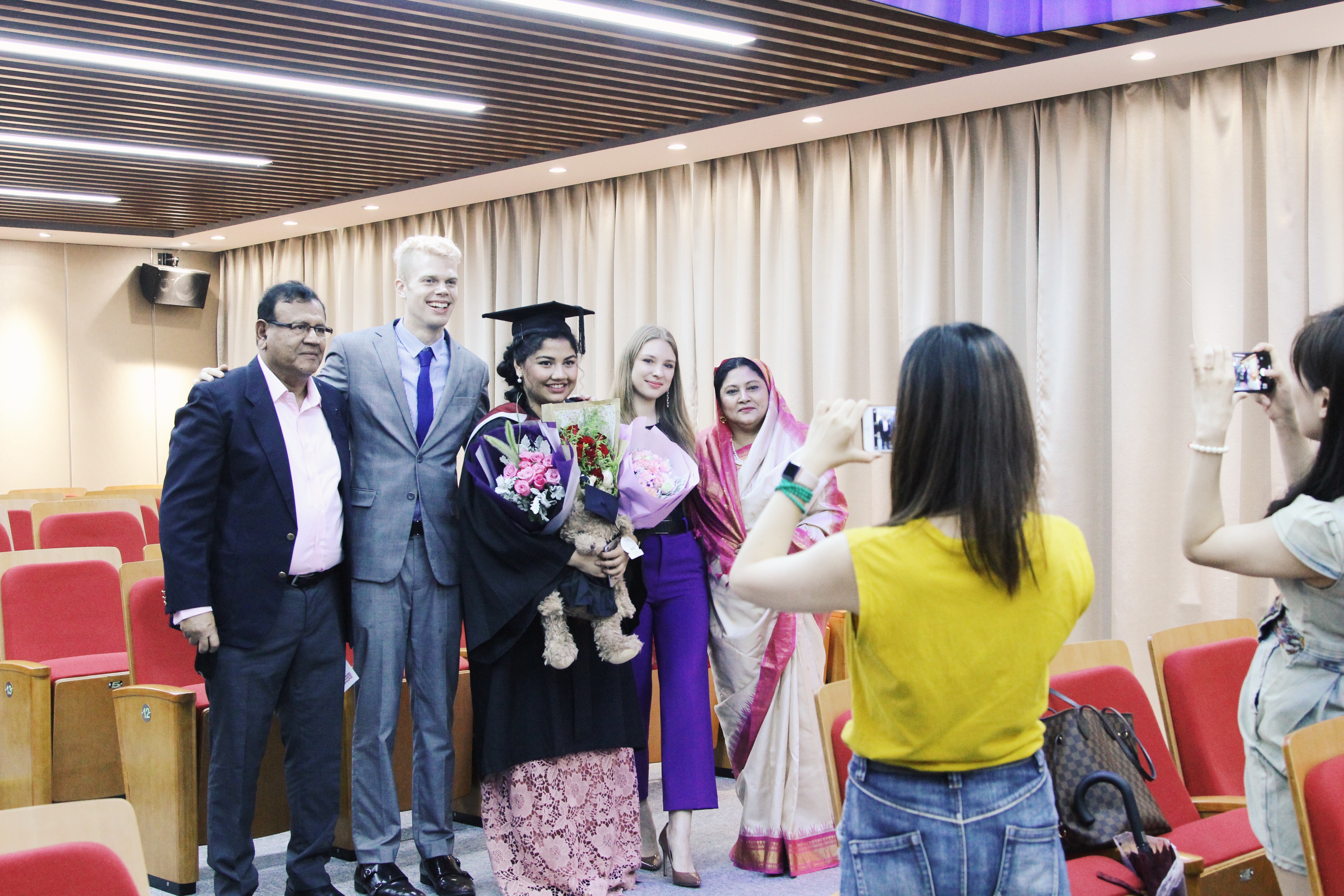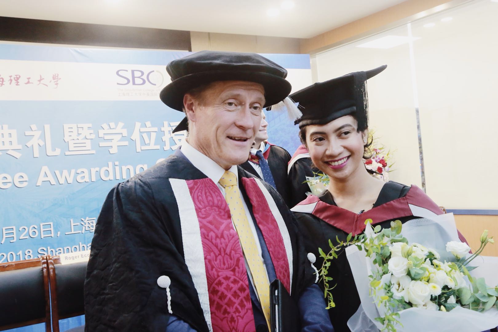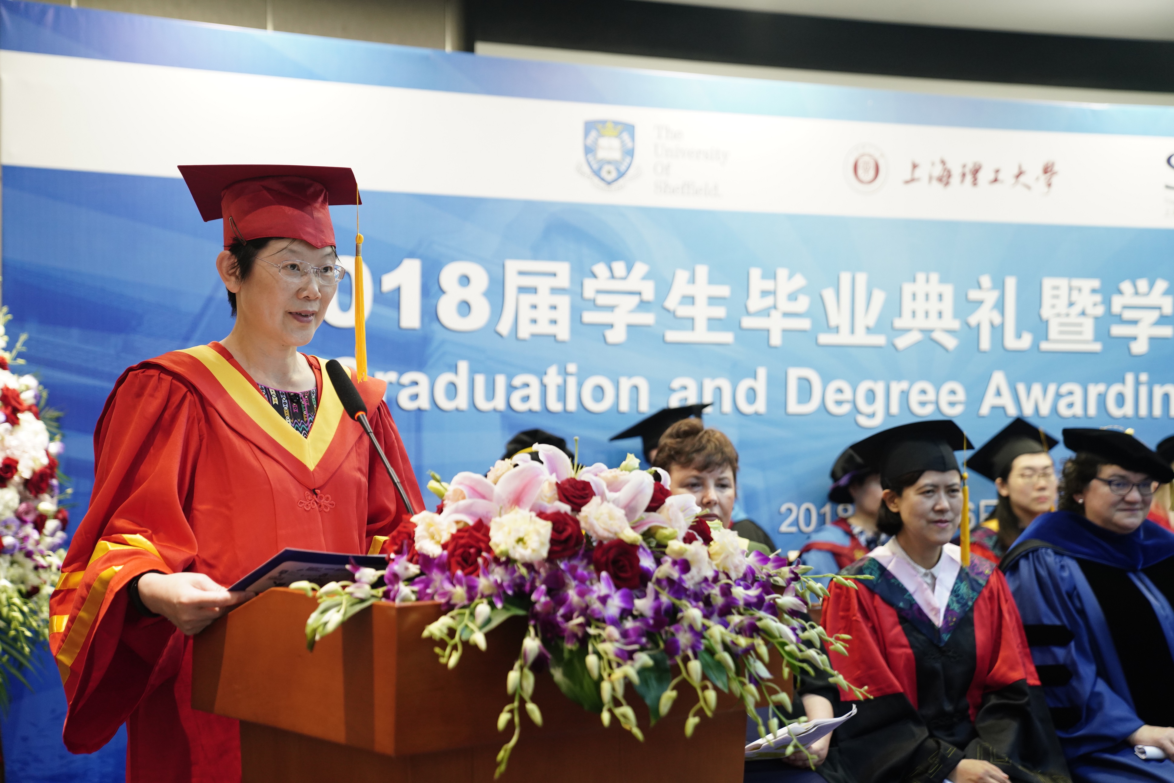 上海理工大学校长丁晓东在毕业典礼致辞中表示:“今年上海理工大学进入上海市地方高水平大学建设高校行列,成为上海市“双一流”重点建设的高校。中英国际学院秉承教育国际化的办学理念,借助中英合作双方的学术及资源优势,以责任领导力、创业与创新、文化同理为发展定位,在与英方合作大学的密切合作下,为社会培养了一批又一批兼具行业背景,又掌握高级管理知识的工、商、管等业界国际化人才。我希望毕业生们在未来的工作生活中一要求真务实、积极进取;二要勤学善思、坚持创新;三要追梦致远,坚守良知。祝同学们在新的征程上乘风破浪,再续华章!”