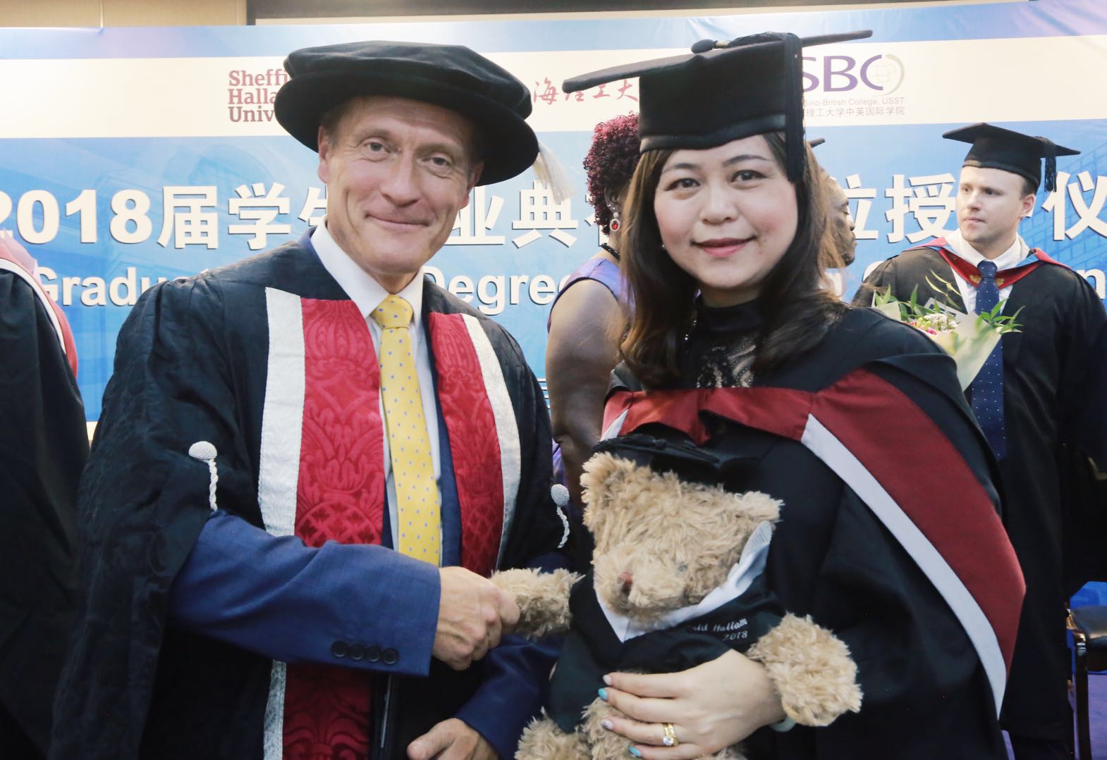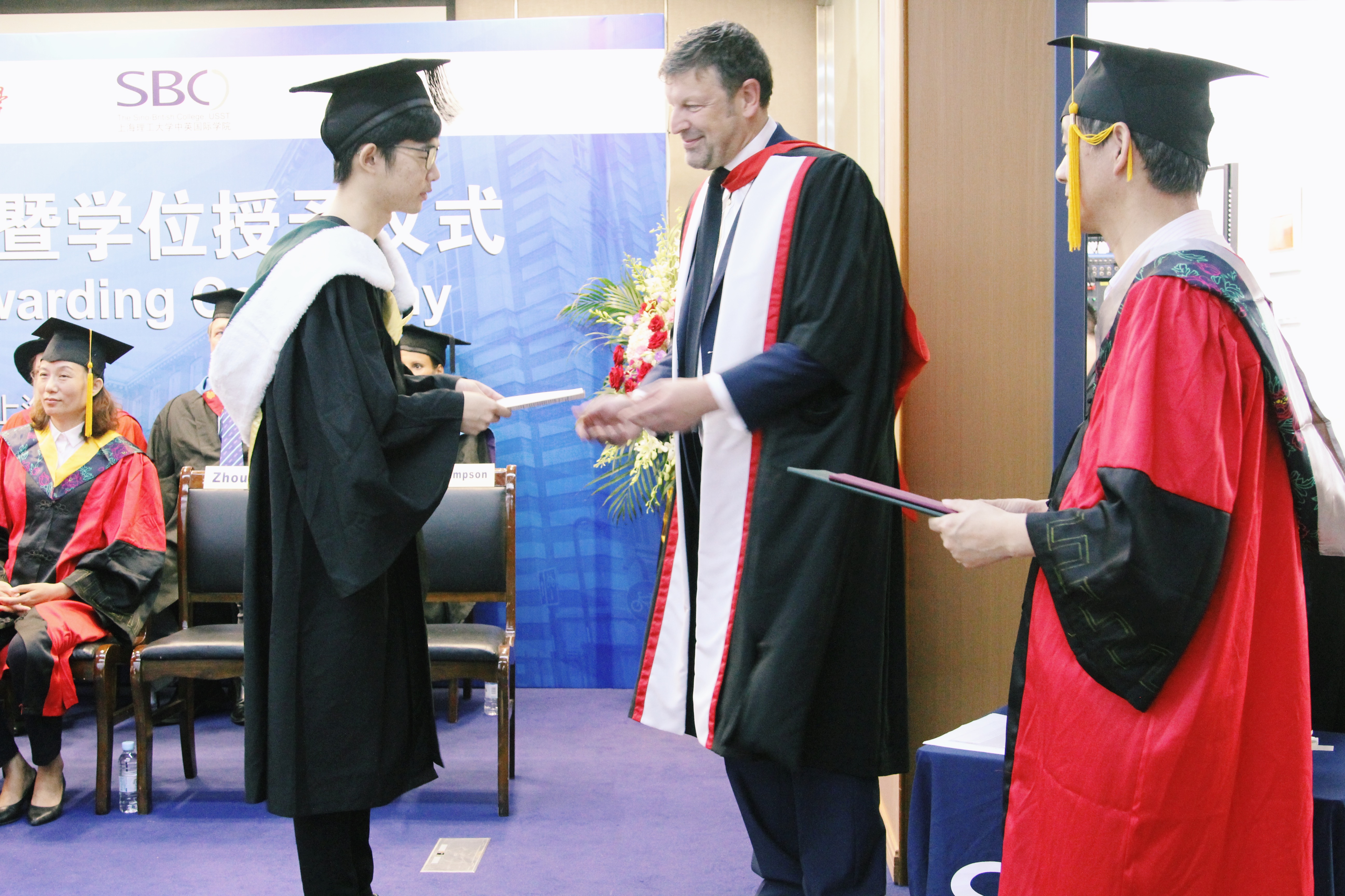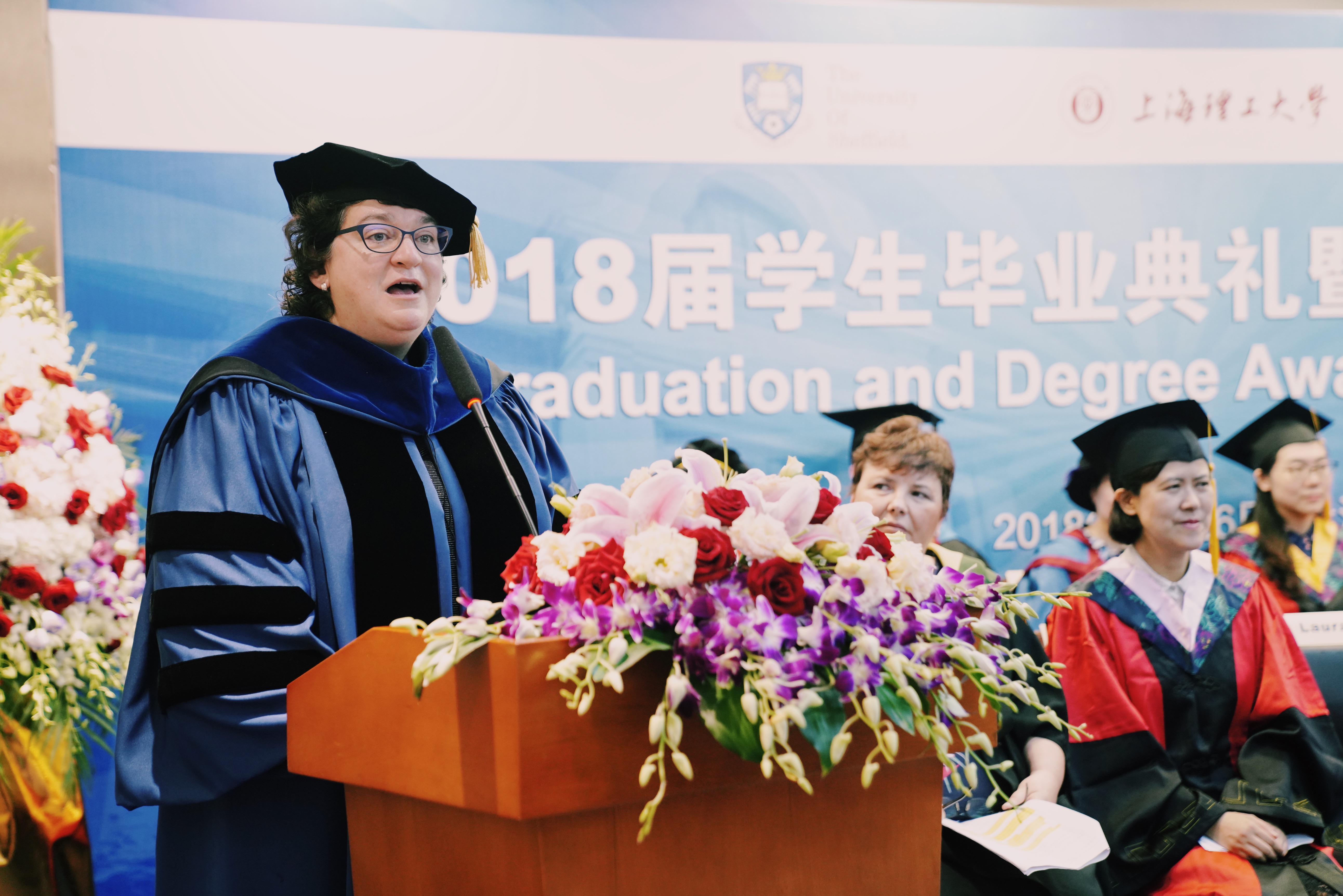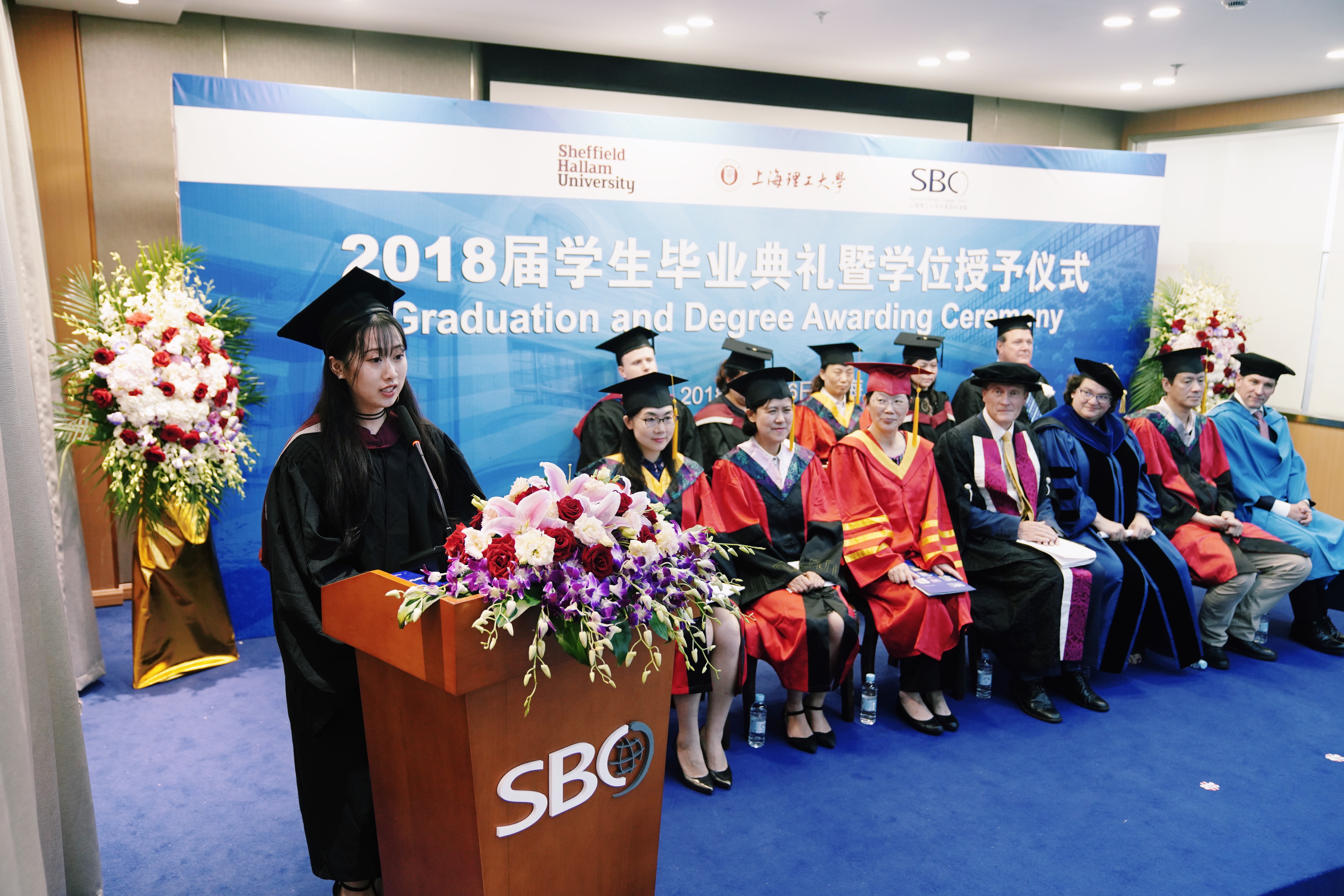 谢菲尔德大学国际合作副校长Malcolm Butler博士首先用精心练习的中文为现场每一位工商管理专业毕业生送上了最诚挚的祝福,并在毕业典礼致辞中表示:“谢菲尔德大学致力于通过思想和知识的力量和应用,把这个世界变得更加美好。作为毕业生的你们,是实现这些变化的中坚力量。我希望你们,作为令人自豪的谢菲尔德大学和上海理工大学毕业生,能够继续致力于影响世界、脱颖而出。这一切只是一个开始,梦想从这里起航!”