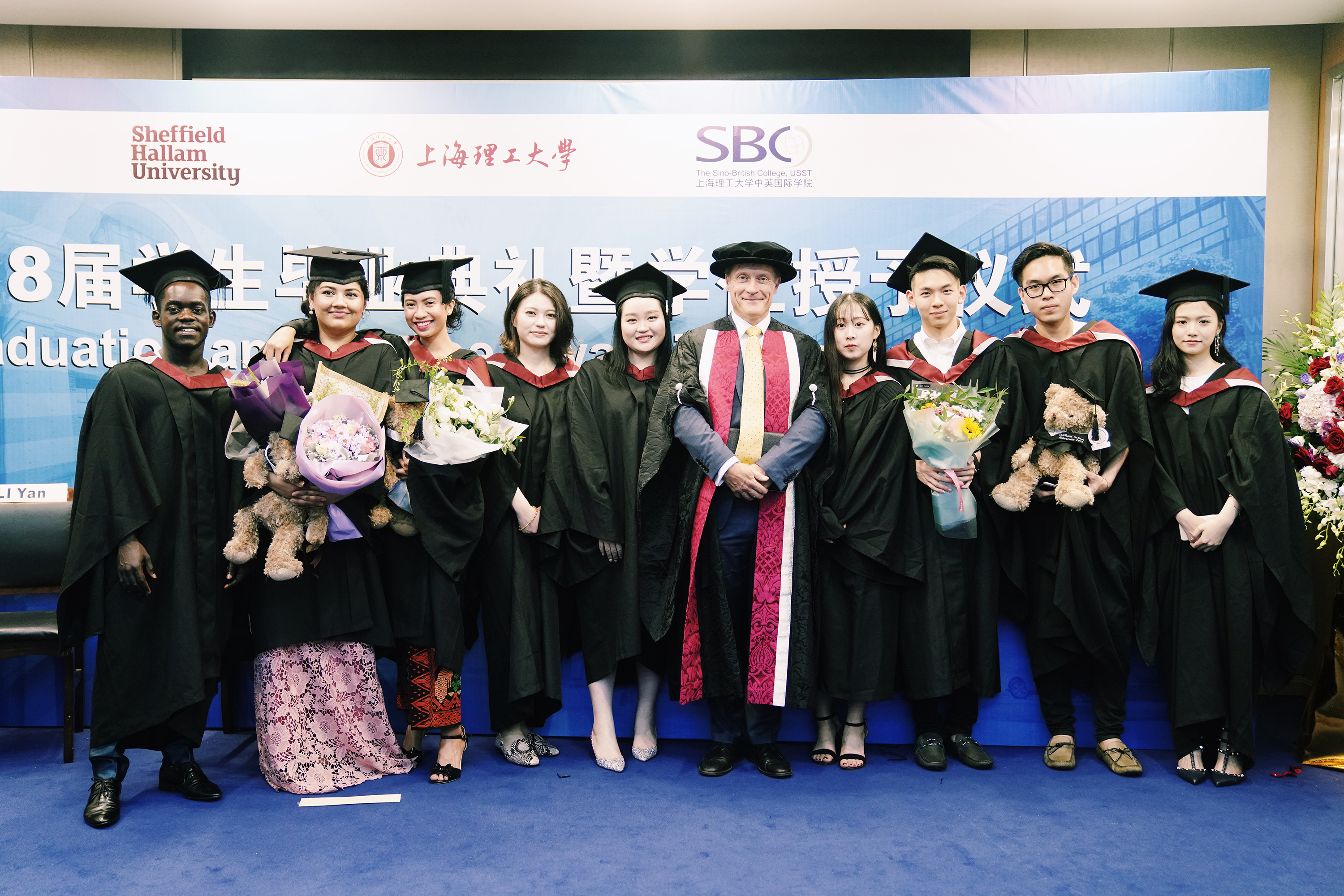 谢菲尔德哈勒姆大学副校长Roger Eccleston教授在谢菲尔德哈勒姆大学与上海理工大学中英国际学院首届工商管理毕业典礼致辞中表示:“大学毕业是你们人生的一个重要里程碑,今天的毕业典礼则是对你们‘我爱学习,学习使我快乐’的嘉奖;我也非常荣幸能够在这里,见到努力拼搏的你们。你们学所有成、学有所用、未来可期。我相信,在座的每一位毕业生一定能够取得更大的成就,收获更多、更高的赞誉!”