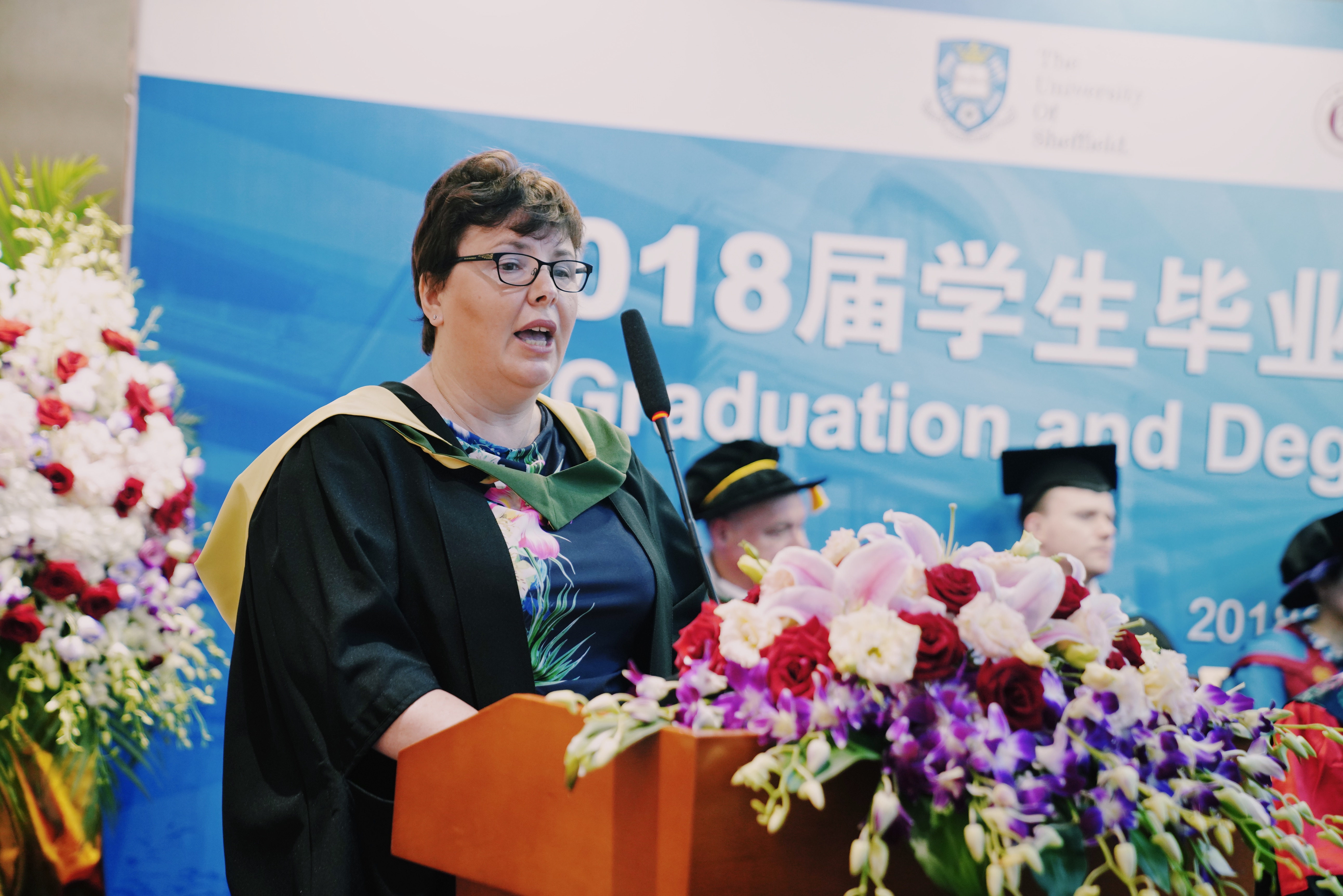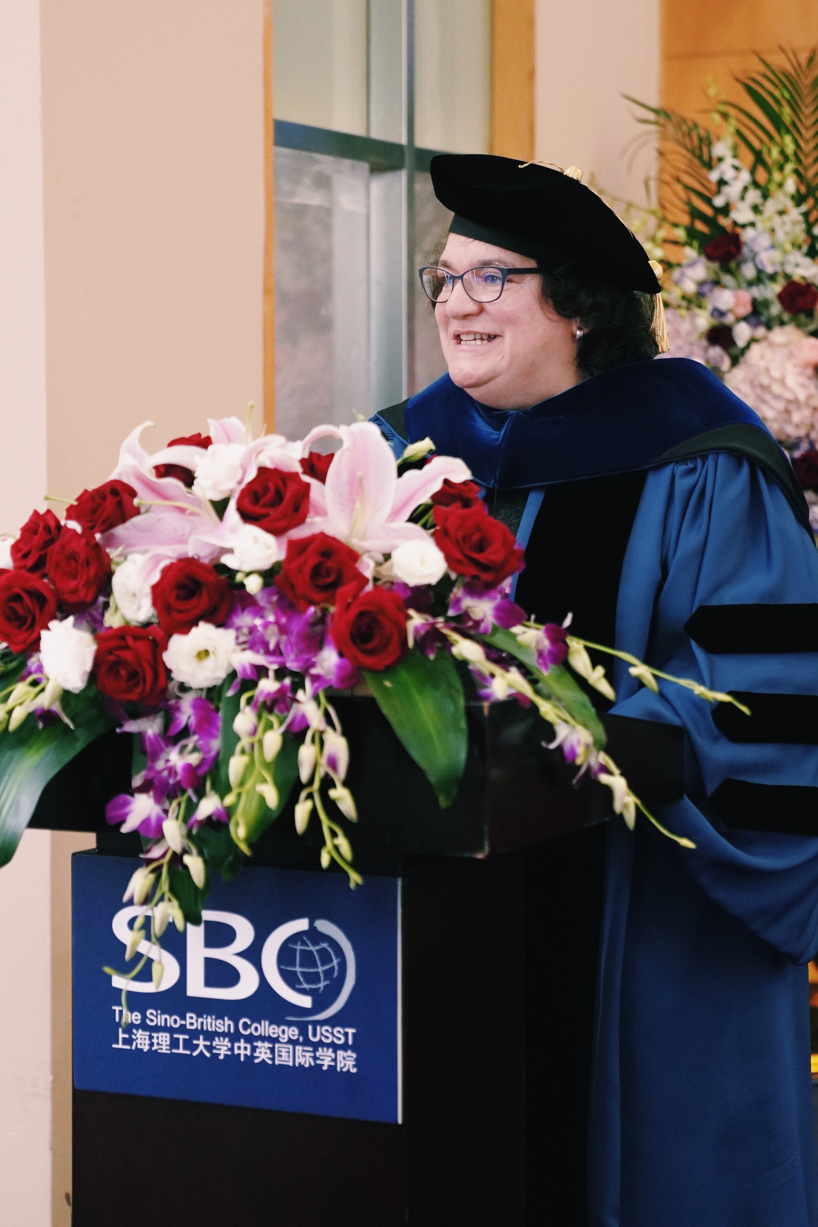 中英国际学院候任执行院长Laura Bishop博士在毕业典礼致辞中表示:“今天是我和在座的很多朋友第一次见面,很荣幸今天能够在这里和你们相聚,共襄盛举。毕业不是终点,而是人生的新起点。因此毕业典礼也被称作‘起航仪式’,由此 开启你们人生崭新的一页。无论你选择进入职场还是继续深造,在这里的学习经历都将使你信心倍增。我衷心的祝愿你们事业有成、前途似锦。很荣幸能够在你们美好的大学四年相伴左右、目睹你们羽翼丰满、成就一番事业。”