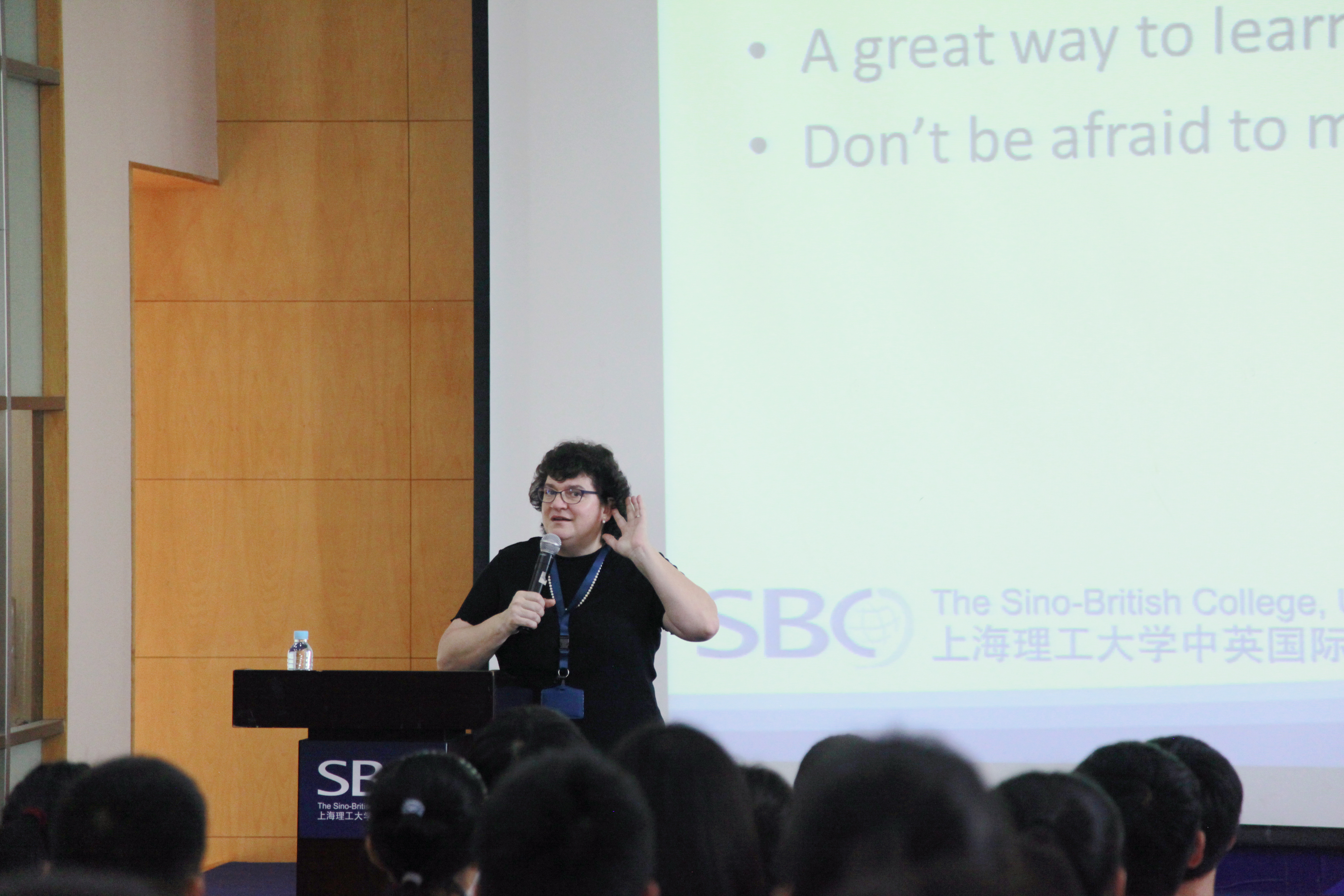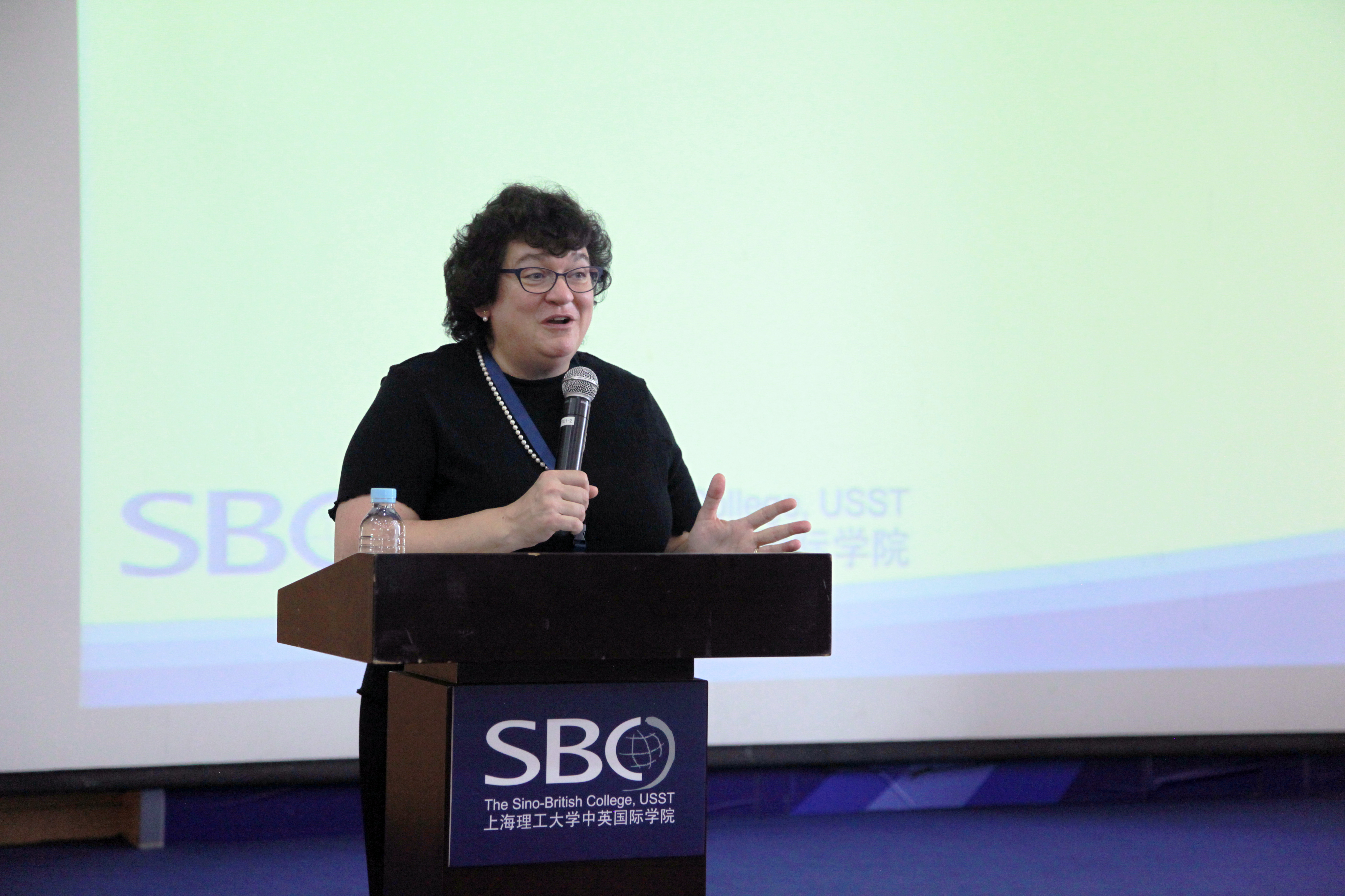 执行院长 Laura C. Bishop教授以“Surviving and thriving in a British classroom”为题讲解了英式教育理念、英式幽默等英国文化,鼓励新生们在大学学习期间努力培养良好的学习习惯,在课前、课时、课后都付出应有的努力和准备,与授课老师保持良好的互动与沟通。在课外生活中,勇于尝试新鲜事物,积极参与校园文化活动,丰富大学生活。
