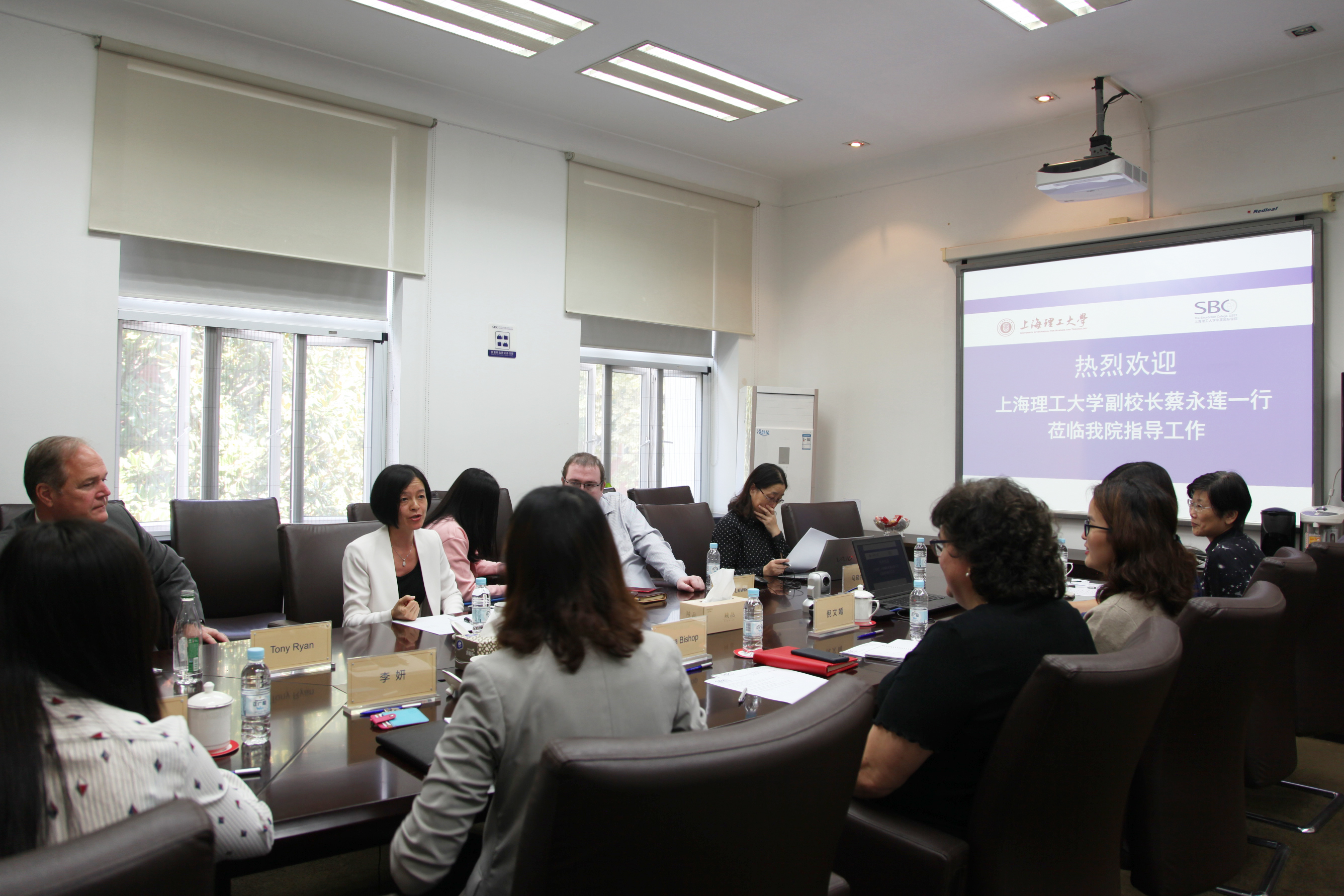 10月12日上午,上海理工大学副校长、中英国际学院院长蔡永莲莅临中英国际学院开展工作调研。上海理工大学国际交流处处长马晓婷陪同。中英国际学院执行院长Laura C. Bishop,学院党总支书记、复兴路校区管理委员会副主任李妍,常务副院长刘芹,行政副院长徐琳,原上海理工大学副校长、中英国际学院院长,现任学院兼职教授田蔚风,学科带头人及内设部门负责人等参加了调研会。