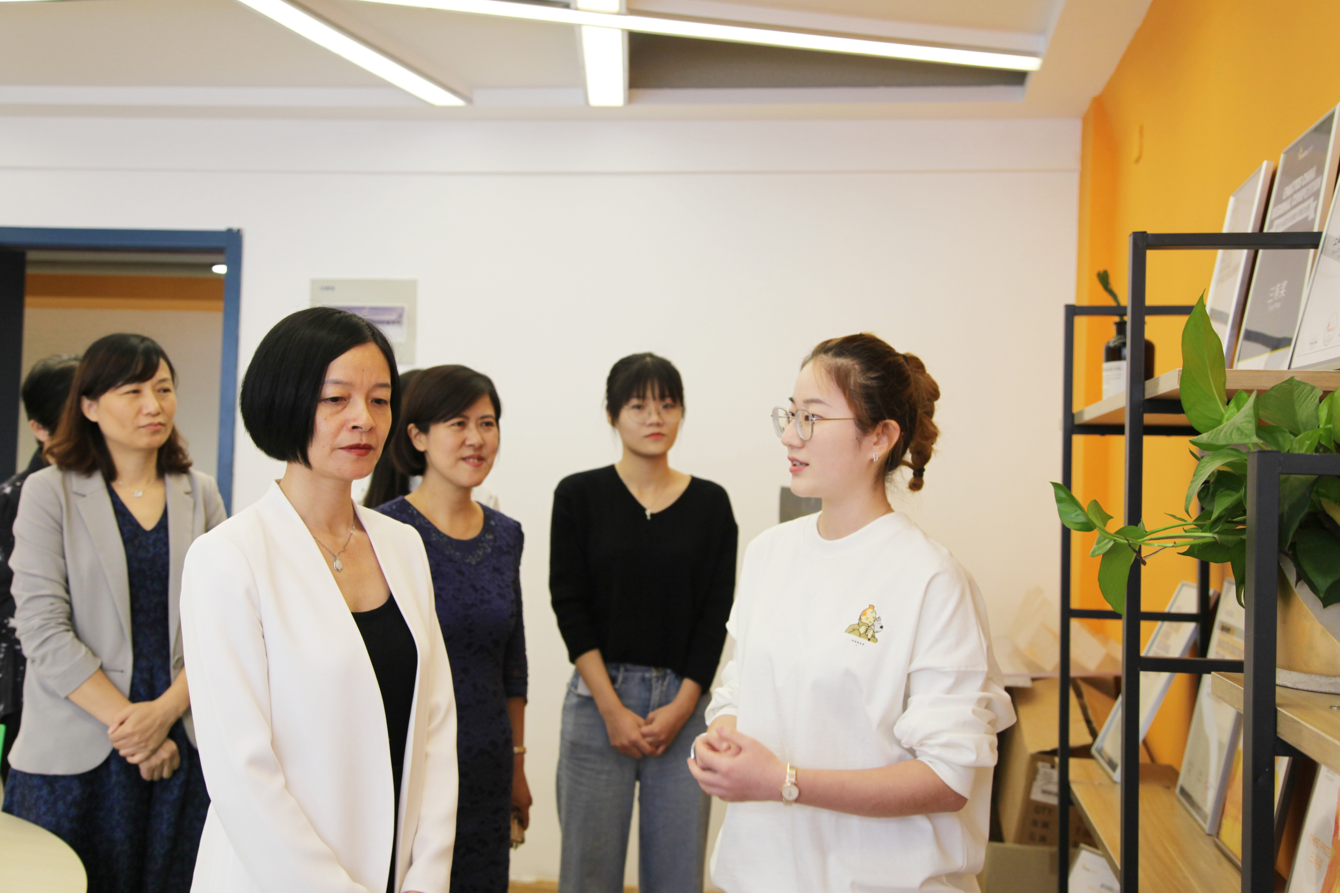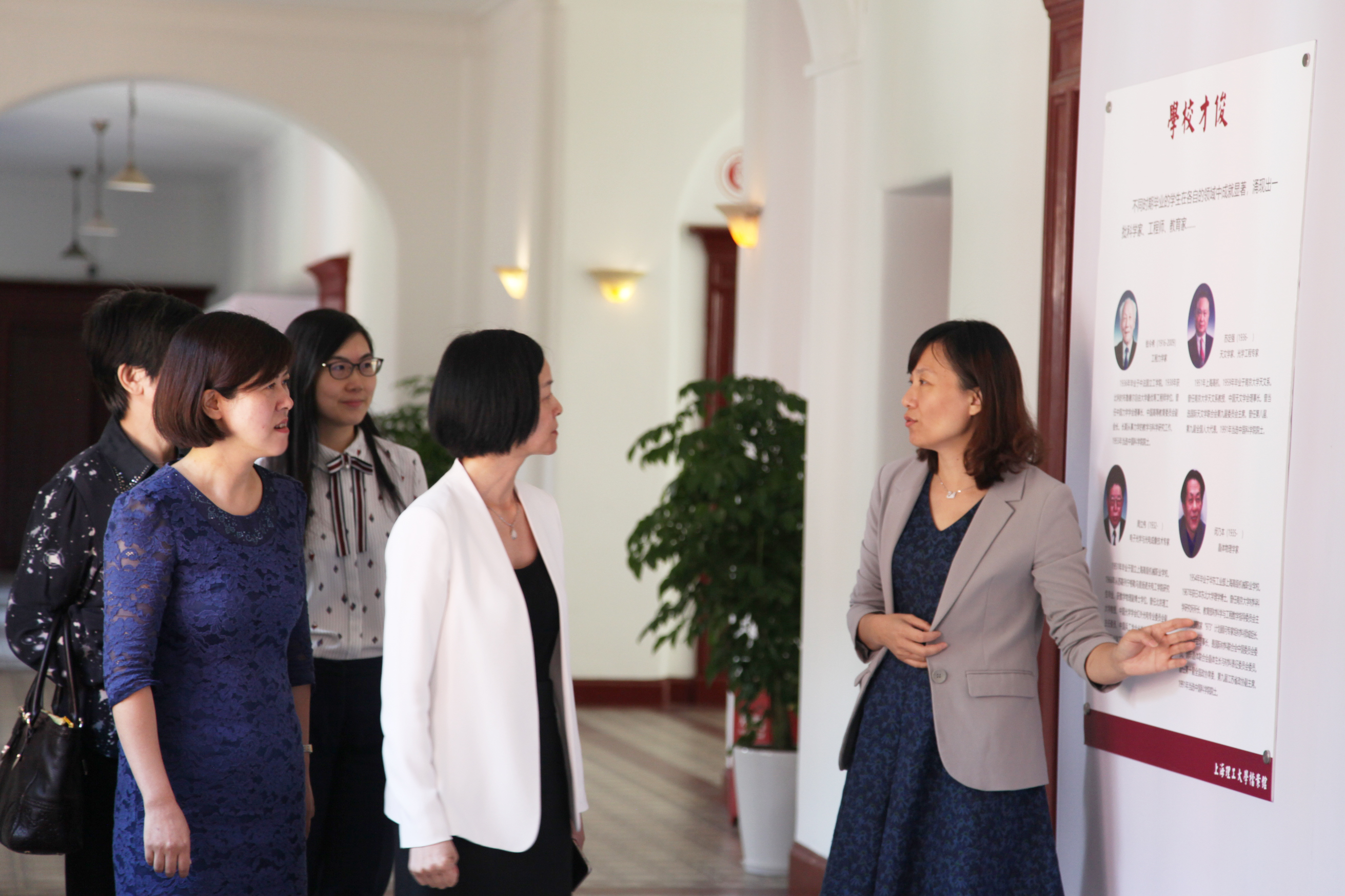 调研会结束后,副校长、院长蔡永莲一行在学院全体党政班子及内设部门负责人的陪同下先后参观了设立在与学校同样拥有百年历史的学院图书馆内的校史展,学院学生服务中心和学生创新与创业中心。