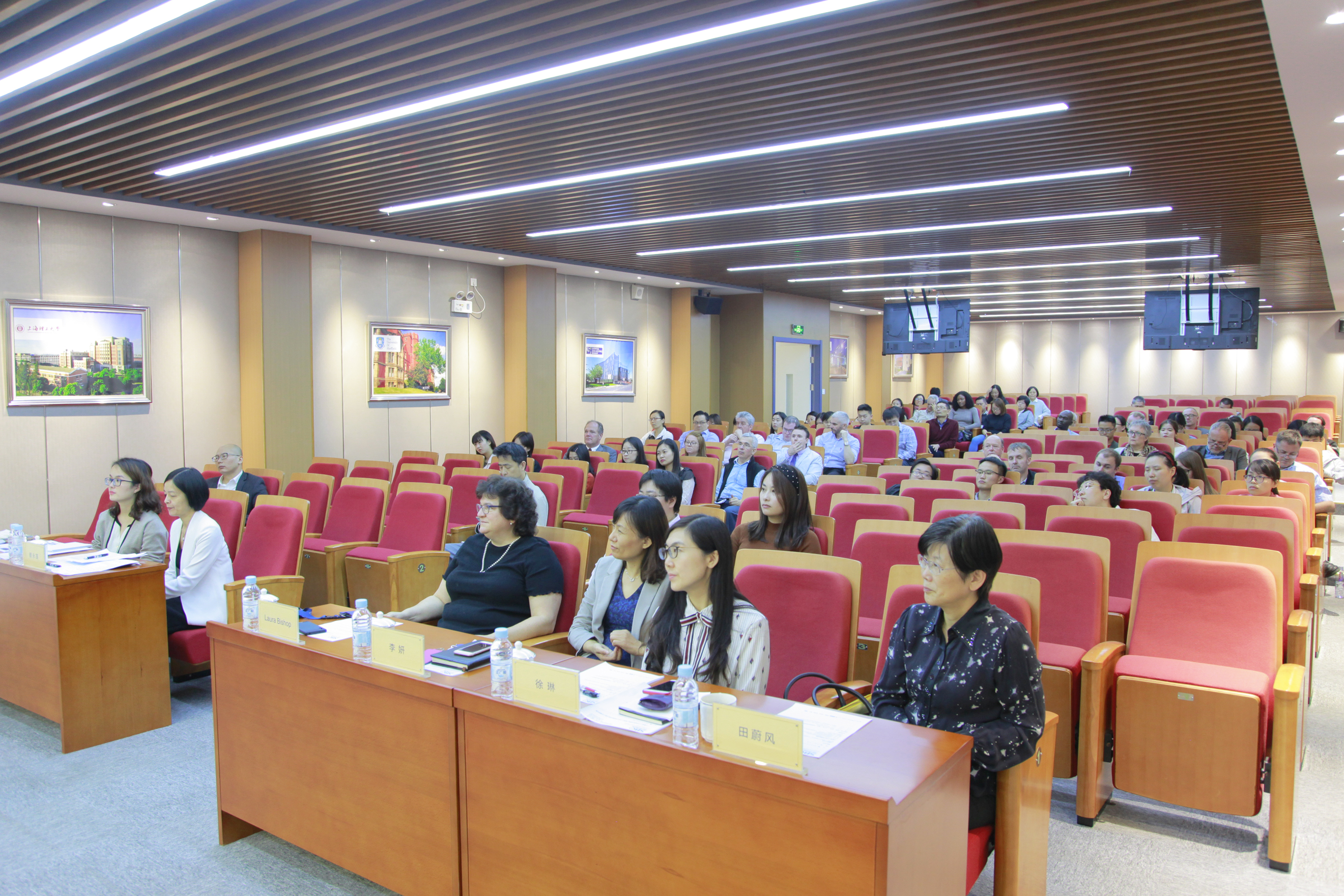 下午,学院在教学楼大礼堂召开全体教职工大会。会议以“中英国际学院发展现状和前景,以新发展理念促进学院全面发展”为主题。上海理工大学副校长、中英国际学院院长蔡永莲,学院执行院长Laura C. Bishop,党总支书记、复兴路校区管理委员会副主任李妍,常务副院长刘芹,行政副院长徐琳,原上海理工大学副校长、中英国际学院院长,现任学院兼职教授田蔚风以及学院全体教职员工出席会议。常务副院长刘芹主持会议。