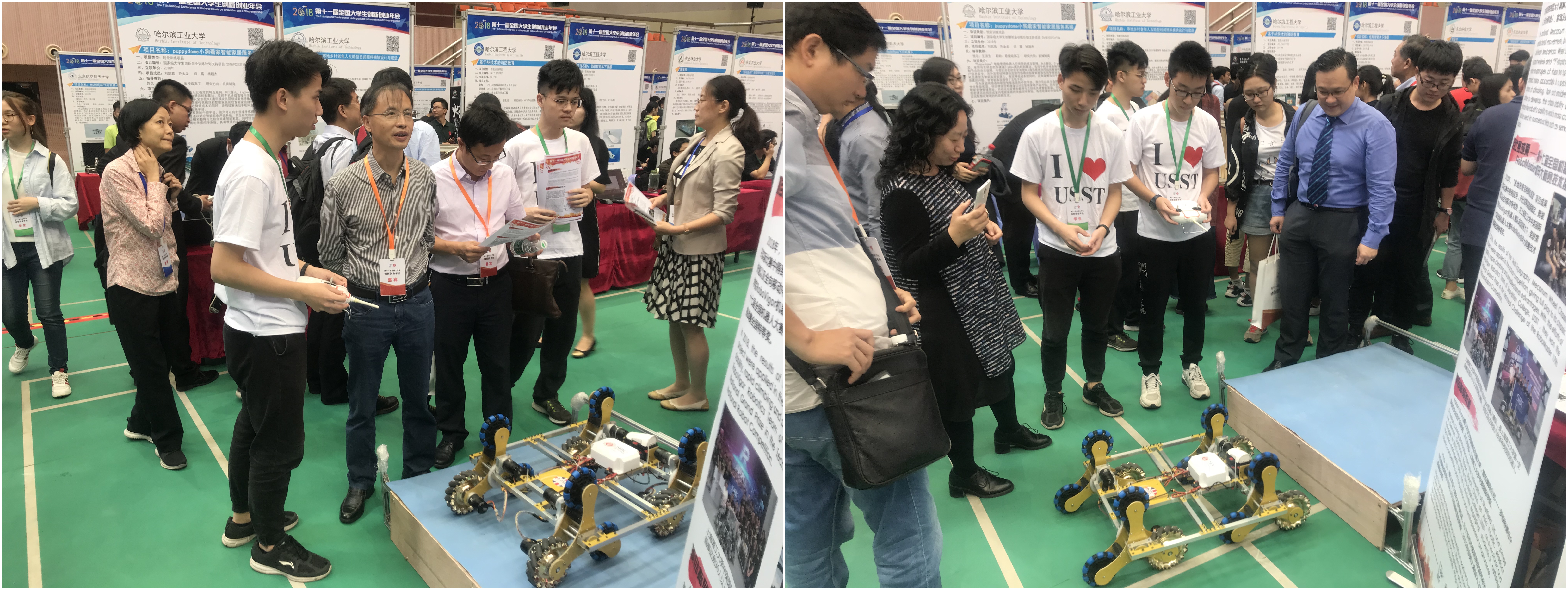 我院胡瑞、武军哲、曹吉文、周宇航等同学展示的创新项目《多地形麦克纳姆轮底盘》(指导教师:Adrian Chong , Ping Liu)以年会第二名的优异成绩赢得由专家组评选“最佳创意项目”奖,同时还获得由参会师生网络投票评选的“我最喜爱的项目”奖。这一创新项目成果可在特定环境中较为精准地控制底盘,未来将应用在互联网机器人、自动仓储机器人等领域,具有广阔的应用前景。此项目在年会展示期间不仅吸引了大批参观者的目光,更得到了上海理工大学党委副书记孙跃东、教务处处长朱坚民等领导的高度评价和现场指导。