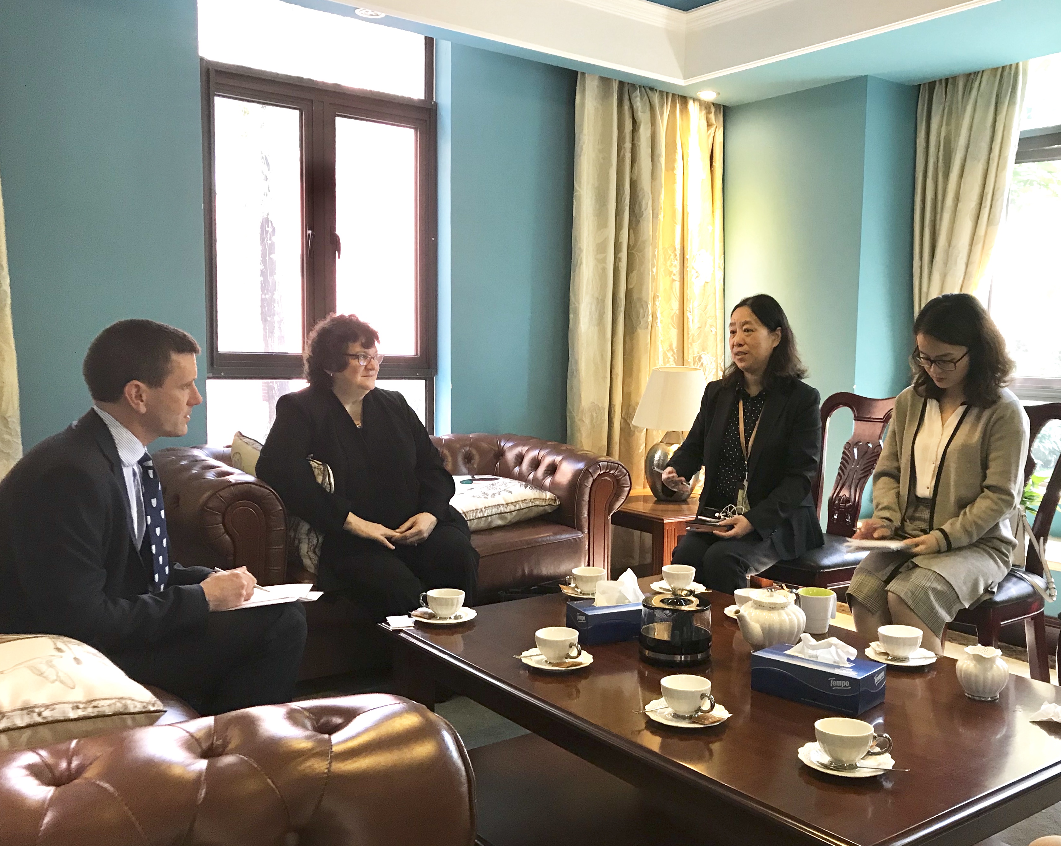 10月23日下午,英国谢菲尔德大学副校长兼首席运营官Andrew Dodman先生访问上海理工大学中英国际学院。学院执行院长Laura C. Bishop教授,常务副院长刘芹教授,学院党总支书记、复兴路校区管理委员会副主任李妍,行政副院长徐琳,工程与计算学院专业项目负责人、高级讲师Adrian Chong博士和语言、教育与文化学院主任、高级讲师Gordon Callan等相关部门负责人热情迎接Andrew Dodman先生到访并举行座谈会。
