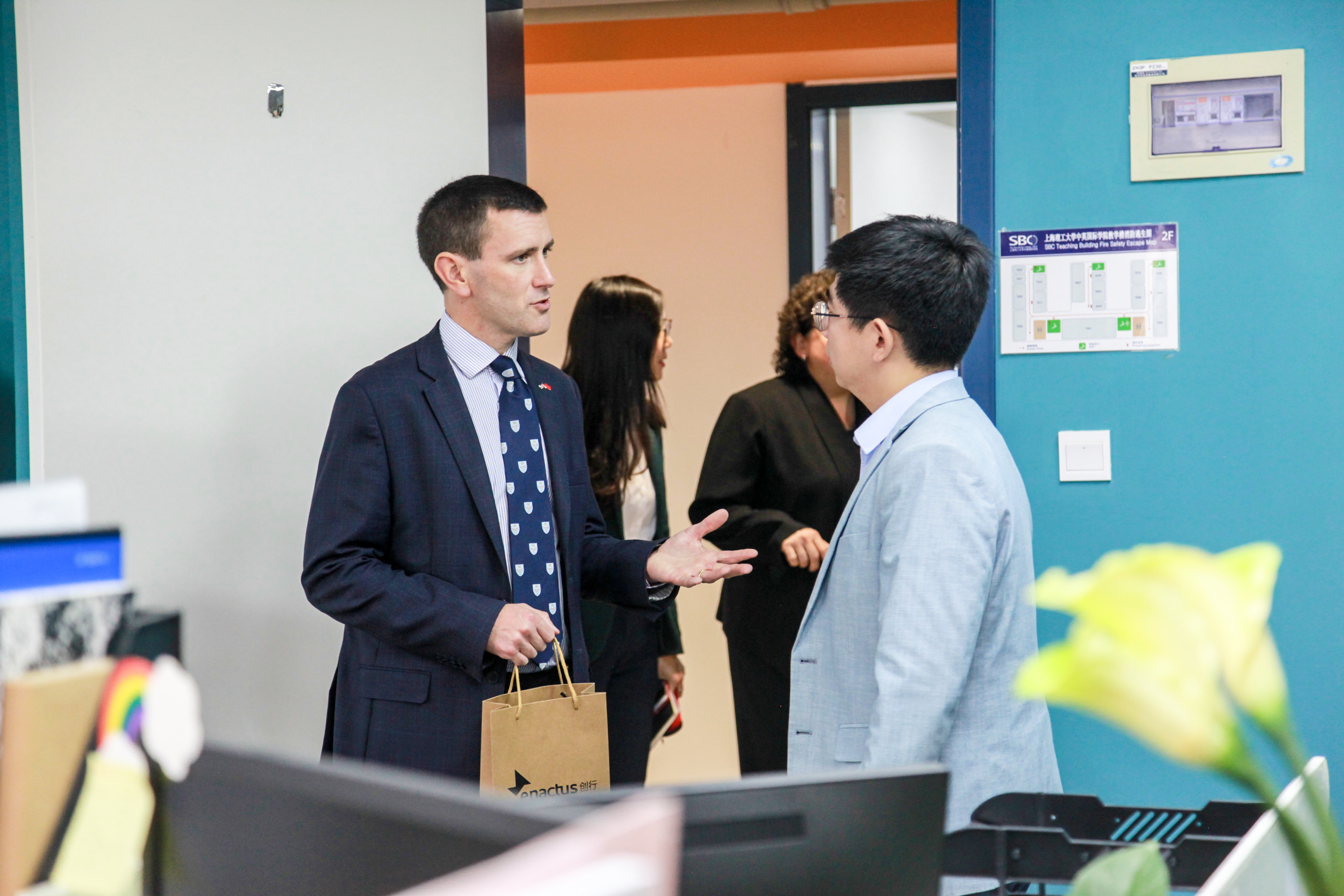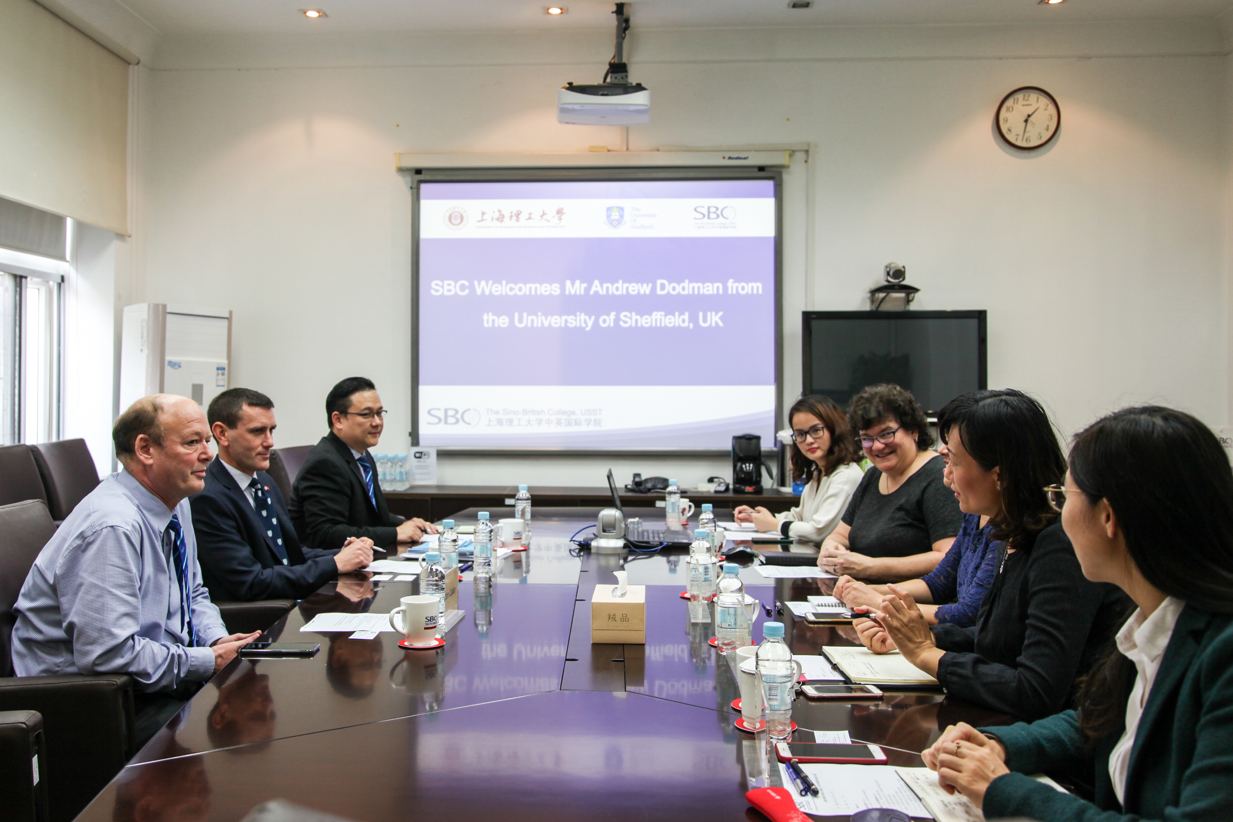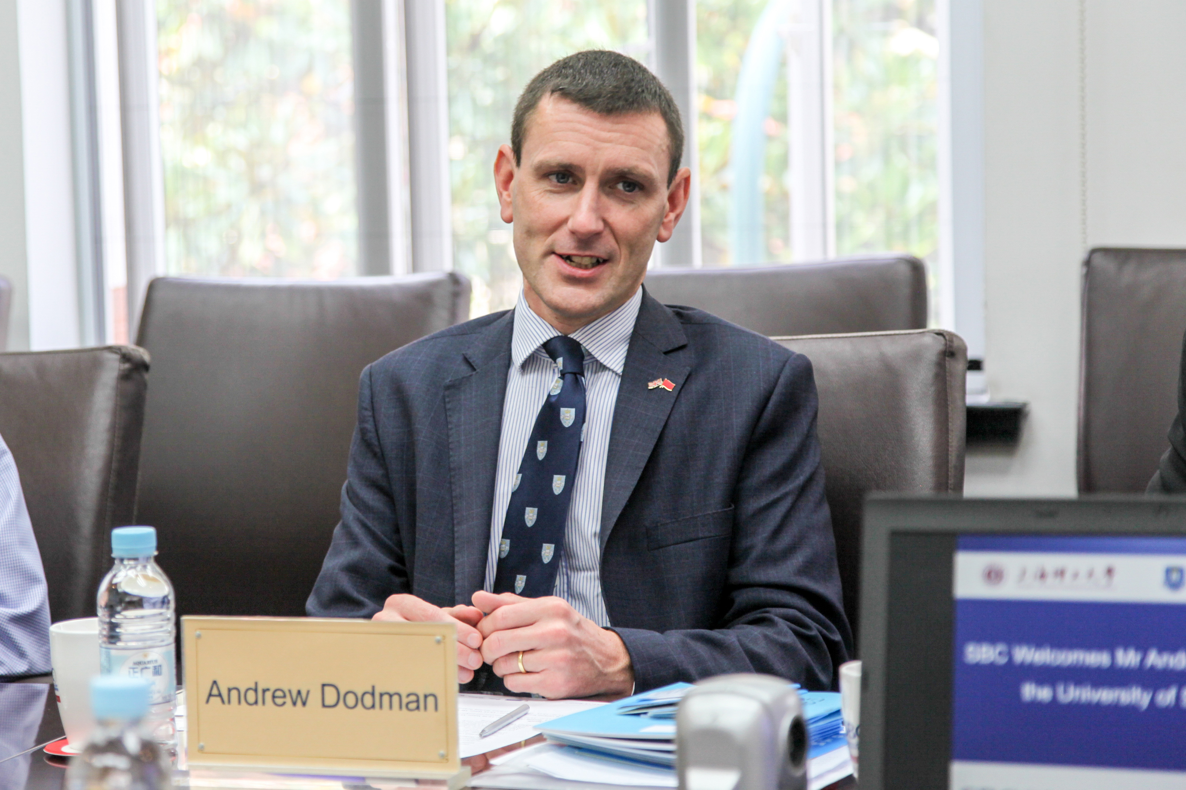 当天上午,Andrew Dodman先生应上海理工大学校长丁晓东邀请访问上海理工大学。校长丁晓东教授会见来宾,国际交流处及中英国际学院负责人陪同会见。校长丁晓东教授表示,今年7月到谢菲尔德大学访问,走访了谢大的学院、研究中心、工程大楼等,印象深刻,与校长的会谈也富有成效。谢菲尔德大学是我校中英国际学院九所英方合作成员大学之一,也是我校在英国最重要的合作伙伴。他指出中英国际学院随着新任外方执行院长的到任已步入稳定,学院近期发展目标是进一步提高学术科研水平,未来也将依托中英国际学院与谢菲尔德大学的现有合作基础,开拓新项目,推进上理工与该校工程类相关专业的深度交流及合作,促进我校新工科专业发展。Andrew Dodman先生感谢我校热情接待,非常认同丁校长提出的合作模式及合作理念,他表示将与学校相关工程学院负责人沟通,推动两校切实合作的开展。