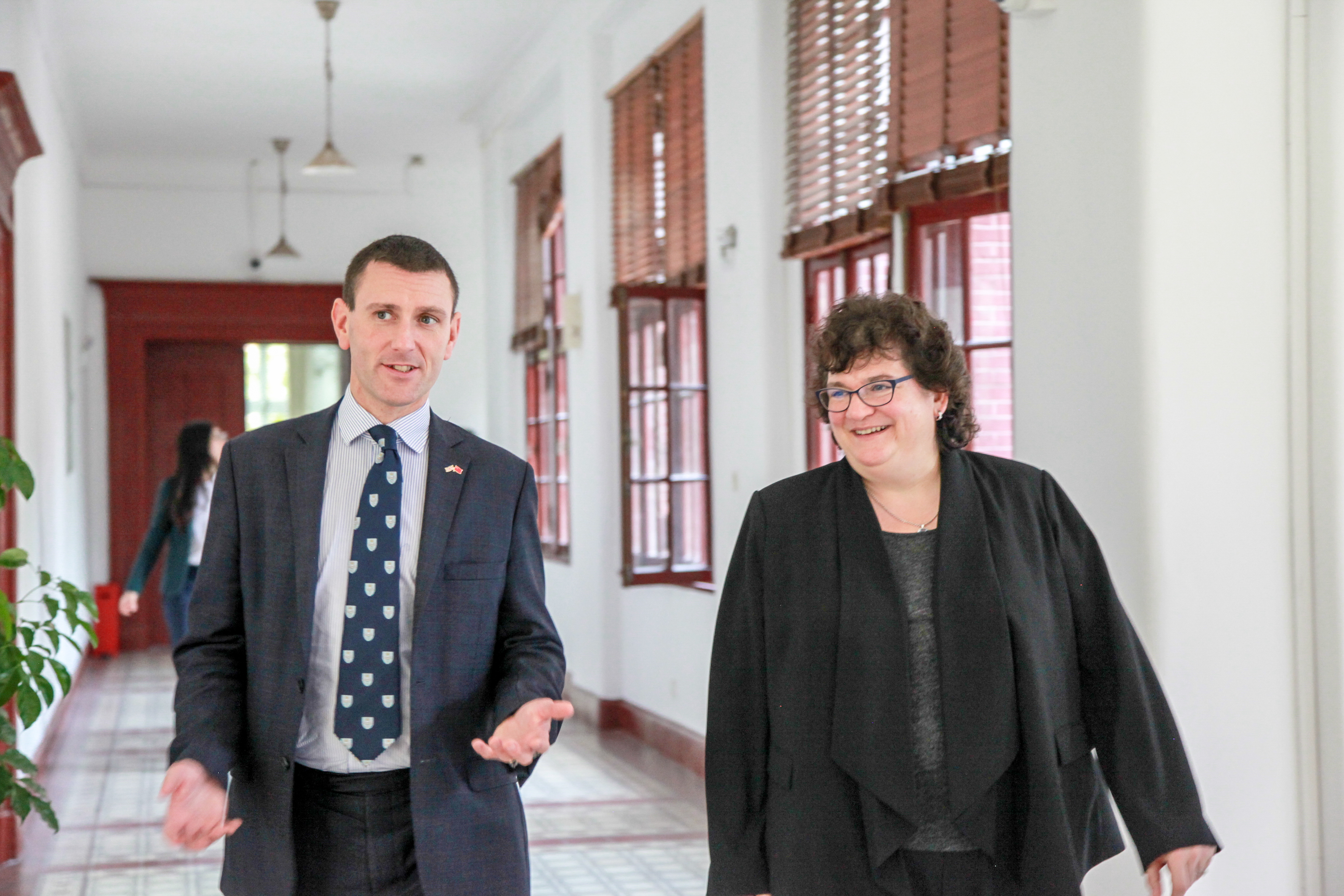 Andrew Dodman先生对学院中西合璧的建筑风格留下了深刻印象,并就学院为中外学生打造的国际化学习环境给予了积极评价和充分肯定,并希望双方能继续加强各个领域的合作与交流。