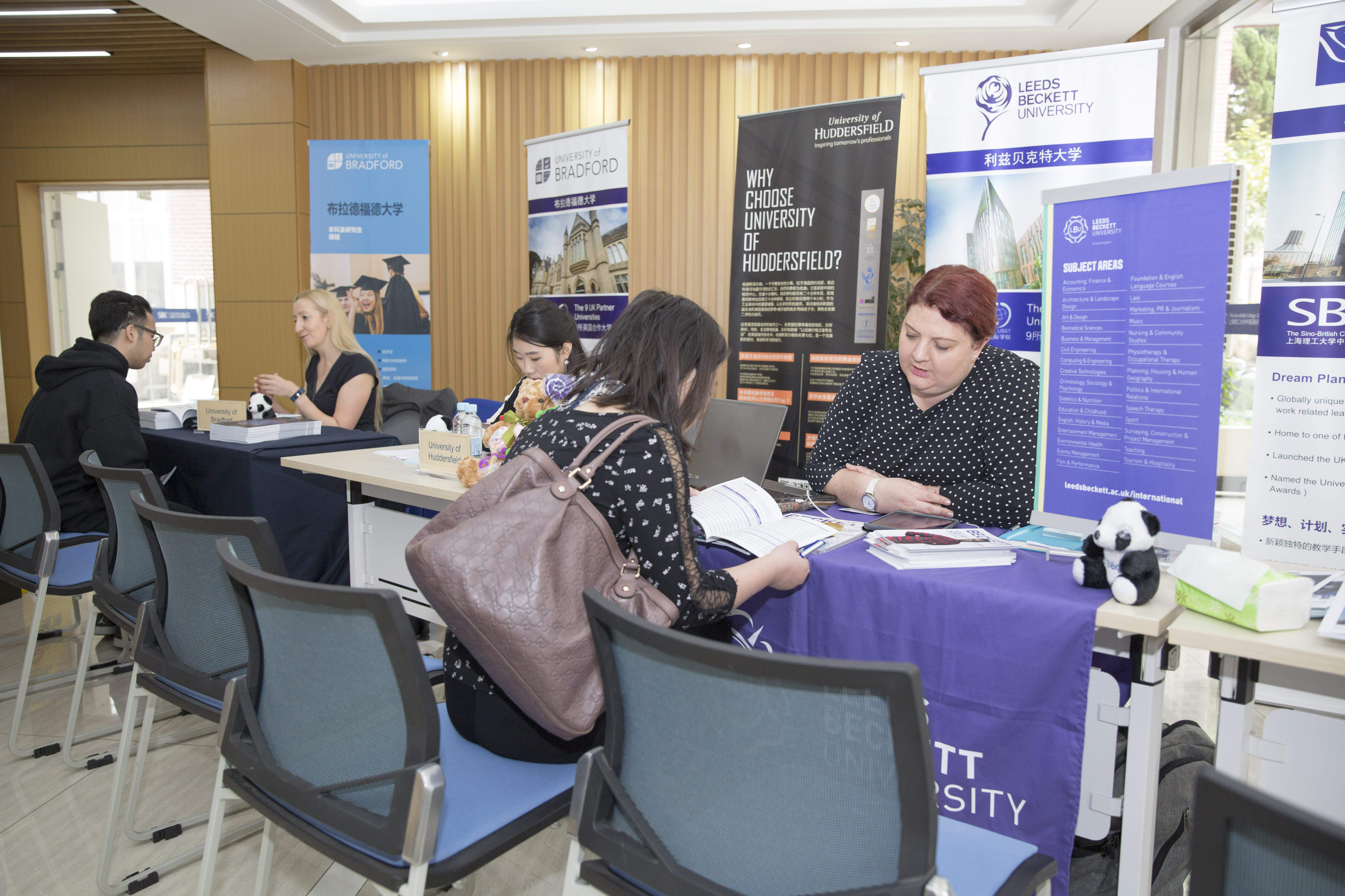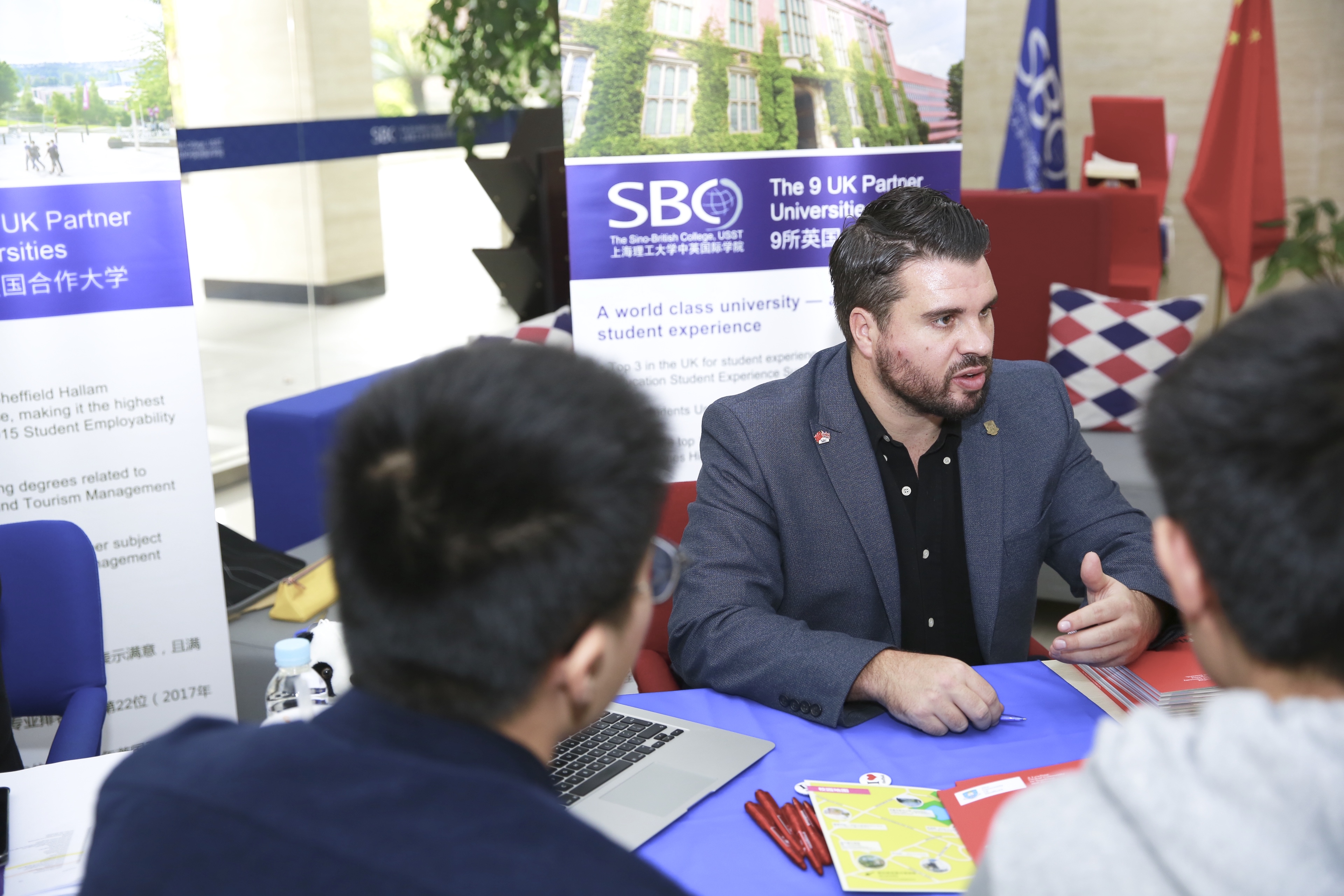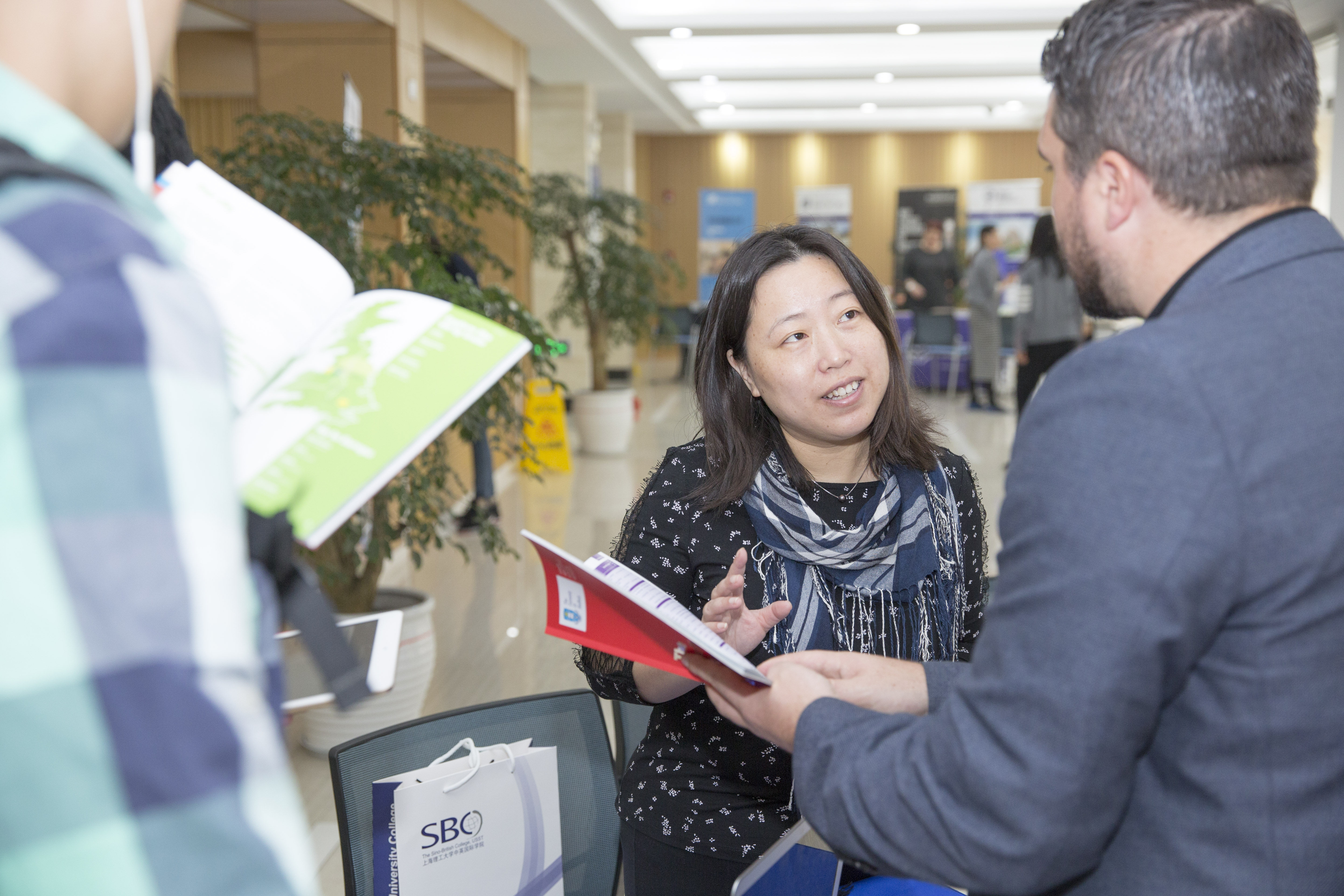 10月26日,SBC英国合作大学2018巡展在中英国际学院教学楼大厅成功举行。来自谢菲尔德大学Christopher Wilson先生, 布拉德福德大学Shelley Hurst女士、丁雷先生,利兹贝克特大学Victoria Barber女士,利物浦约翰摩尔大学詹芳芳女士,曼彻斯特城市大学Jonathan Pitt先生,谢菲尔德哈勒姆大学Cindy Wang-Cowham博士,哈德斯菲尔德大学夏方圆女士等多所英方合作大学代表到访我院,中英国际学院执行院长Laura C. Bishop教授代表学院对来访代表表示热烈欢迎。