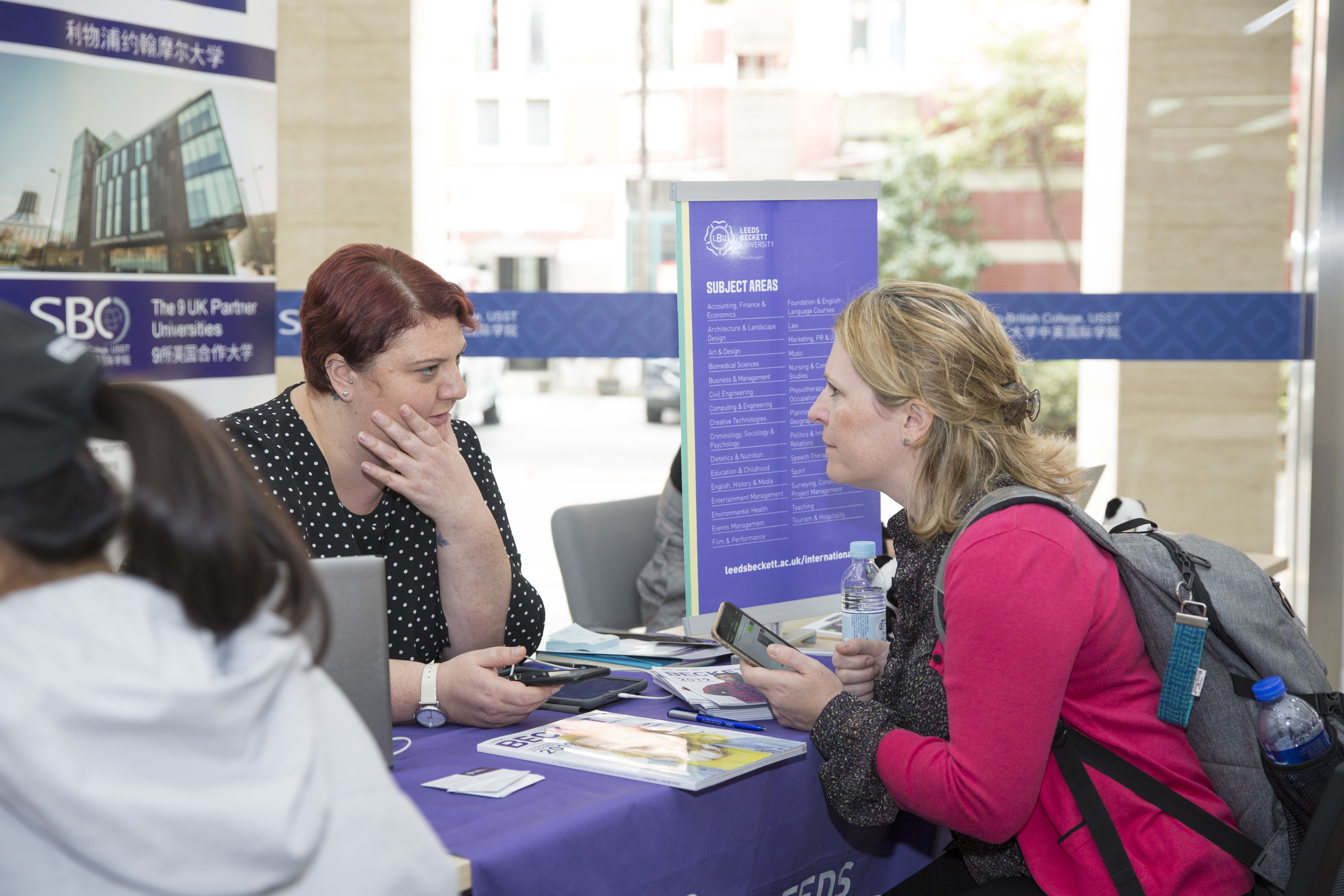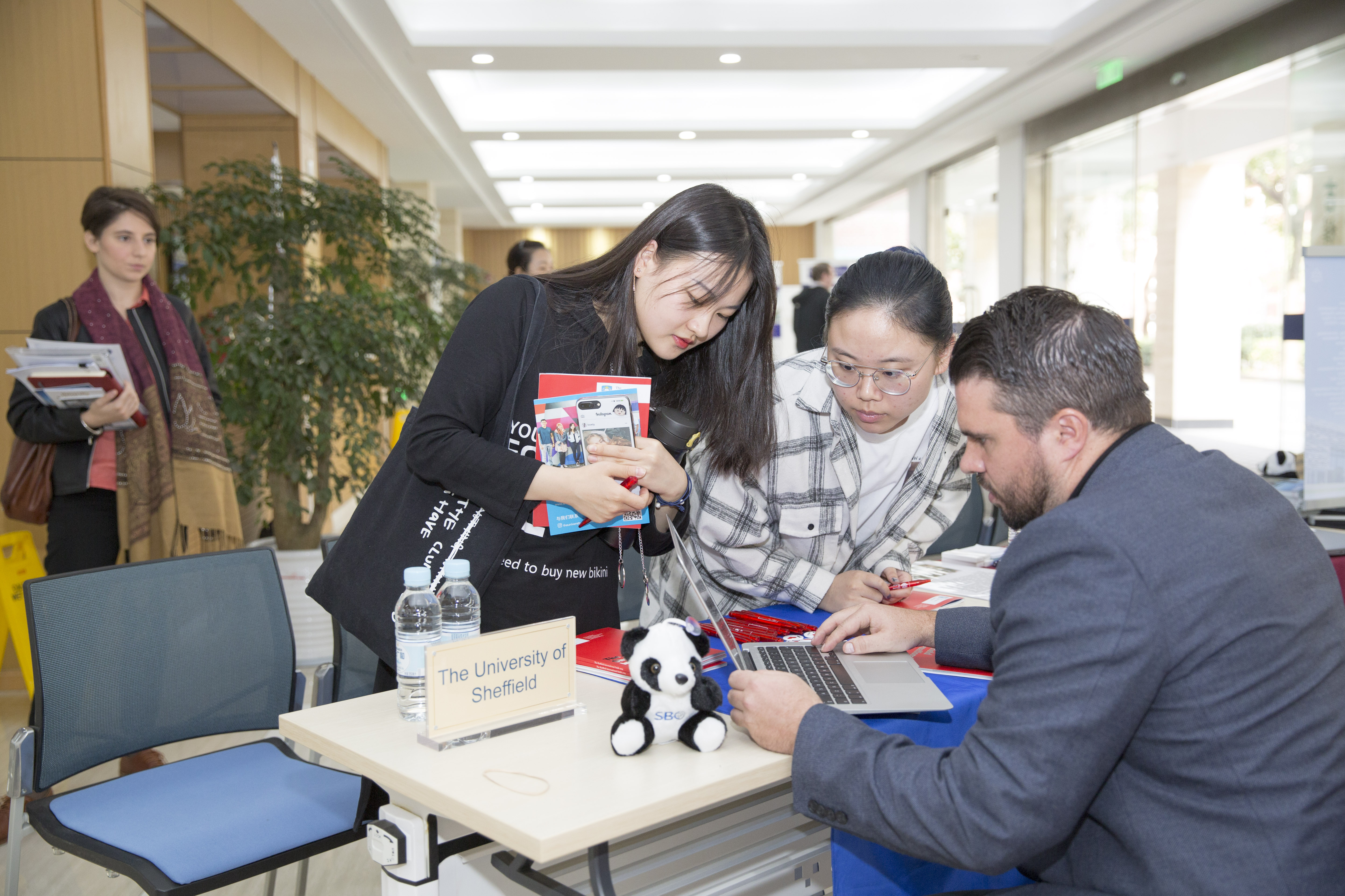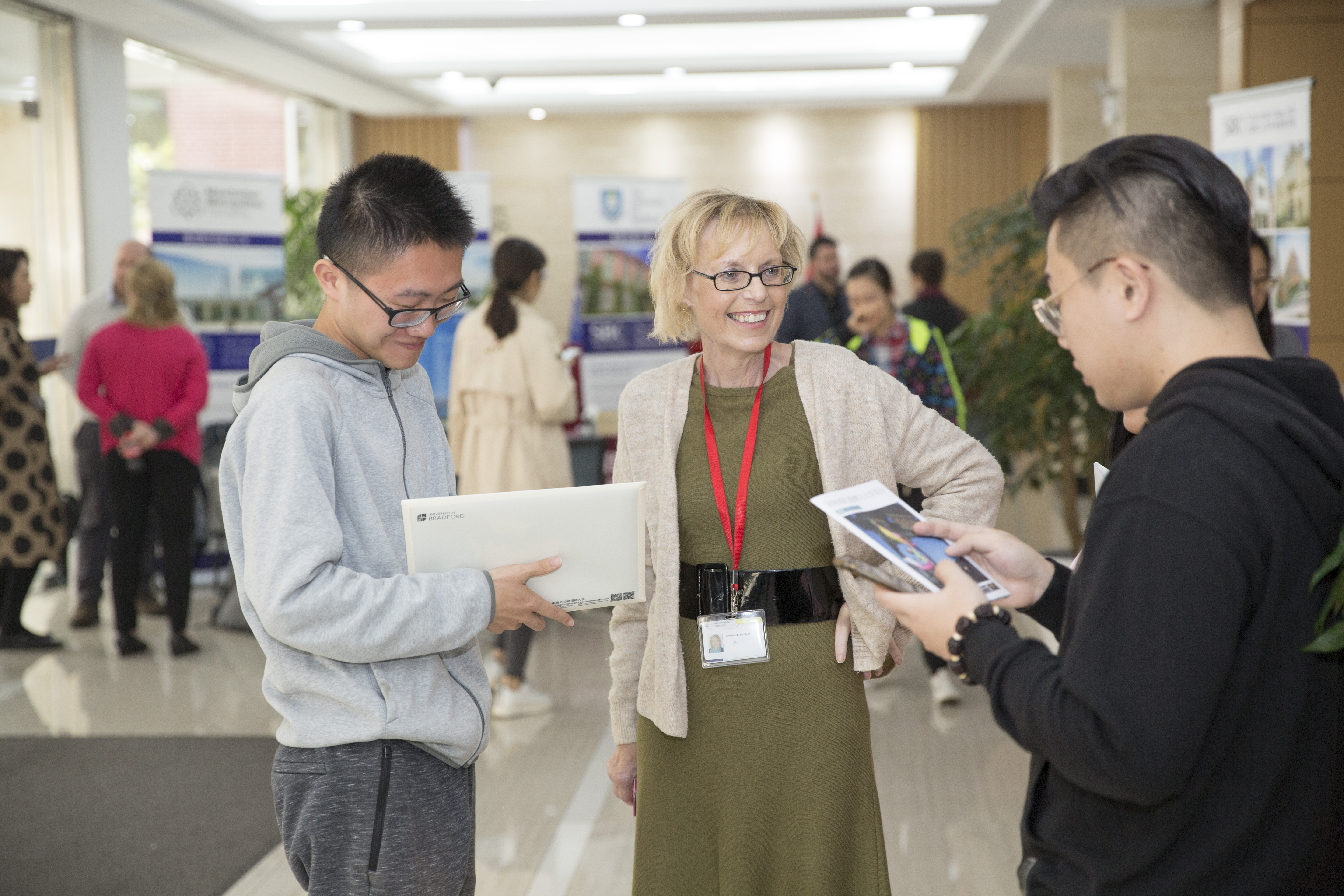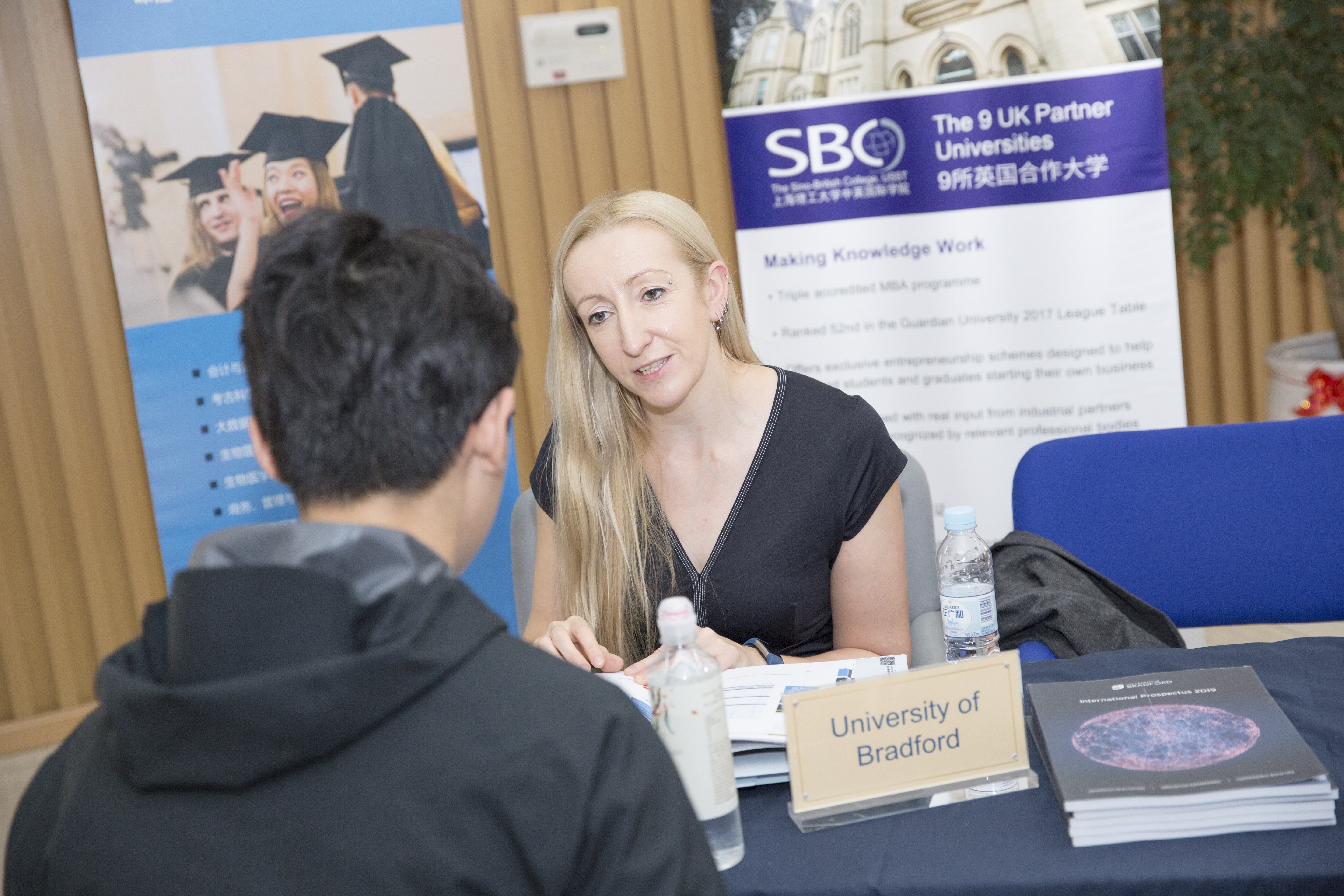 10月26日,SBC英国合作大学2018巡展在中英国际学院教学楼大厅成功举行。来自谢菲尔德大学Christopher Wilson先生, 布拉德福德大学Shelley Hurst女士、丁雷先生,利兹贝克特大学Victoria Barber女士,利物浦约翰摩尔大学詹芳芳女士,曼彻斯特城市大学Jonathan Pitt先生,谢菲尔德哈勒姆大学Cindy Wang-Cowham博士,哈德斯菲尔德大学夏方圆女士等多所英方合作大学代表到访我院,中英国际学院执行院长Laura C. Bishop教授代表学院对来访代表表示热烈欢迎。