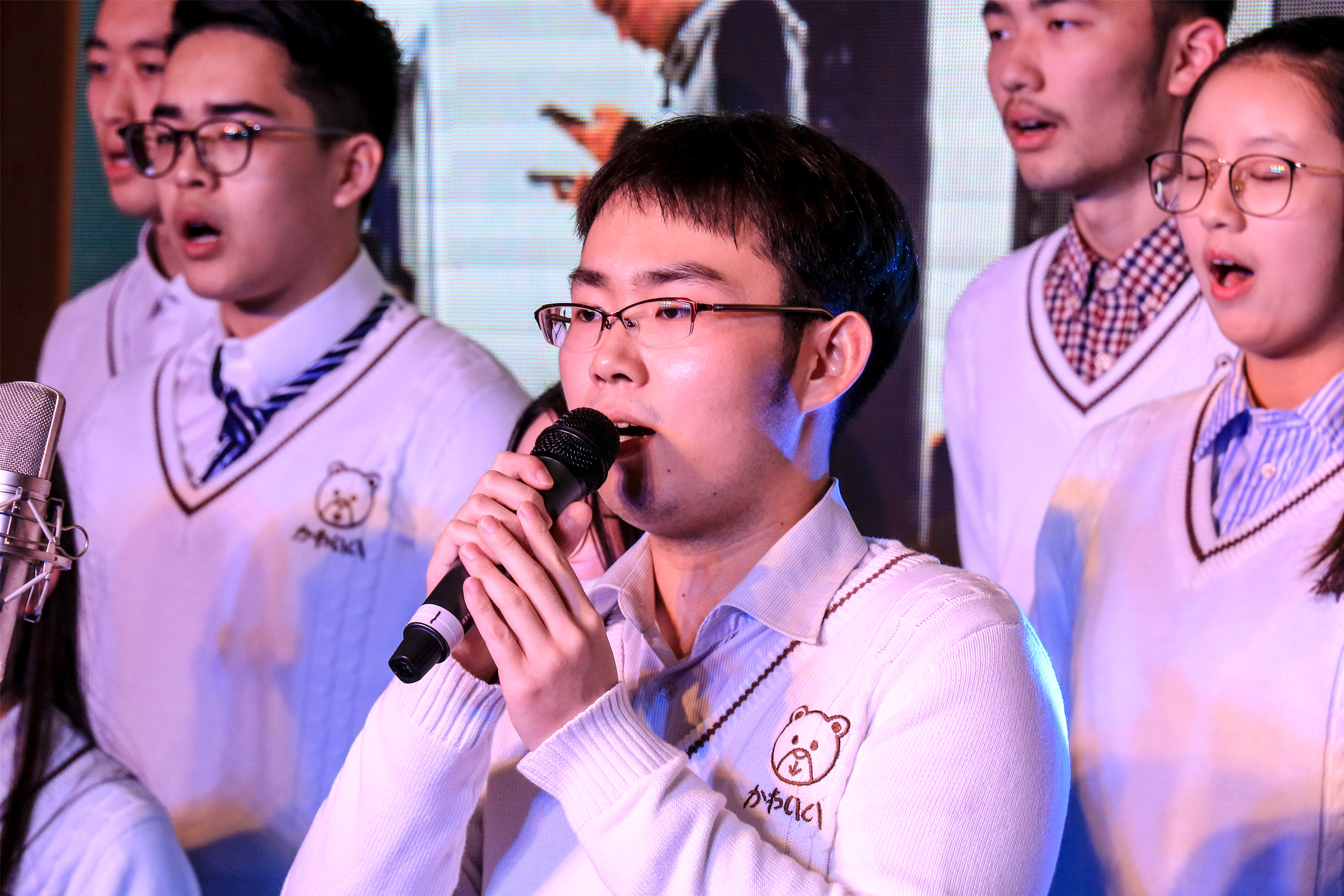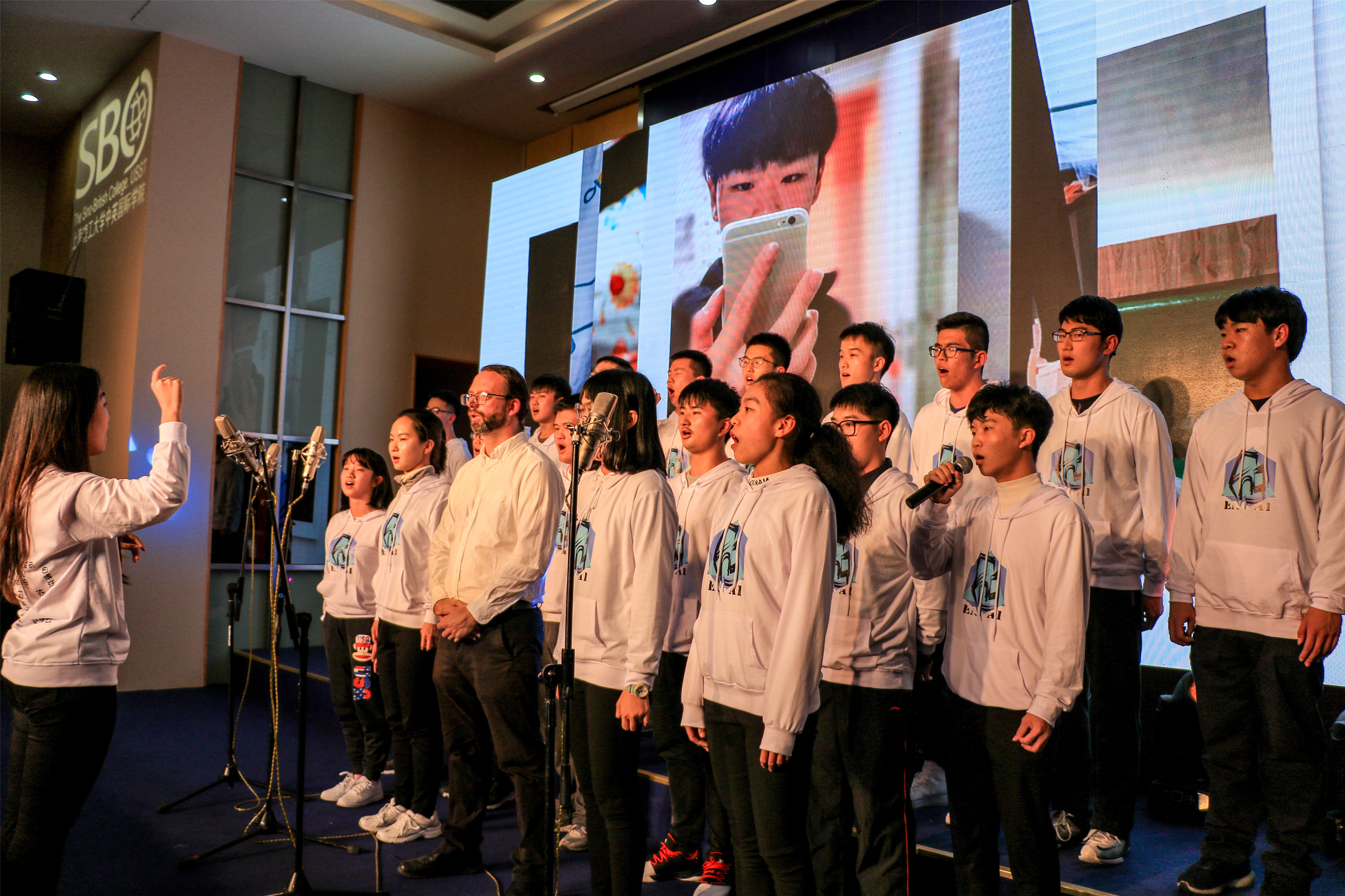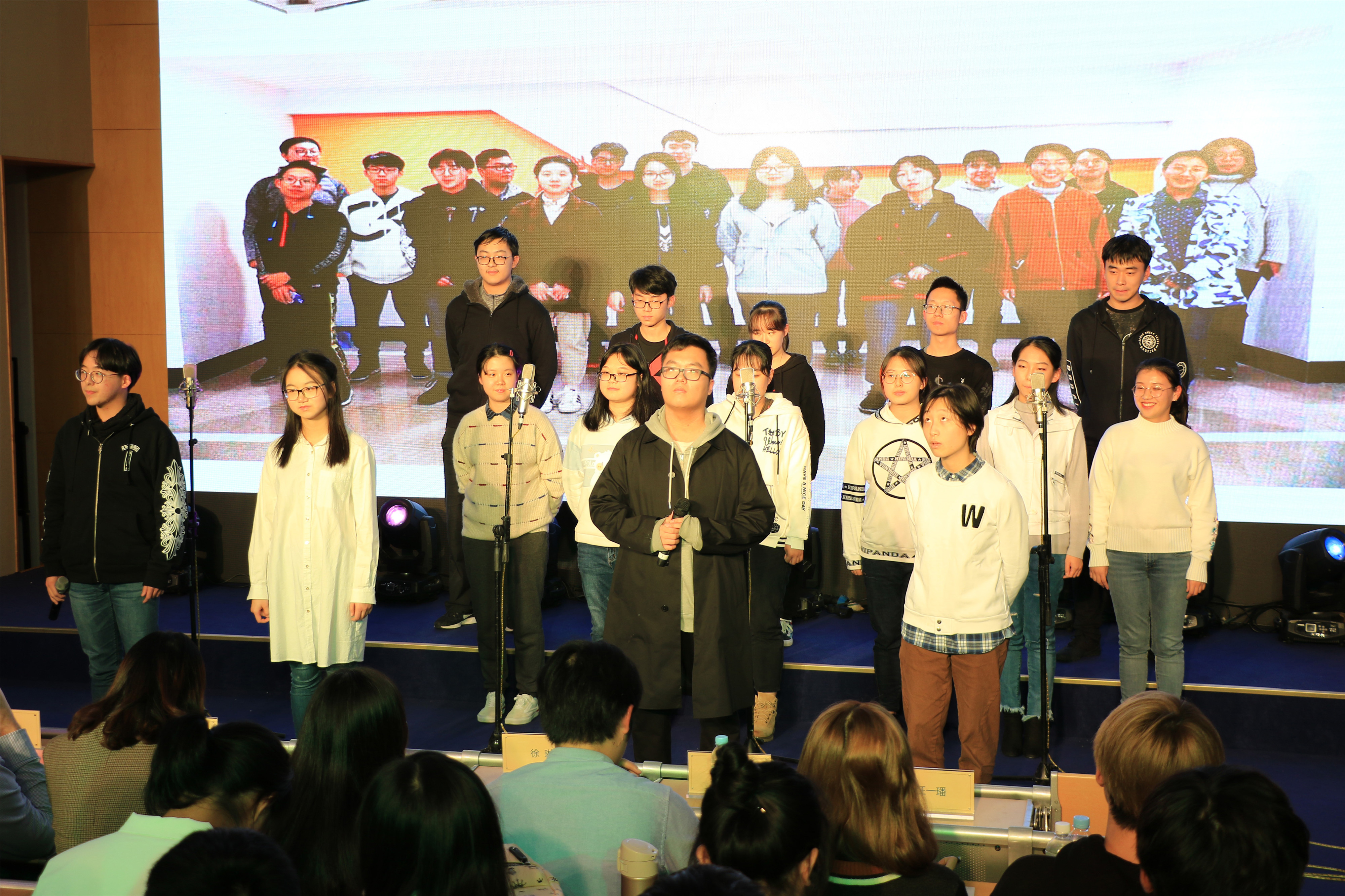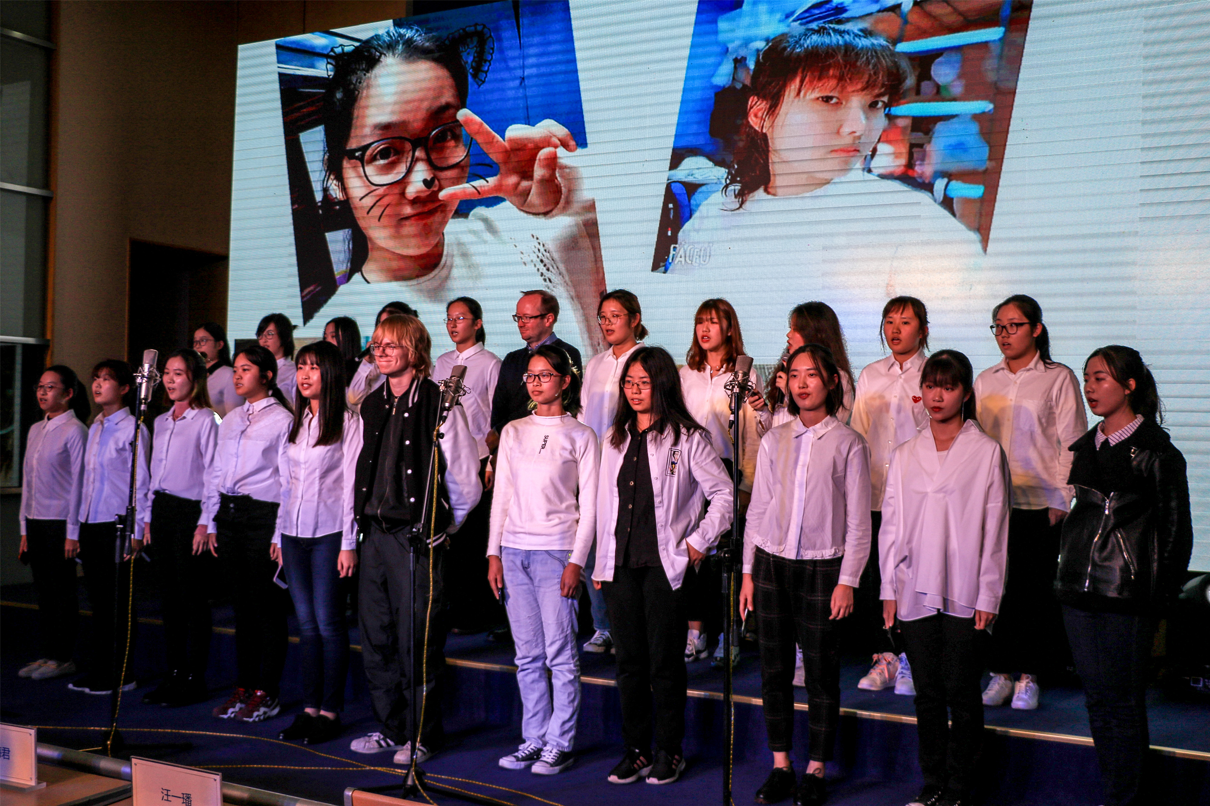 青春之声,承载了年少的努力和拼搏,梦想之巅,孕育着未来的希望与奇迹。此次参赛的23支合唱队伍中包含了班级的中外学生,他们在绚丽多彩的舞台上,青春昂扬地演绎着属于自己的“跨文化之歌”。外籍学术教师与中方辅导员老师多次被邀请,作为合唱战队中的一员,与同学们并肩作战,唱响激昂青春。中外师生同唱一首赞歌,这是一种文化的跨越,更是一种情感的升华。