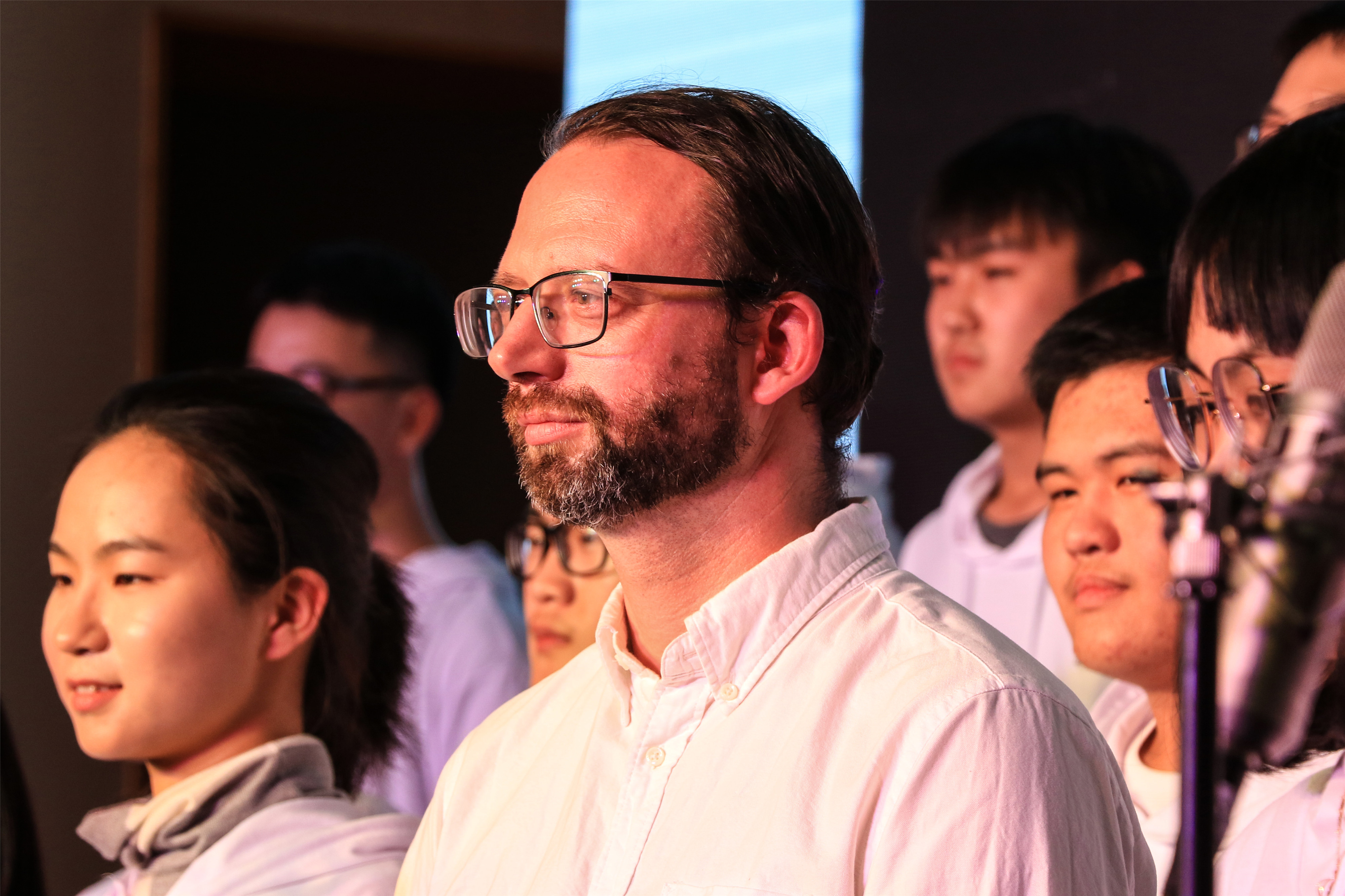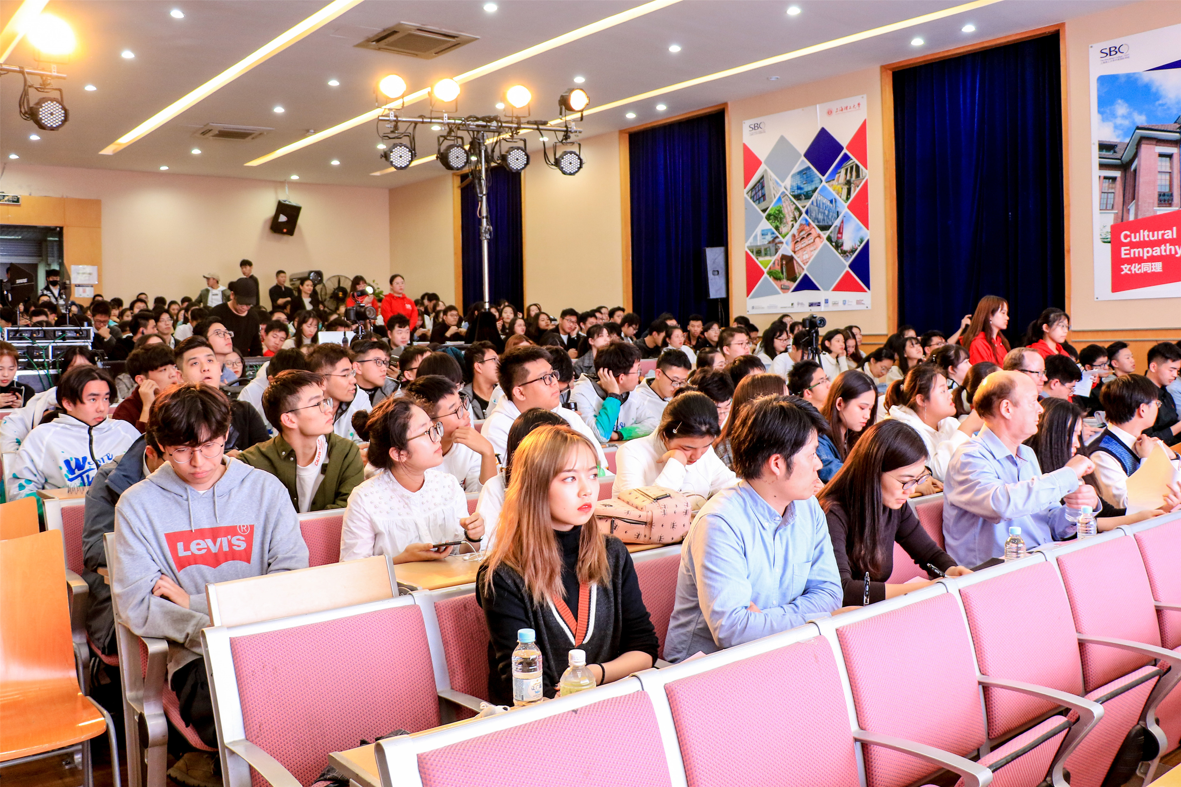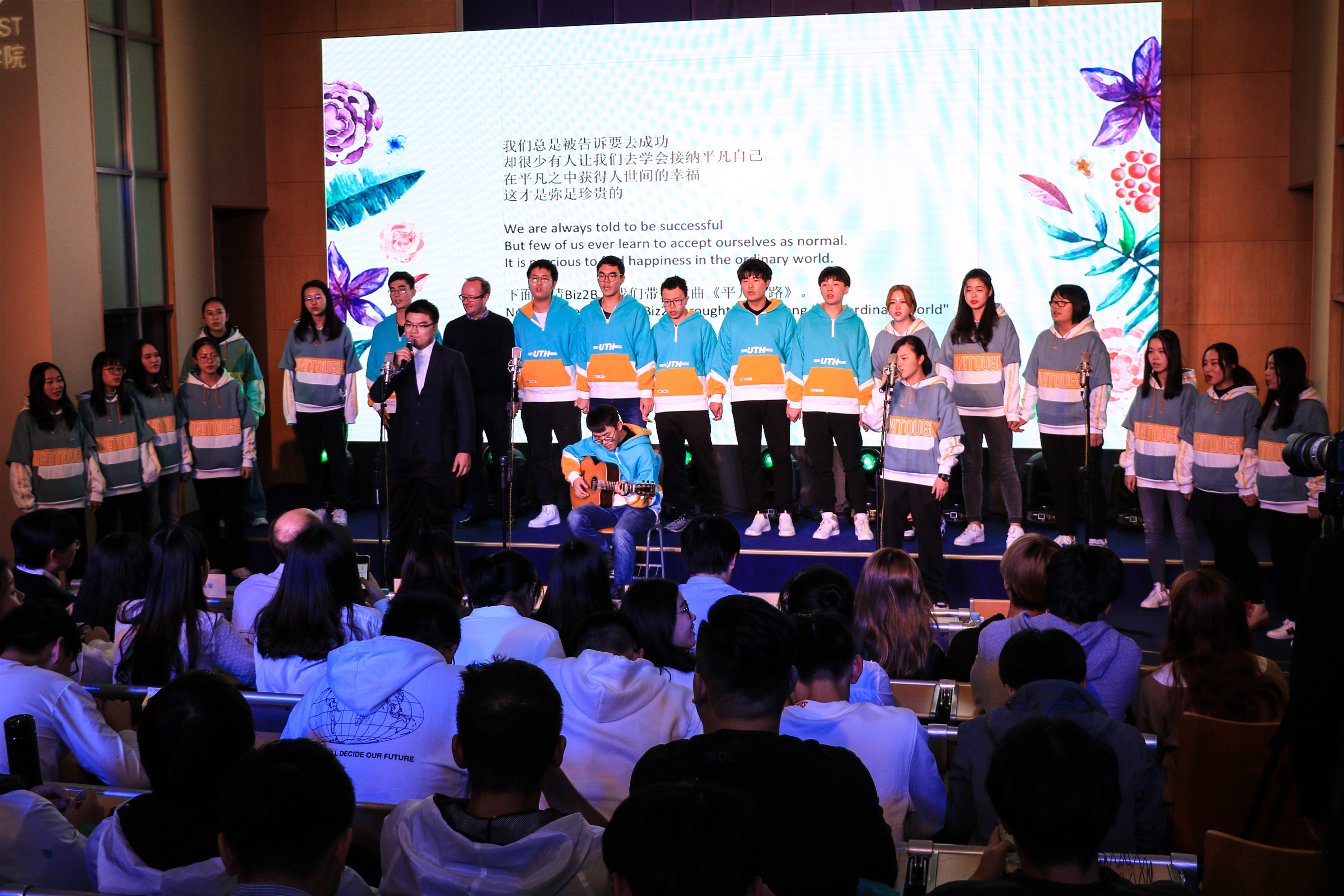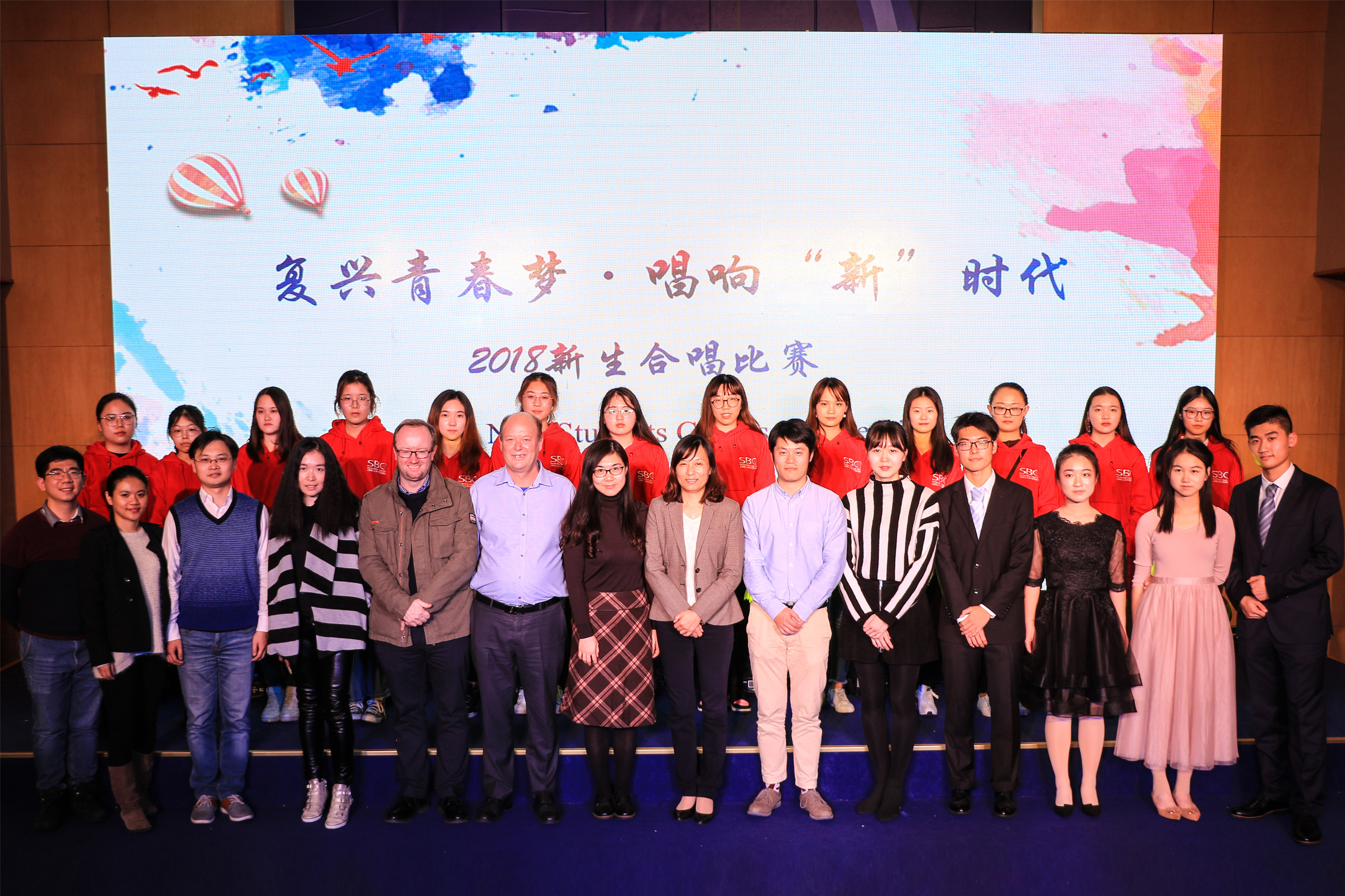 此次合唱比赛是中英国际学院2018级新生适应性教育内容之一,旨在为18级新生提供展示青春风采的平台,更好地增强班级凝聚力和团队归属感,从而进一步推动校园文化建设。出席本次比赛并担任评委的是上海理工大学中英国际学院党总支书记、复兴路校区管理委员会副主任李妍,上海理工大学中英国际学院行政副院长徐琳,中英国际学院语言与教育学院主任 Gordan Callan,天平街道团工委副书记黄海君,中英国际学院资源与规划总监葛介乐,中英国际学院财务部经理张晨俊以及中英国际学院复兴音韵艺术团1718届团长汪一璠。他们与现场400余名中外师生欢聚一堂,在青春激昂的音乐中度过了一个美好的夜晚。