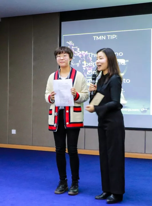 在互动环节中,毛文老师为表现活跃的同学发放了希尔顿酒店外滩总部的HR Intern的实习机会以及与老师共同出席奢侈品行业展览的珍贵门票。